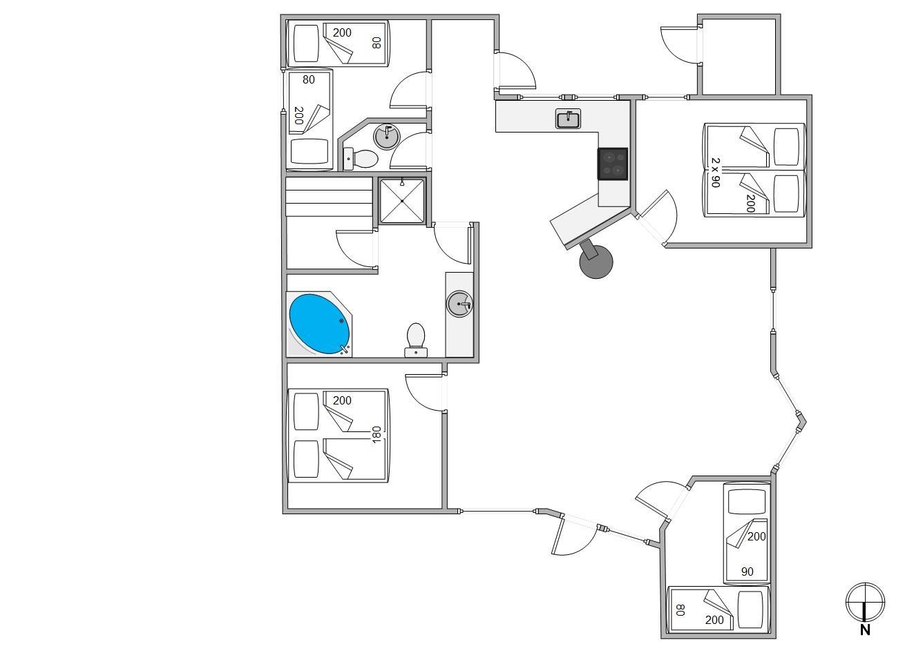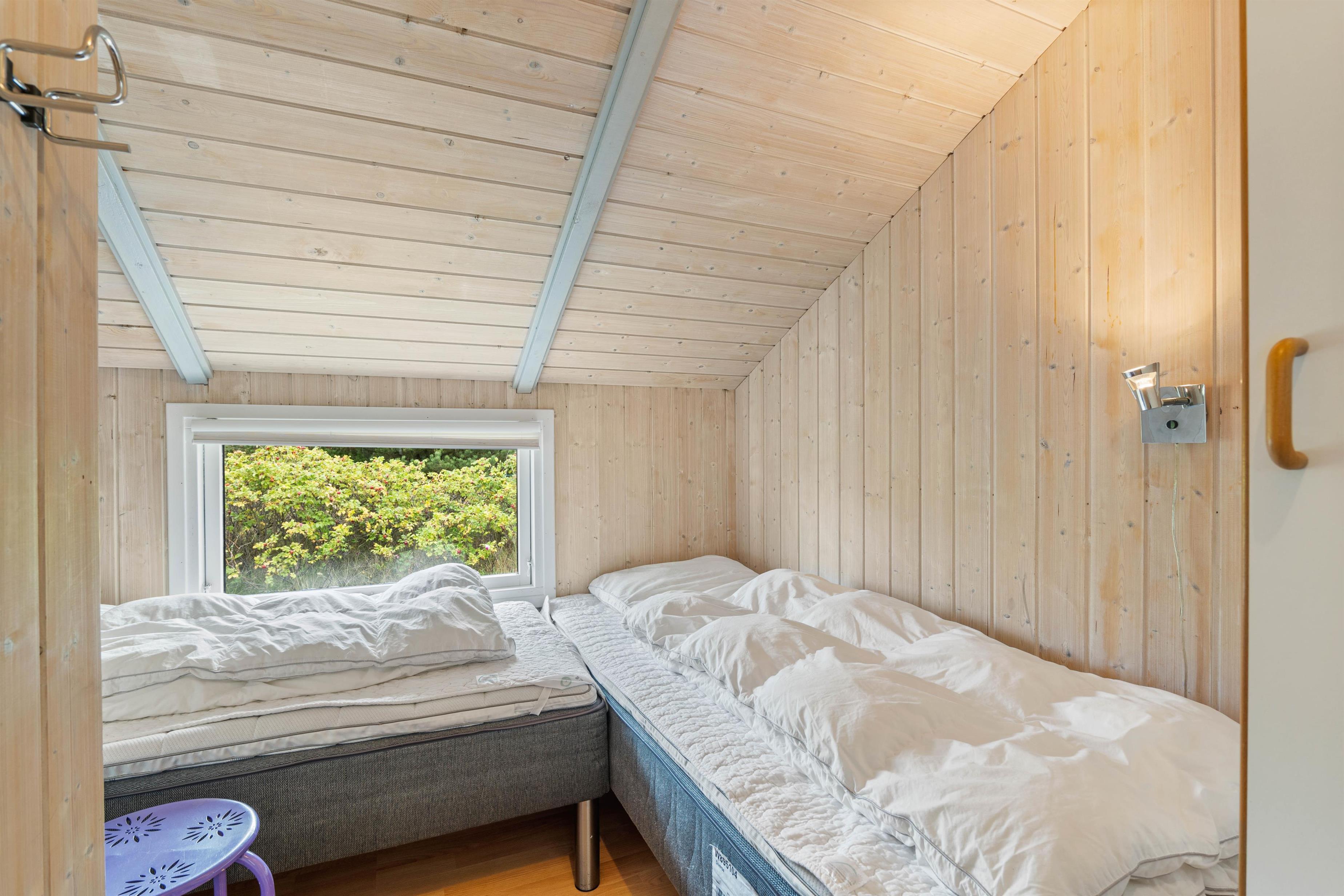 Der er 4 soveværelser i sommerhuset, som alle er med trægulve. 2 af værelserne har hver en dobbeltseng, og de sidste 2 værelser har hver 2 enkeltsenge.