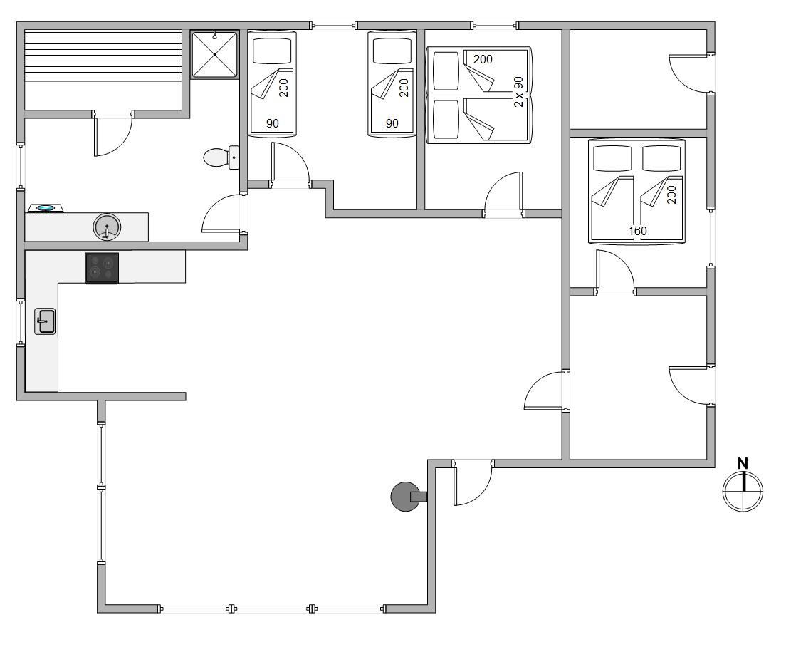 De 6 sovepladser fordeler sig på 3 gode soveværelser, hvoraf det en er indrettet med dobbeltseng. På de andre værelser finder I komfortable enkeltsenge.