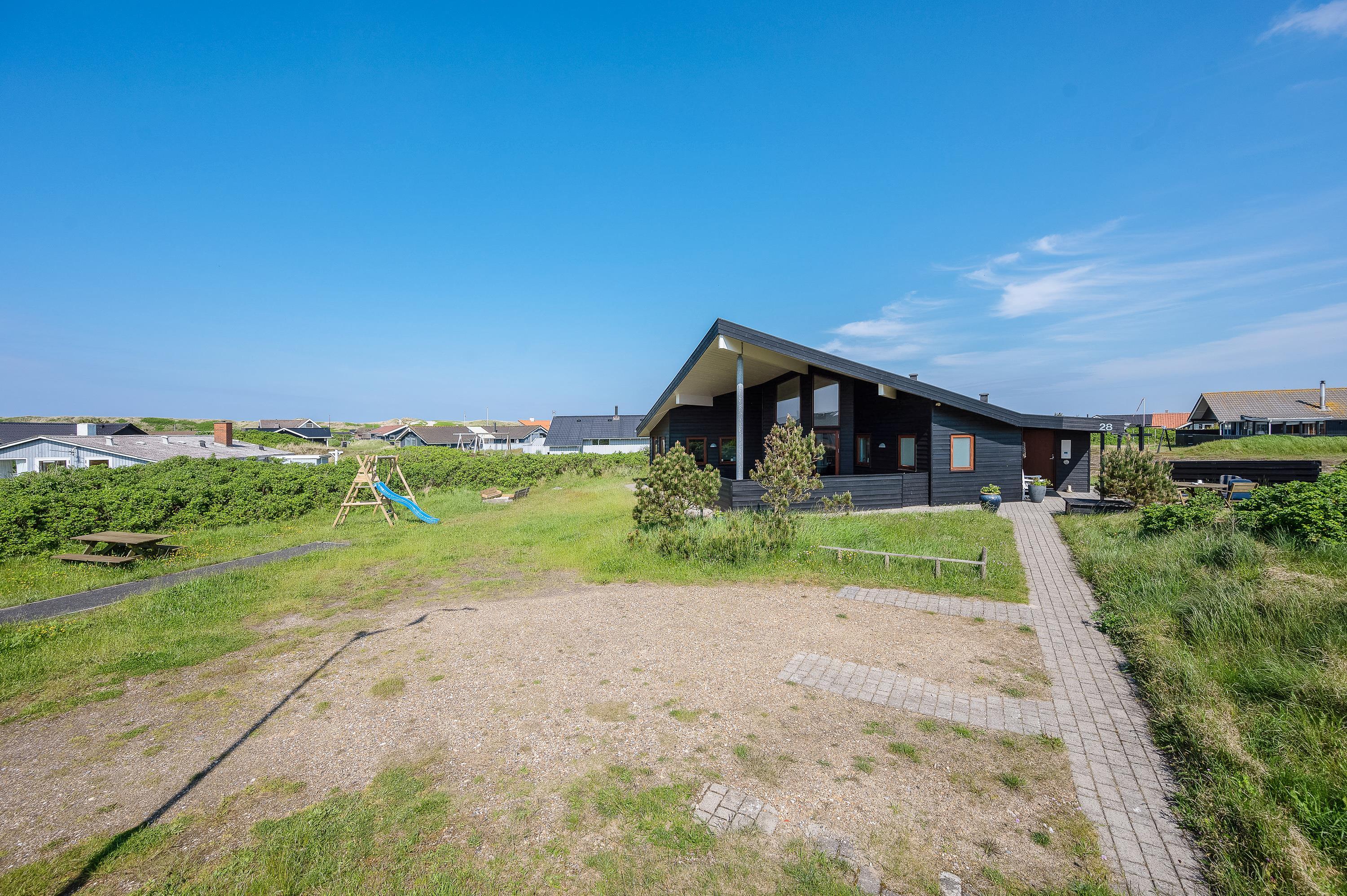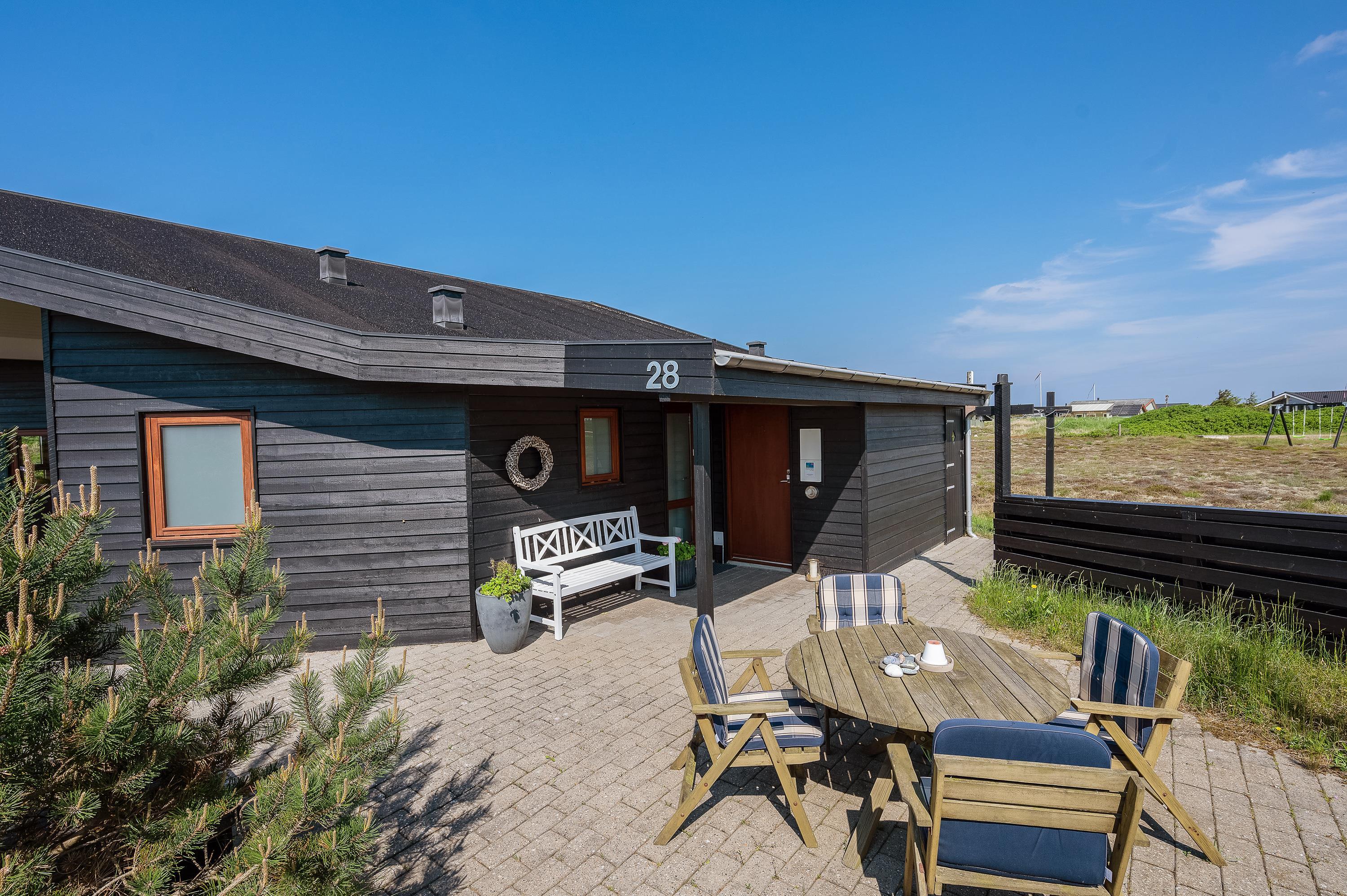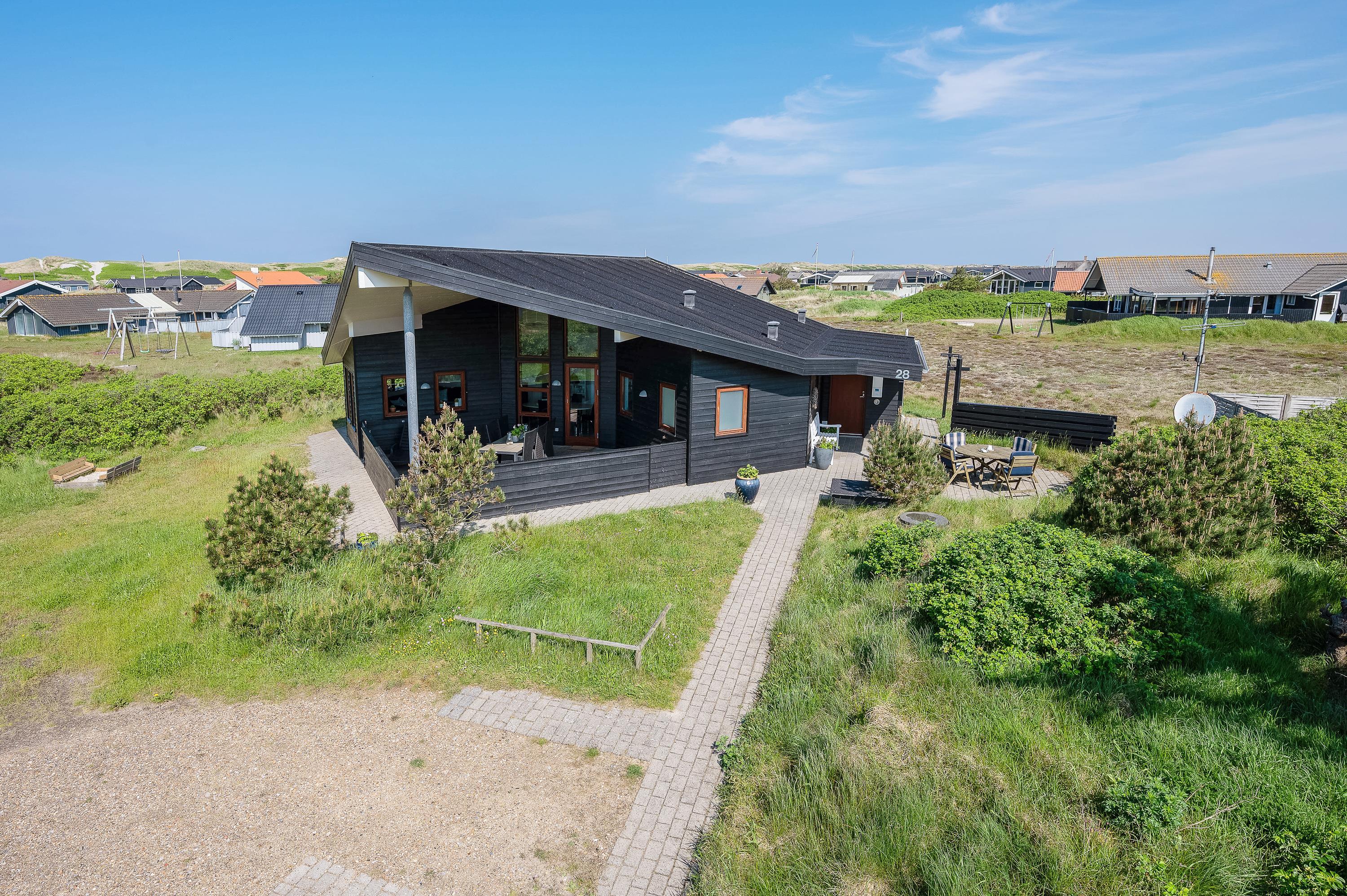 På P Chr Dahls Vej 28 ligger dette fine og utraditionelle sommerhus med flot indretning og alt tænkelig komfort. Sommerhuset har en stor overdækket og indhegnet terrasse med grill og havemøbler, der indbyder til udeliv og hygge. Feriehuset har desuden en allergivenlig indretning, og her er plads til 6 feriegæster og 2 kæledyr.