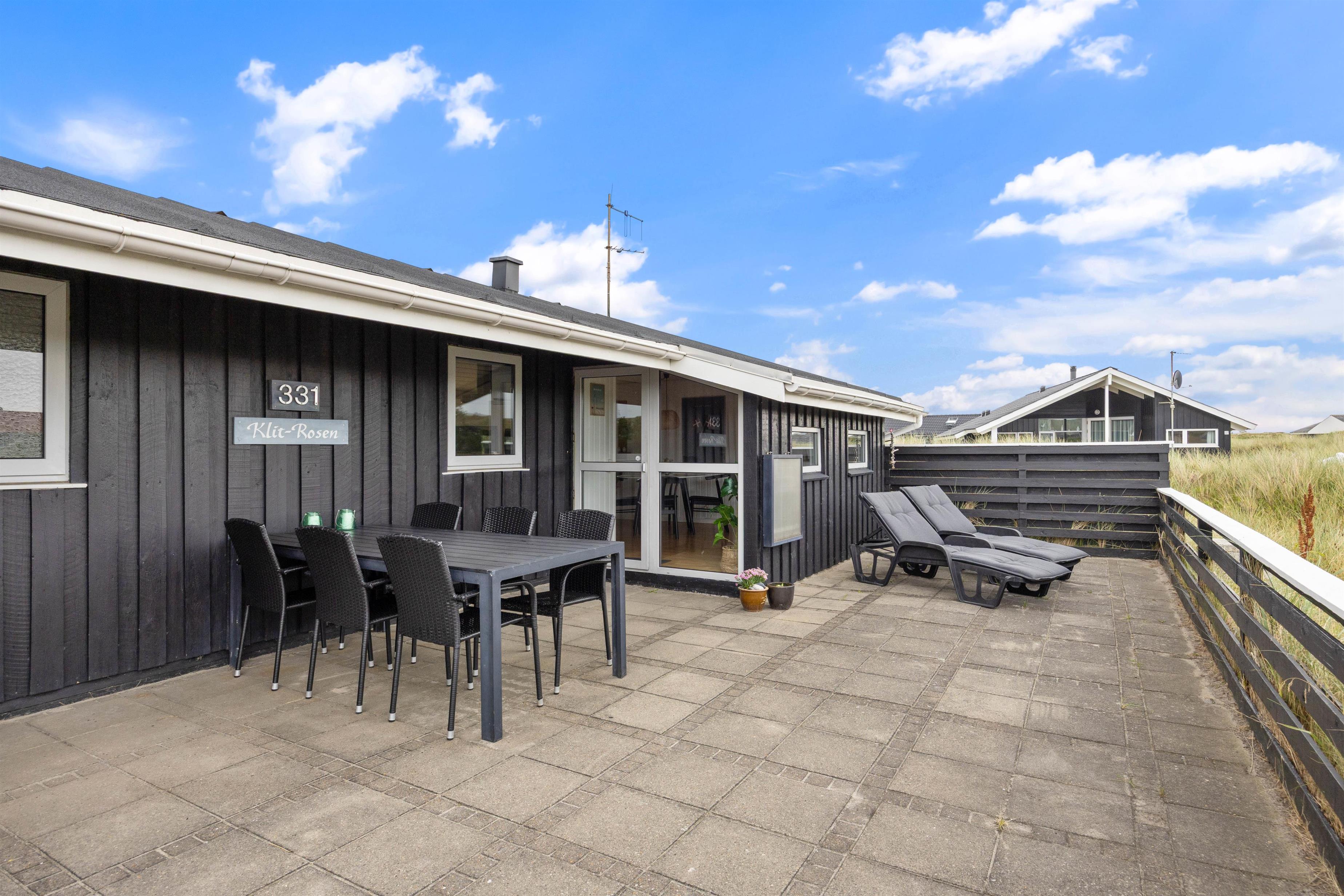 Sommerhuset har en stor, afskærmet terrasse, som også er lukket. Her kan børn lege trygt hele dagen, og hundene kan få frisk luft uden at tage på selvstændige udflugter. Her venter havemøblerne på jer, så I kan nyde solen og hinandens selskab.