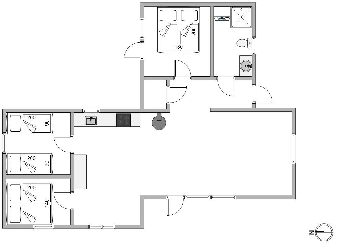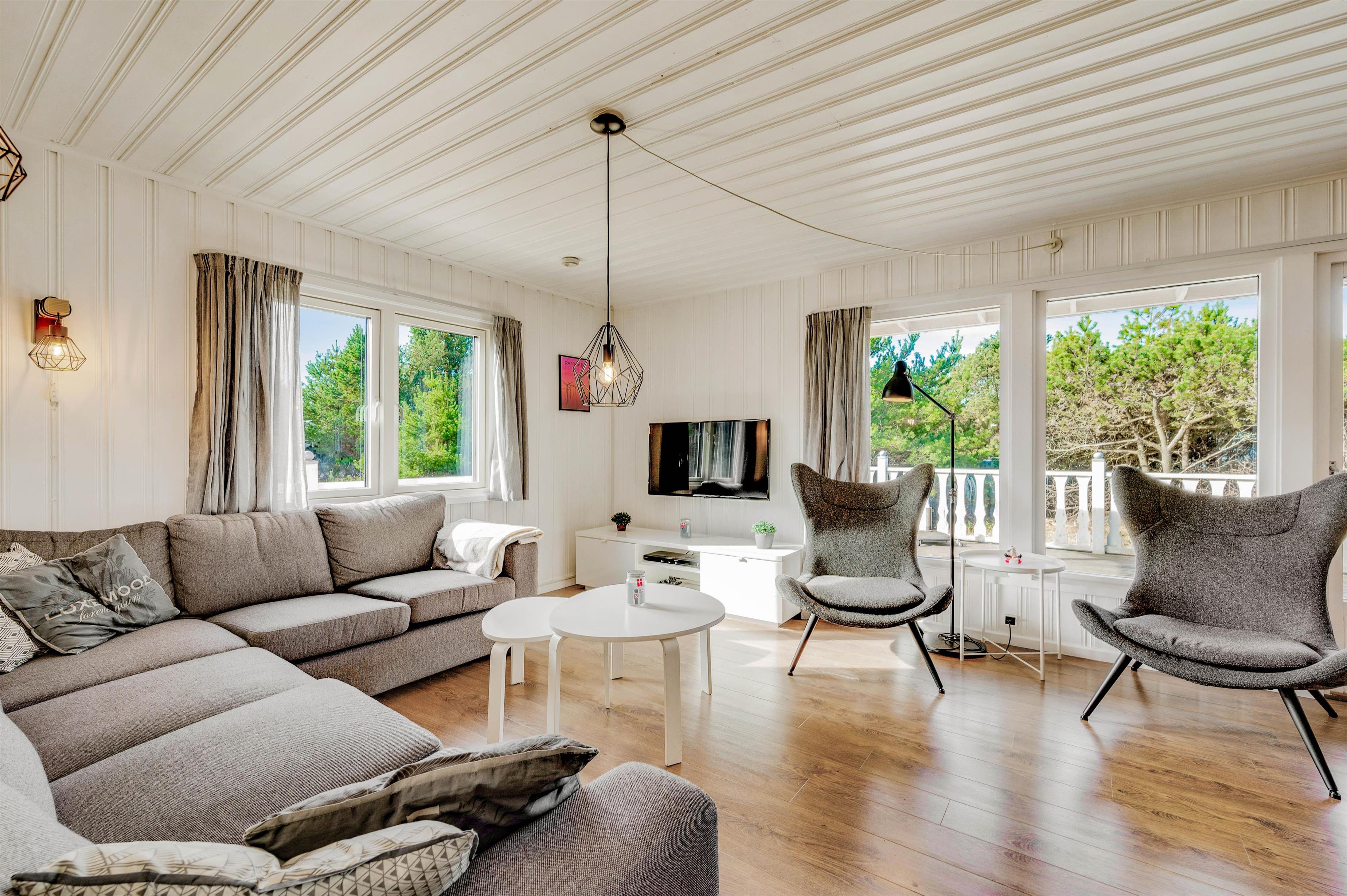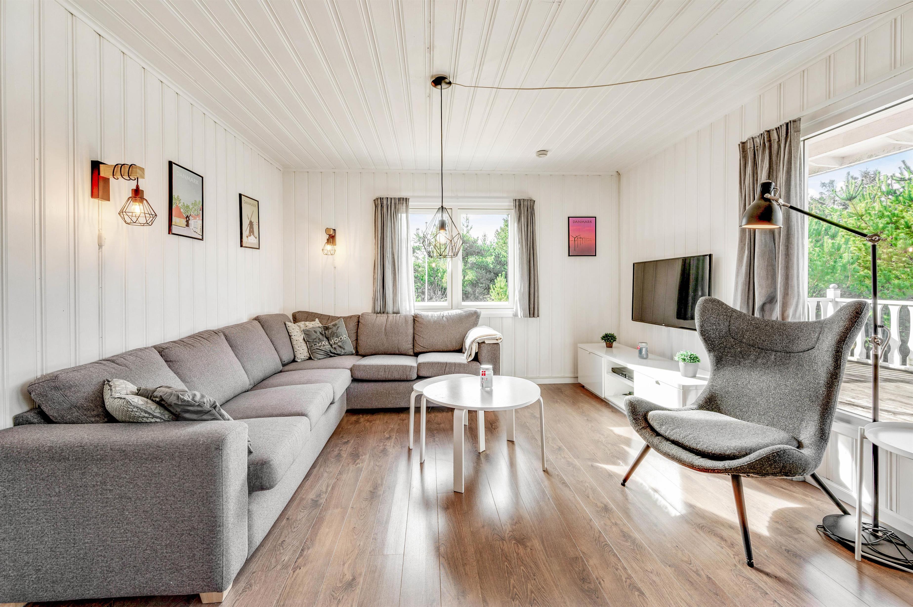 Der er plads til op til 6 feriegæster i dette sommerhus, som emmer af hygge og feriestemning. Her er et fint køkken, der er åbent forbundet med den lyse og rummelige stue. Her kan du tilbringe lidt kvalitetstid med familien omkring fælles madlavning, sjove spil eller en god film – og på de køligere dage kan du tænde op i brændeovnen, der giver en ekstra hyggelig atmosfære. Desuden er der en varmepumpe i sommerhuset.