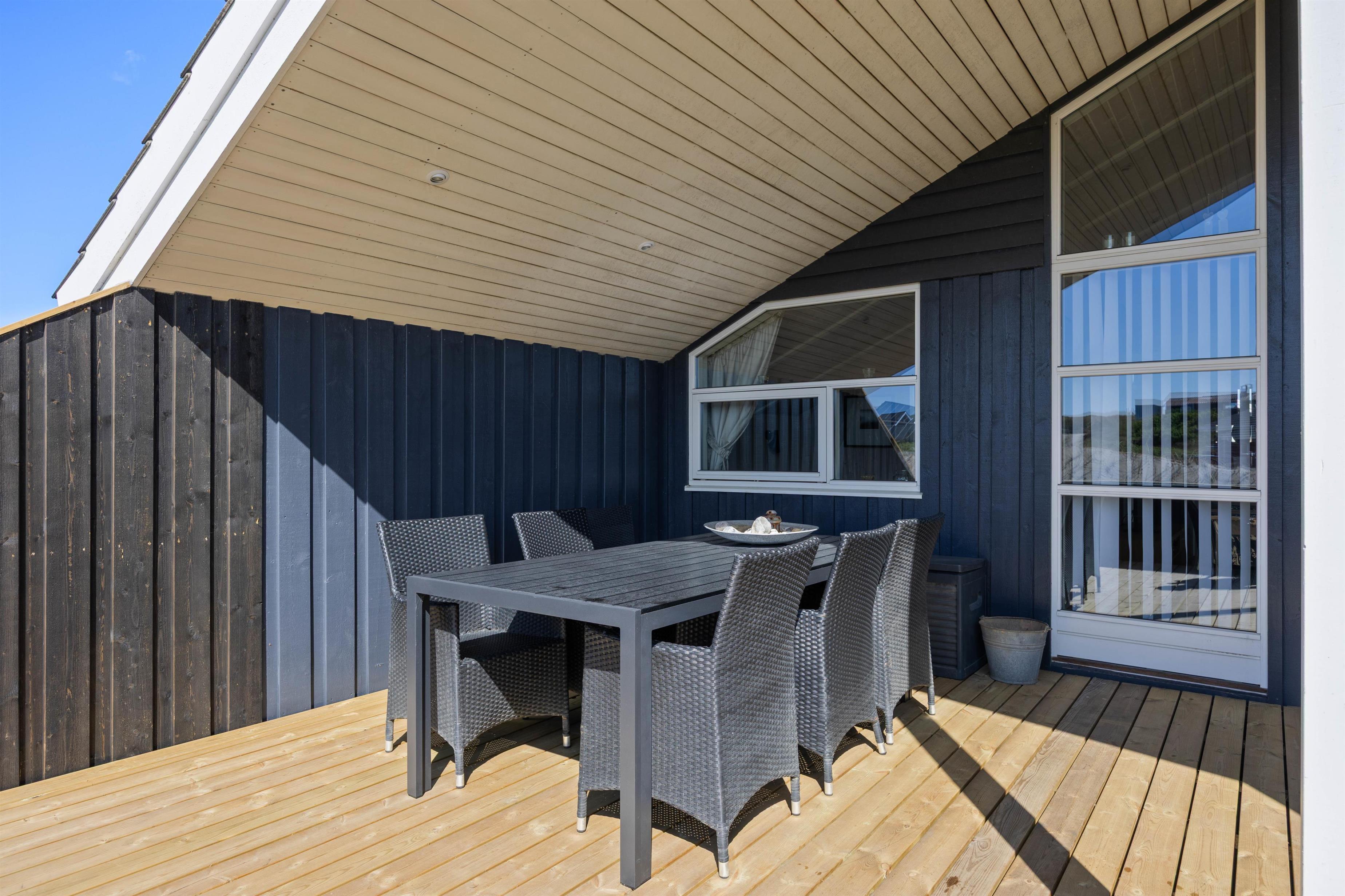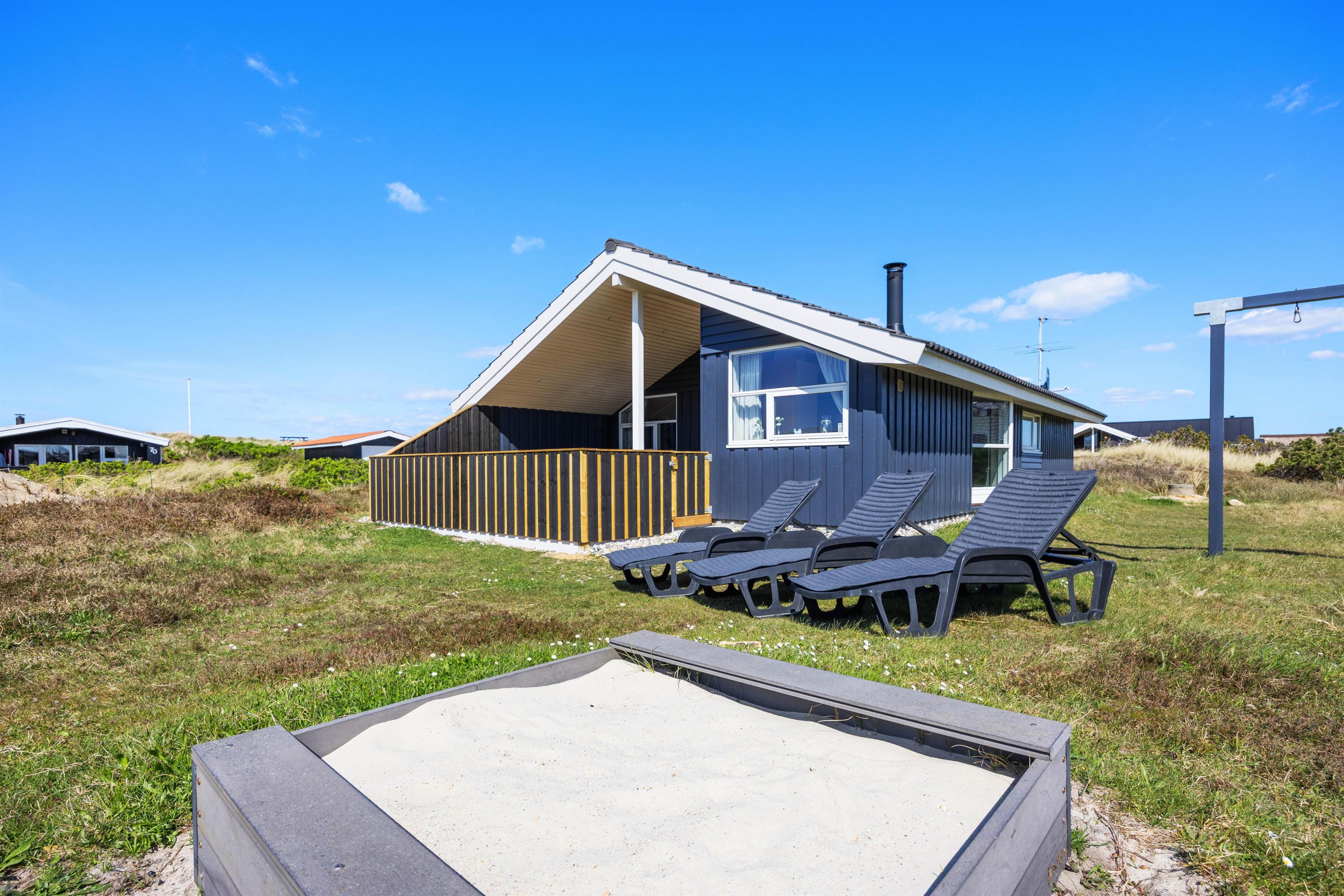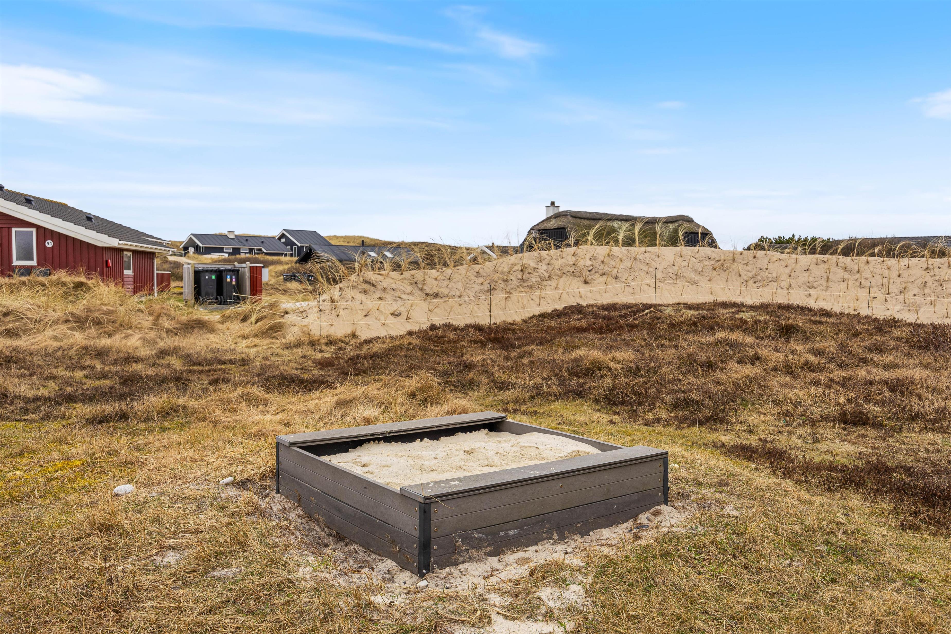 Når I har fået nok af at dase på den lukkede terrasse, kan I flytte videre til stranden, som ligger få minutters gang fra sommerhuset. Her kan børnene og hundene slå sig løs i den uendeligt store sandkasse, mens I går en tur langs vandkanten og nyder solskinnet og de smukke omgivelser.