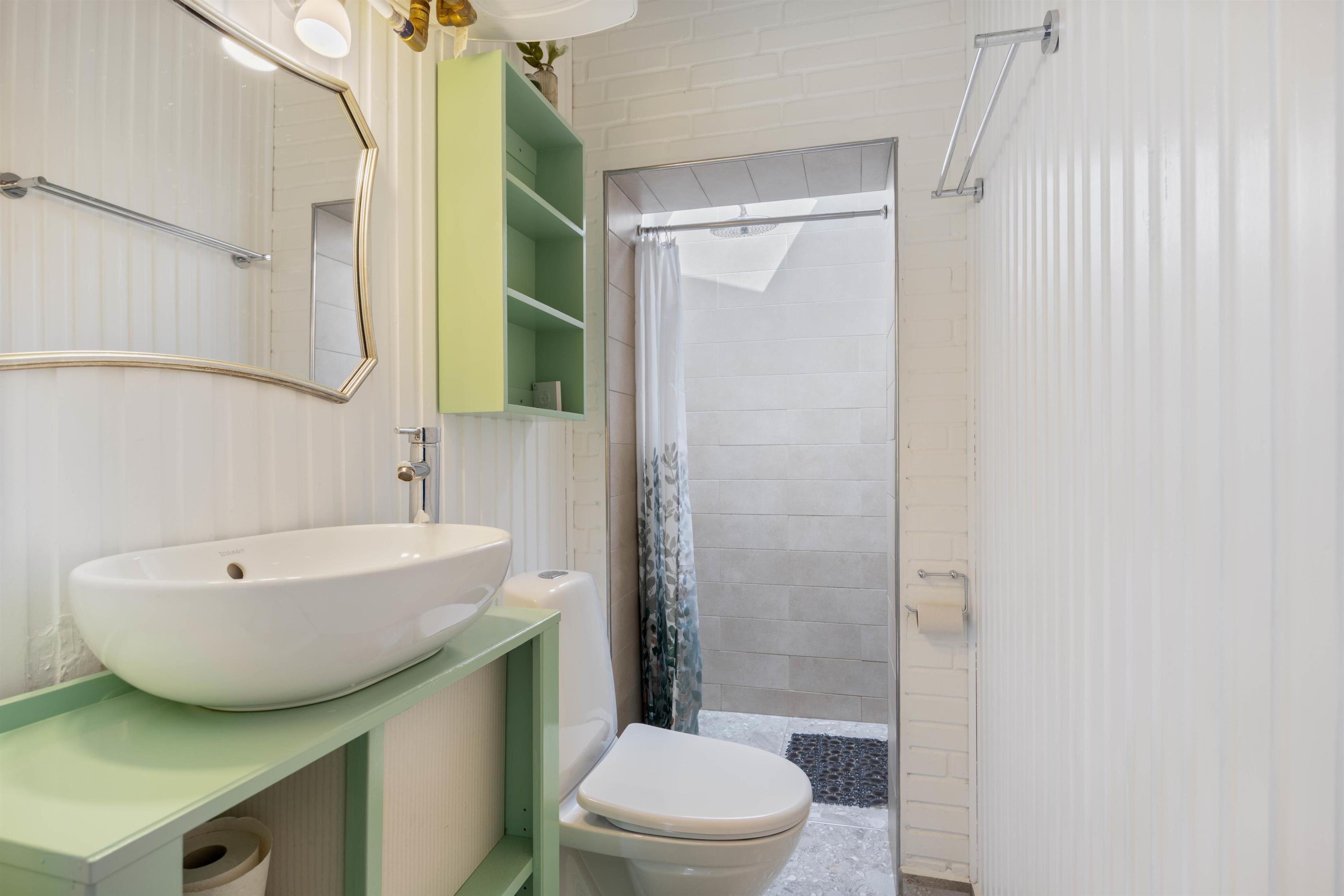 Der er badeværelse med bruseniche samt vaskemaskine og tørretumbler i sommerhuset. Til de små børn er der tremmeseng og høj stol til rådighed. I de tre hyggelige soveværelser med komfortable dobbeltsenge kan du slippe hverdagens stress, og starte nogle afslappede feriedage.