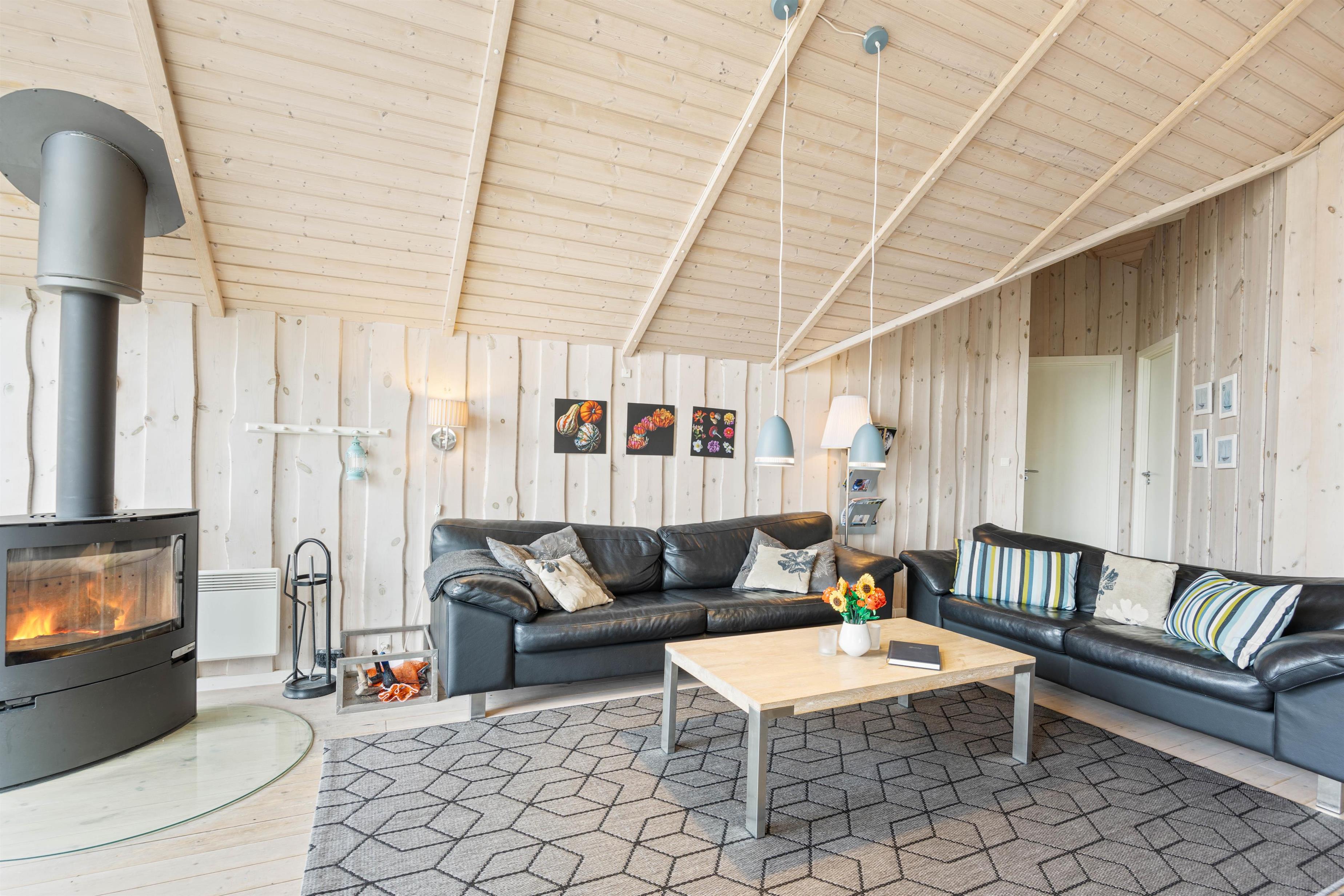 Med øje for klassisk sommerhus-hygge er sommerhusets indretning traditionel og med en indbydende atmosfære. Det åbne opholdsrum er det perfekte sted at samles efter en dag fyldt med udendørs aktiviteter. Slap af foran den knitrende brændeovn, der spreder en behagelig varme eller nyd en forfriskende saunaoplevelse efter et dyp i spabadet, der giver krop og sind ny energi. Spabad og sauna er placeret på sommerhusets badeværelse, men her er også et gæstetoilet i sommerhuset. Både badeværelse og gæstetoilet er udstyret med gulvvarme.