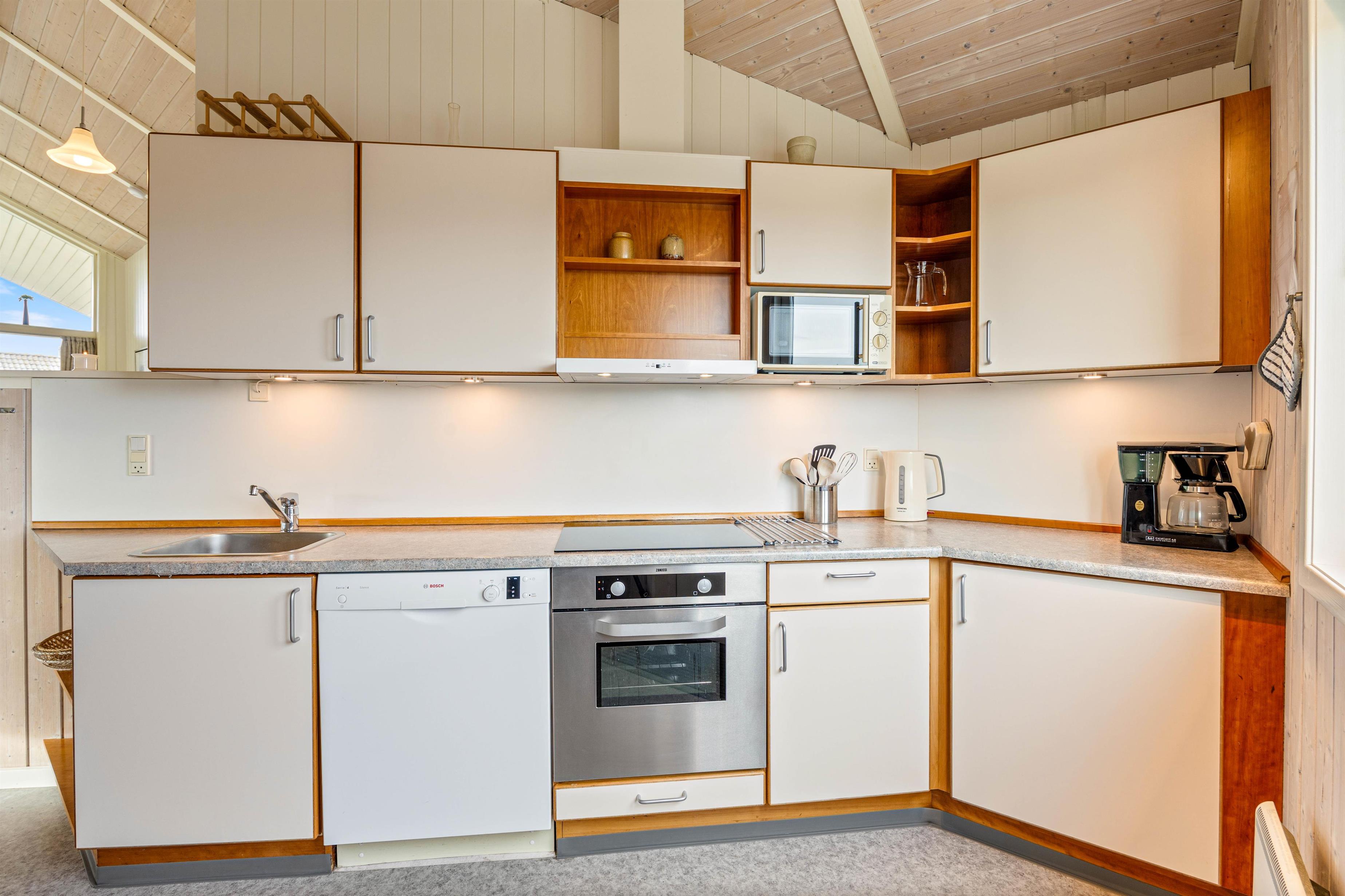 Køkkenet er veludstyret og har køleskab med frostboks, opvaskemaskine og mikroovn. Der er også vaskemaskine i sommerhuset. Der er altså helt styr på hverdagens hjælpere, som gør jeres skønne ferie endnu mere ukomplicerede.