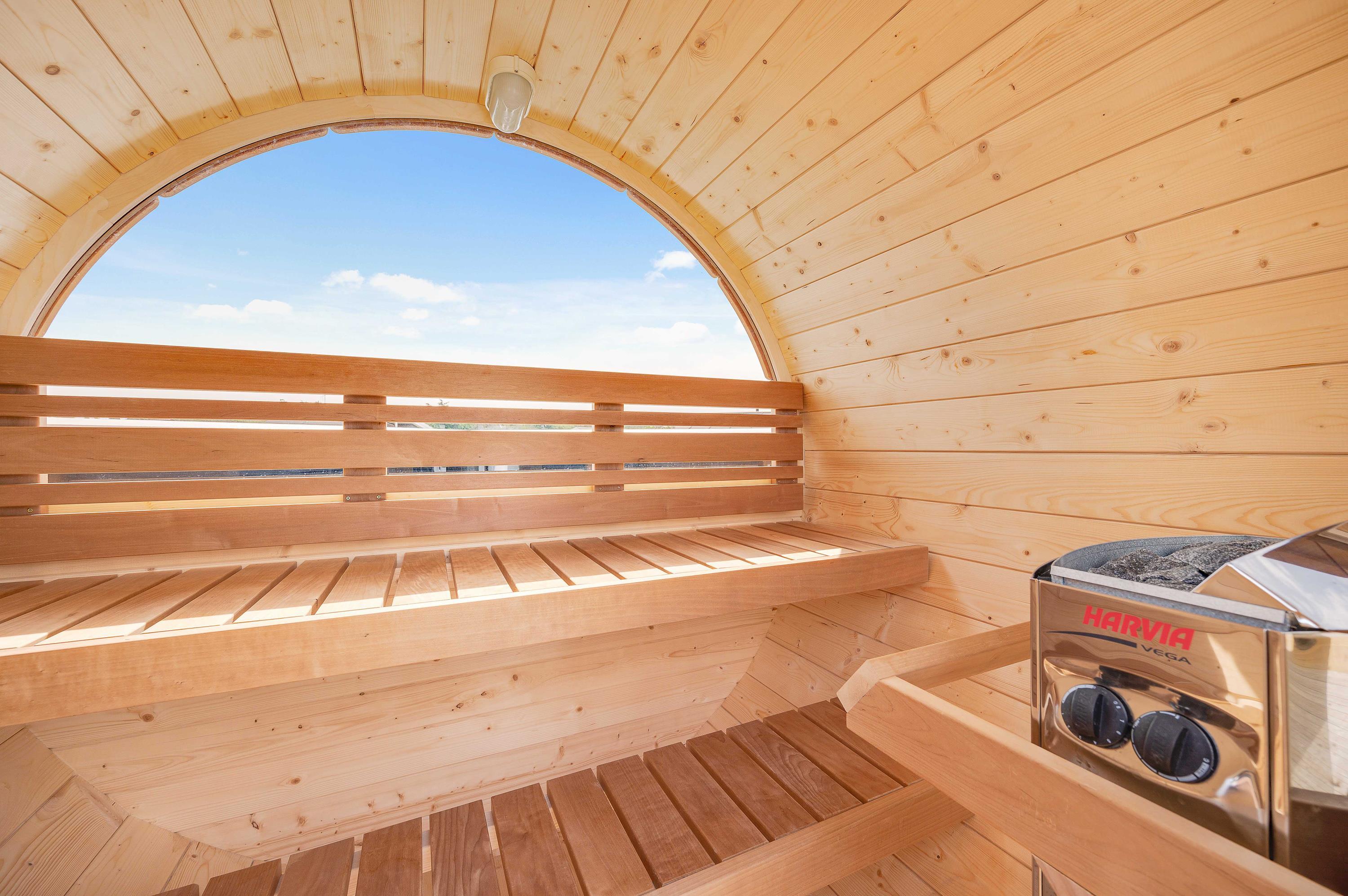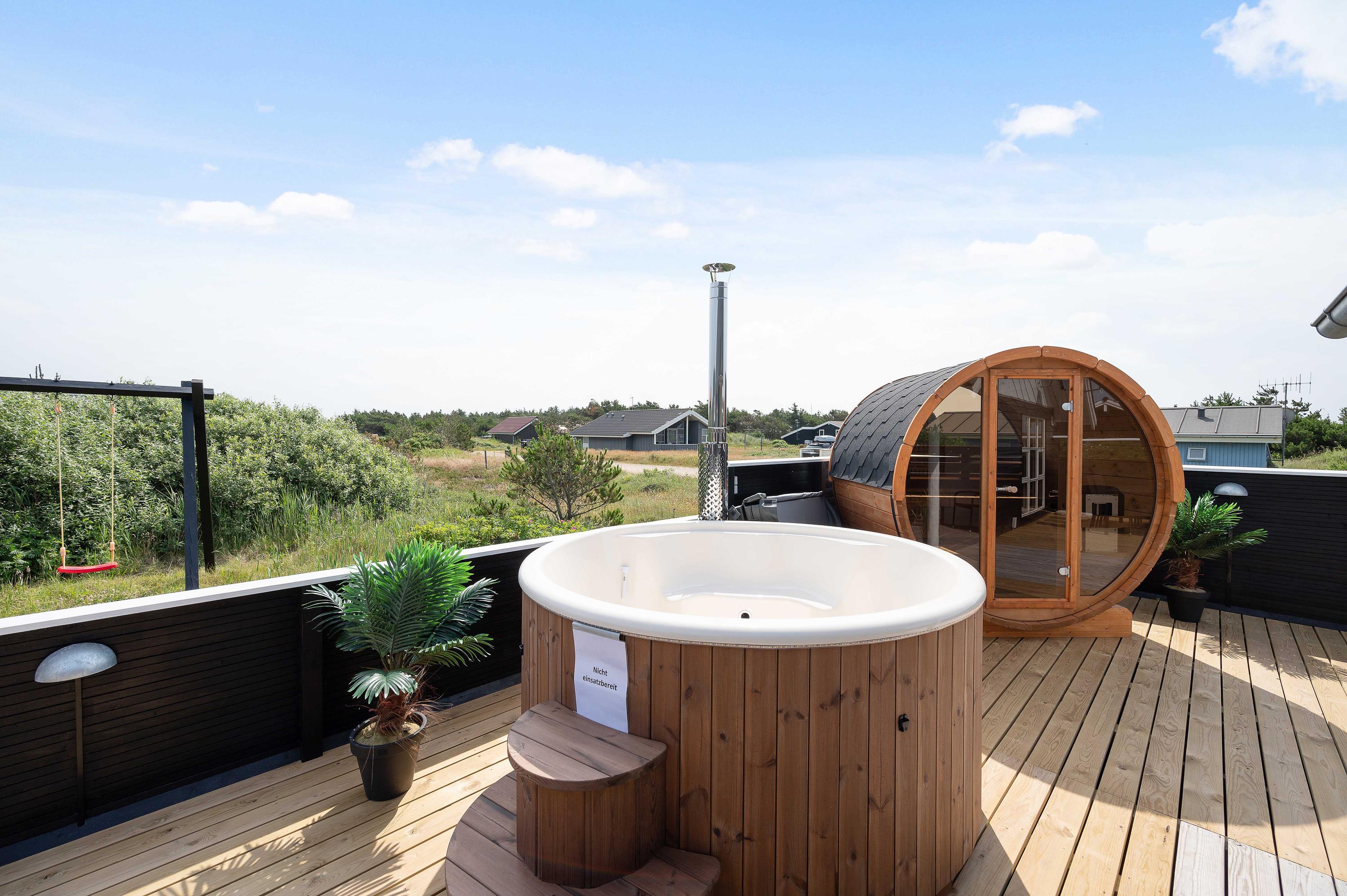 Har I været en tur på stranden og en tur i vandet, kan I få varmen i vildmarksbadet, og efterfølgende en tur i udesaunaen. Det kan også anbefales at nyde solnedgangen og stjernehimlen fra vildmarksbadet med et køligt glas vin.