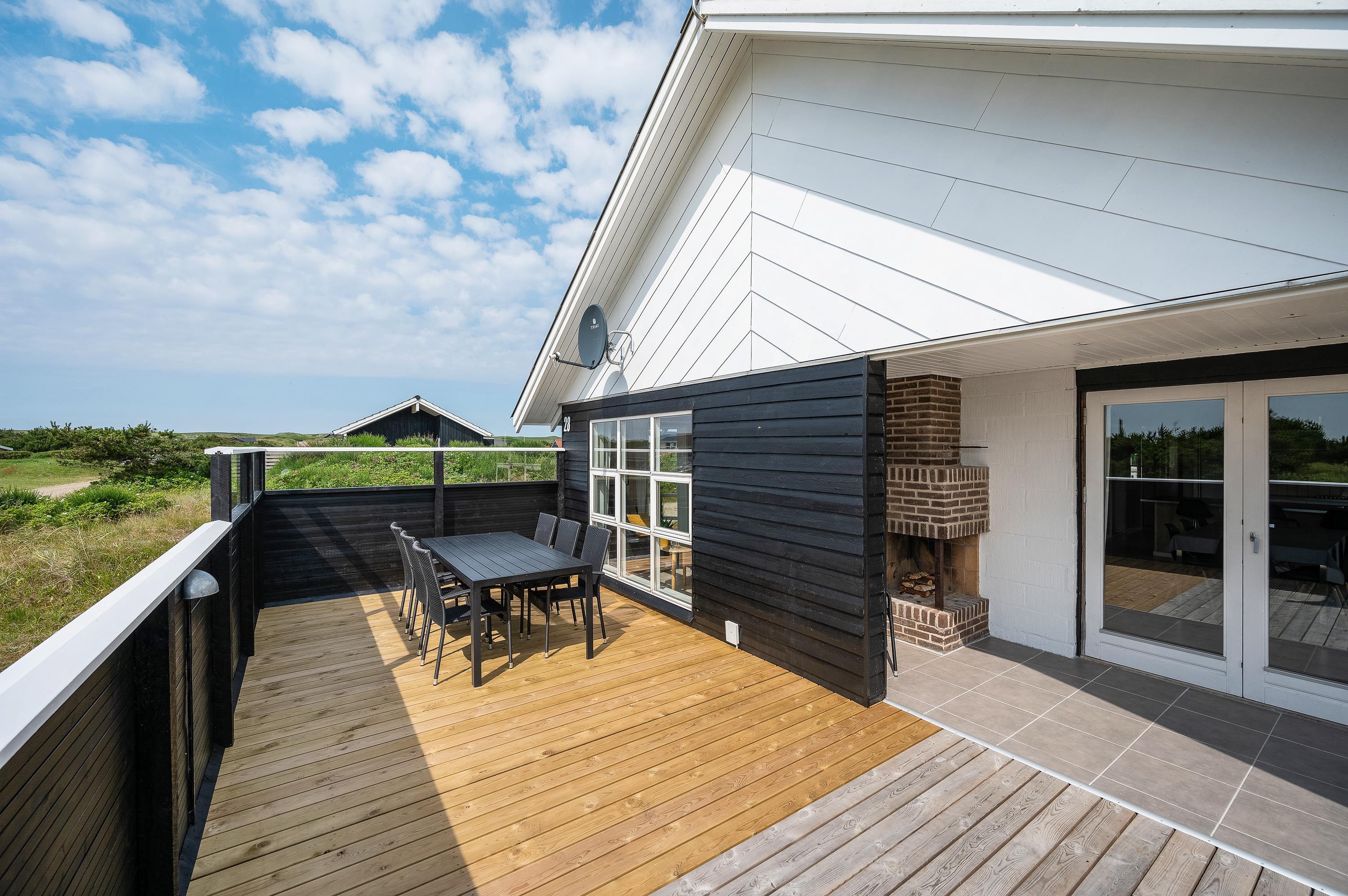 Med direkte adgang fra den hyggelige stue kommer I ud på træterrassen, der indbyder til afslapning og velvære. Her er der plads til, at hele familien kan samles til et lækkert grillmåltid, mens hunden kan gå frit rundt – terrassen er nemlig lukket.