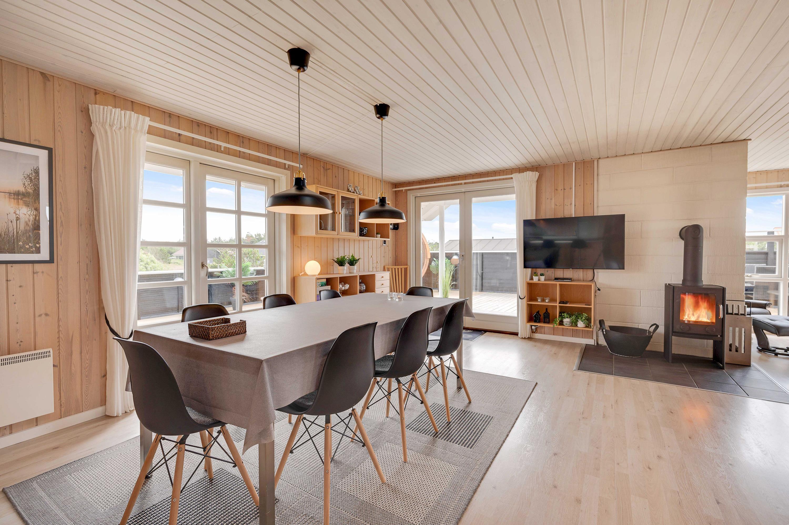 På en koldere sommeraften kan I tænde op i brændeovnen, som både spreder varme og en hyggelig feriestemning. I kan også bruge den energibesparende varmepumpe til at holde temperaturen behagelig.
