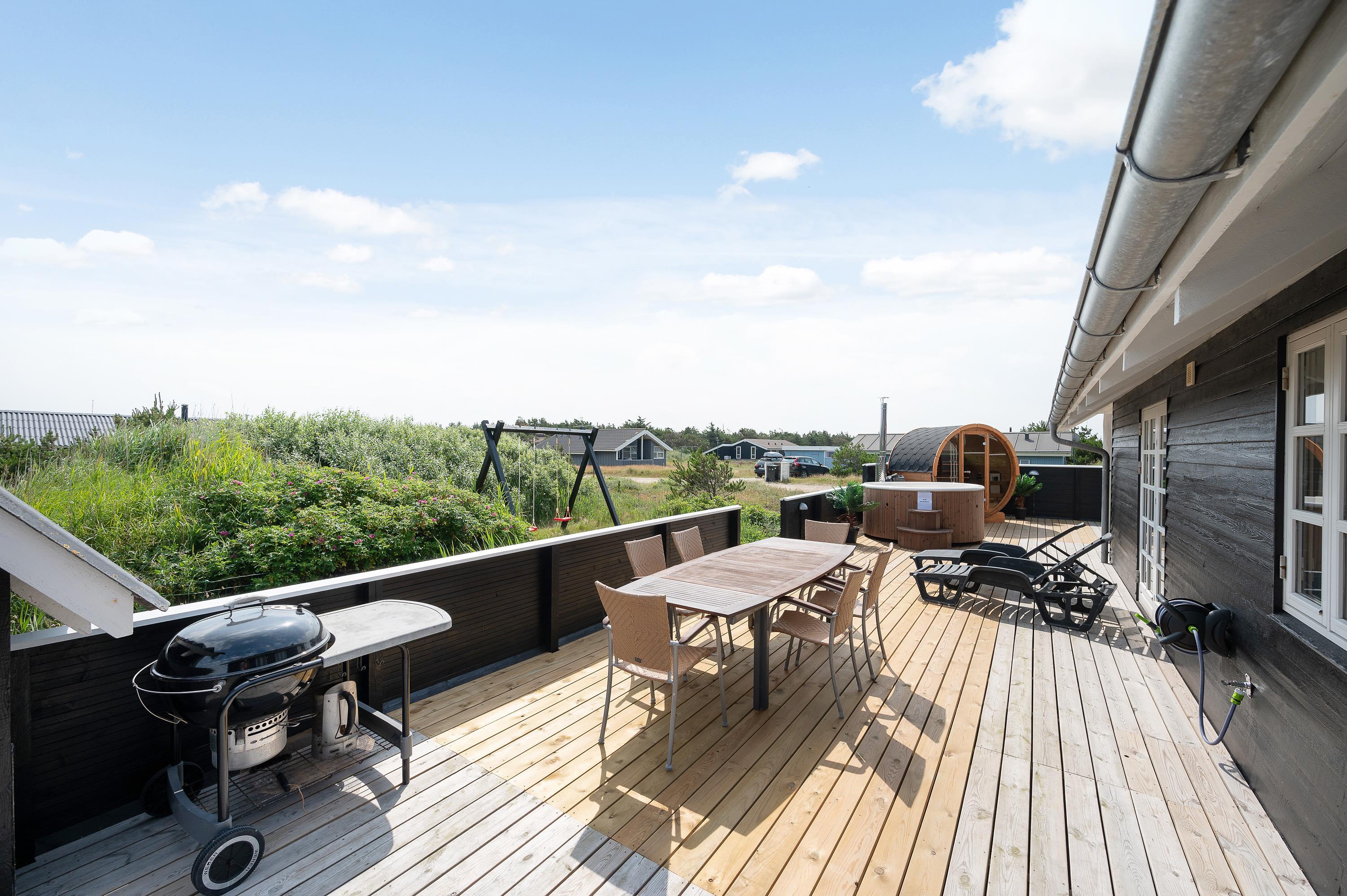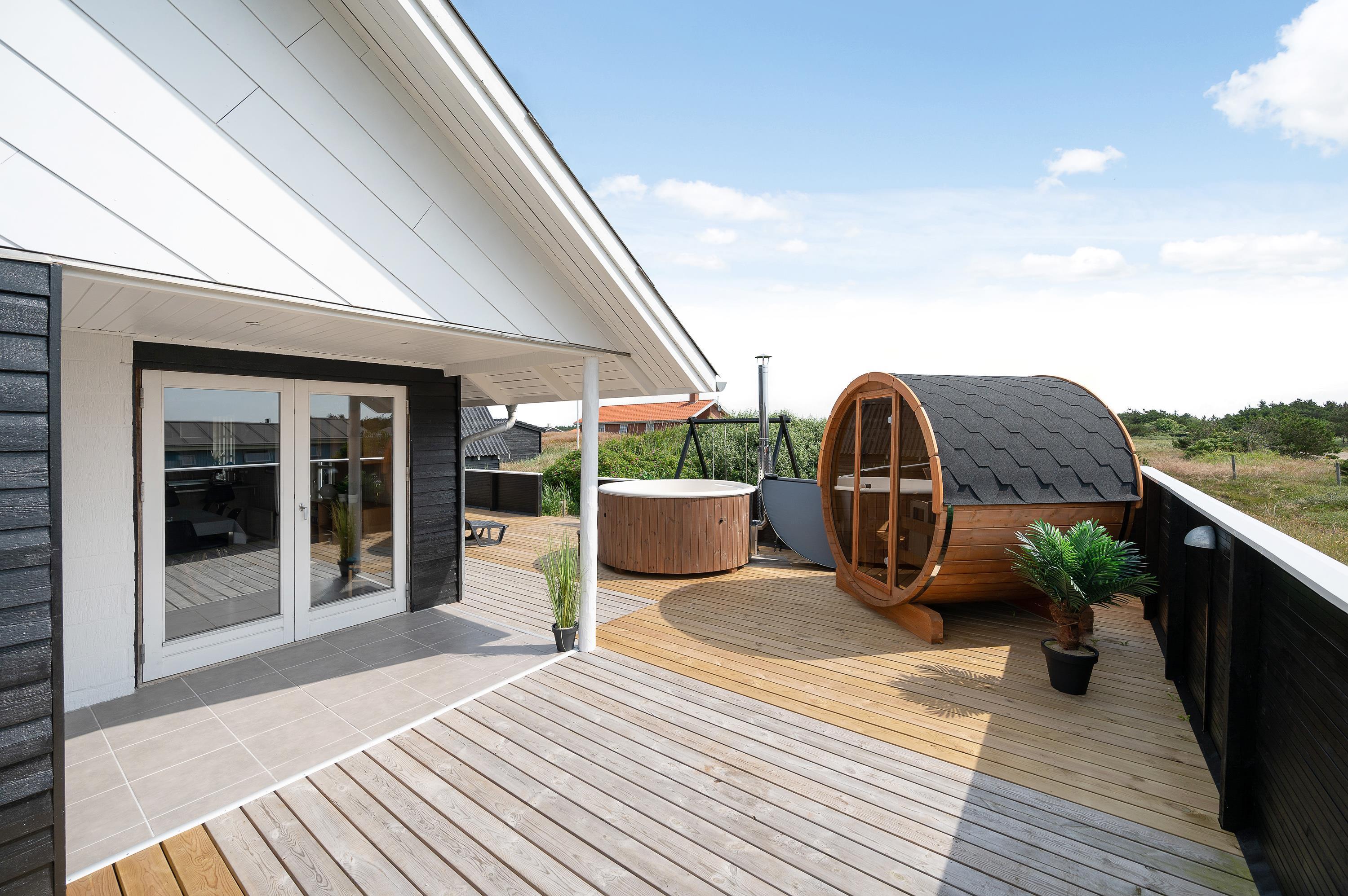 Stor træterrasse med udendørs sauna og vildmarksbad