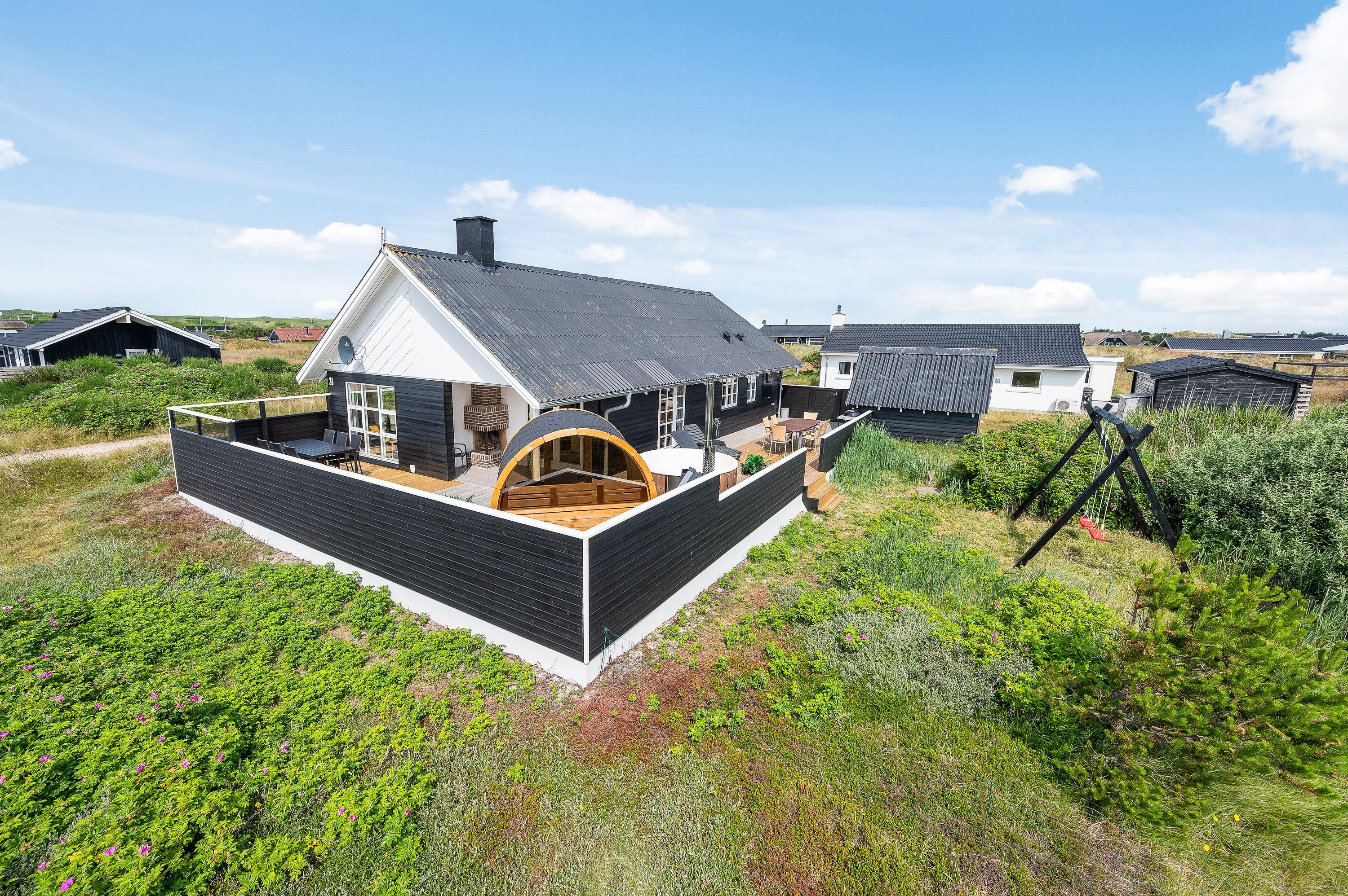 Sommerhuset ligger i det populære Bjerregård, 500 meter fra det brusende hav på den danske vestkyst. Ferieområdet byder på mange vandre- og cykelstier i den betagende natur præget af hede- og klitlandskab.