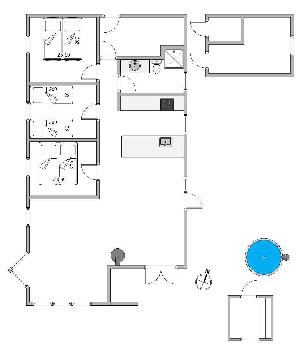 Sommerhuset har plads til 6 feriegæster, som både kan fordele sig på de 3 værelser eller bruge den skønne hems med udkig til stjernehimlen gennem ovenlysvinduerne. De to af værelserne er indrettet med dobbeltsenge, mens der er enkeltsenge på det sidste værelse. Udover madrasser på hemsen er der også et ekstra TV med PlayStation 2, som børnene kan hygge sig med.