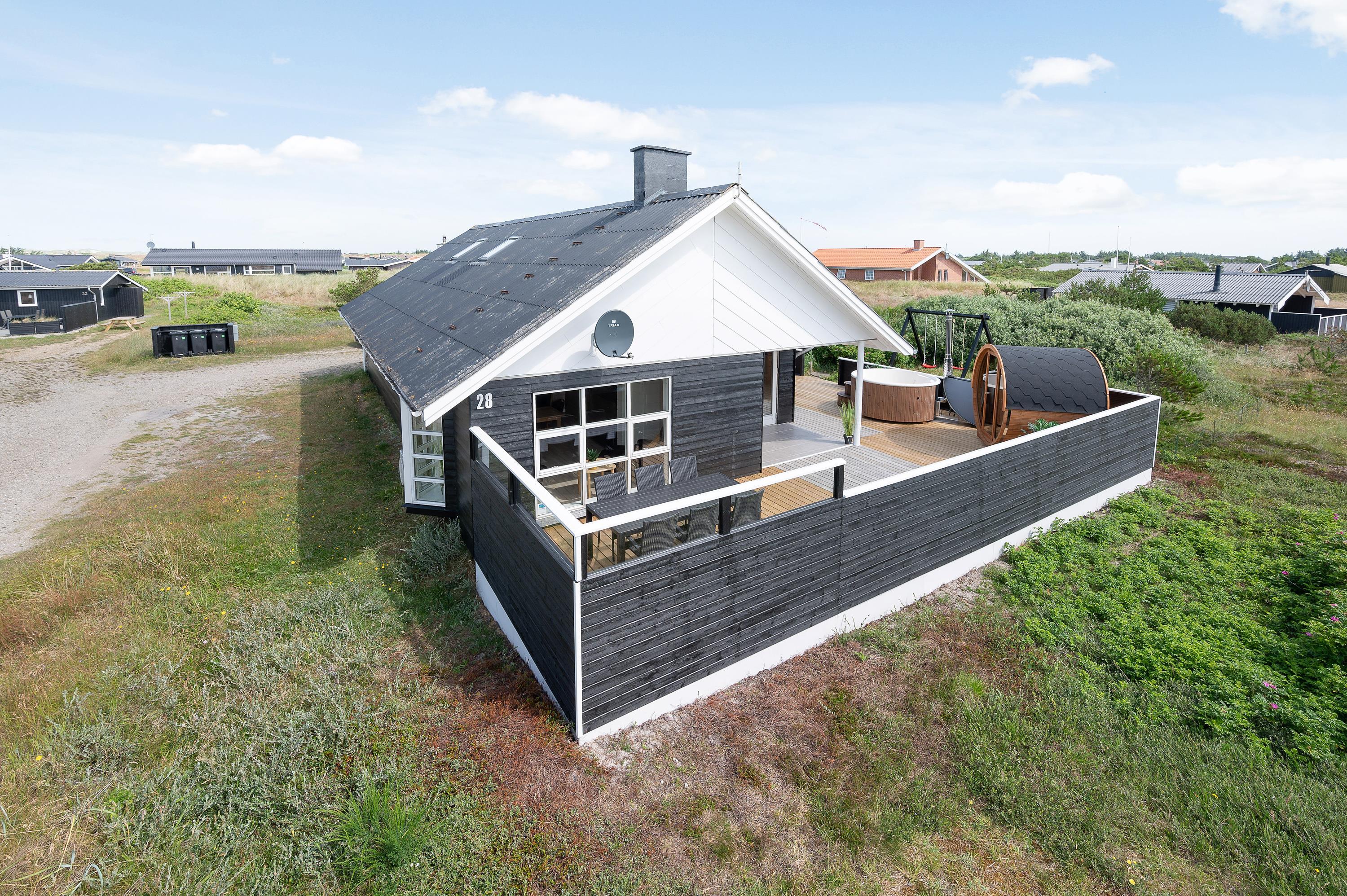 I en afstand af 500 meter fra det brusende Vesterhav på den danske vestkyst venter et hyggeligt og moderne indrettet sommerhus med plads til op til 6 personer på Rauhesvej 28. Har I hund er den også hjertelig velkommen. Sommerhuset ligger op til velvære og afslapning med vildmarksbad og udesauna.