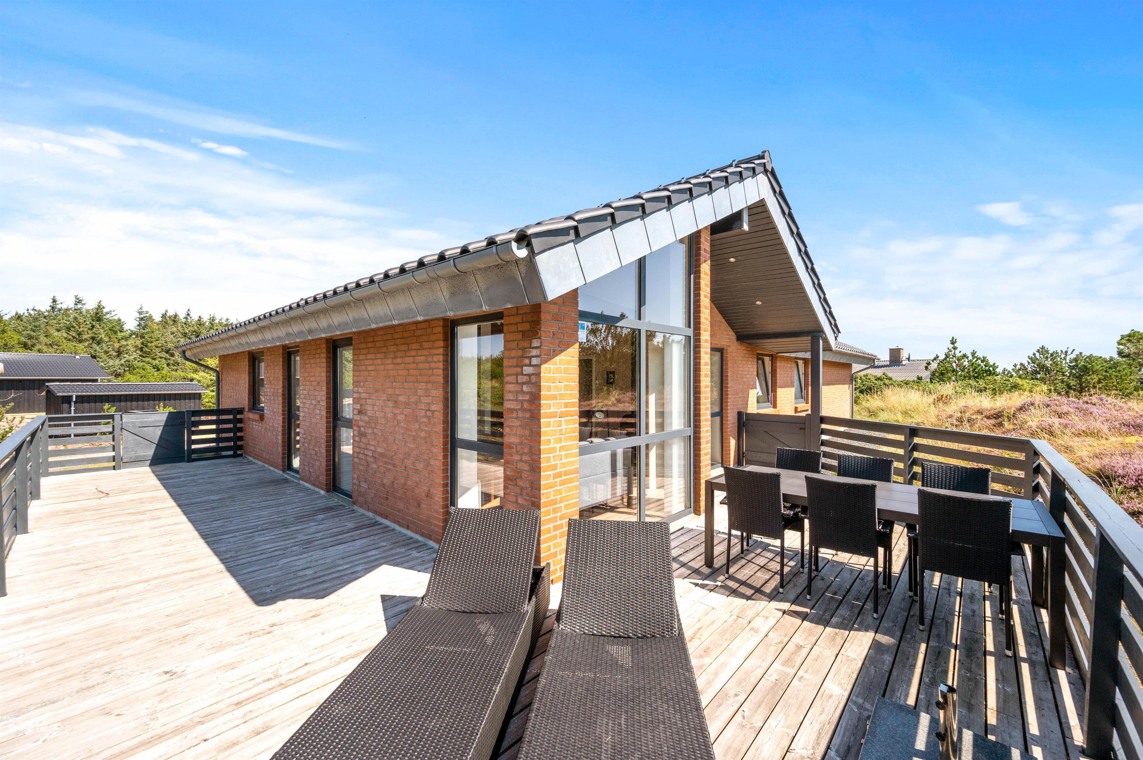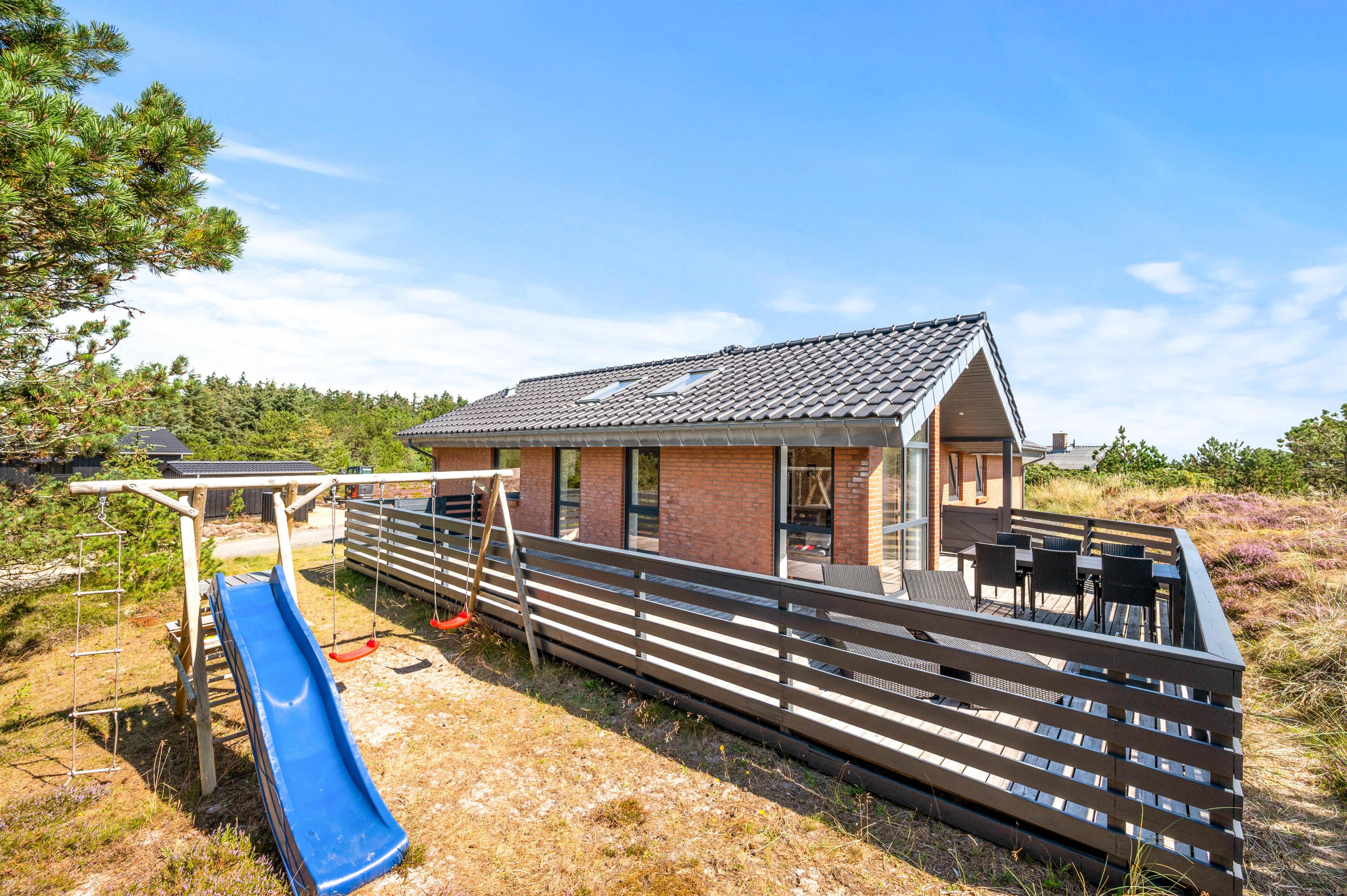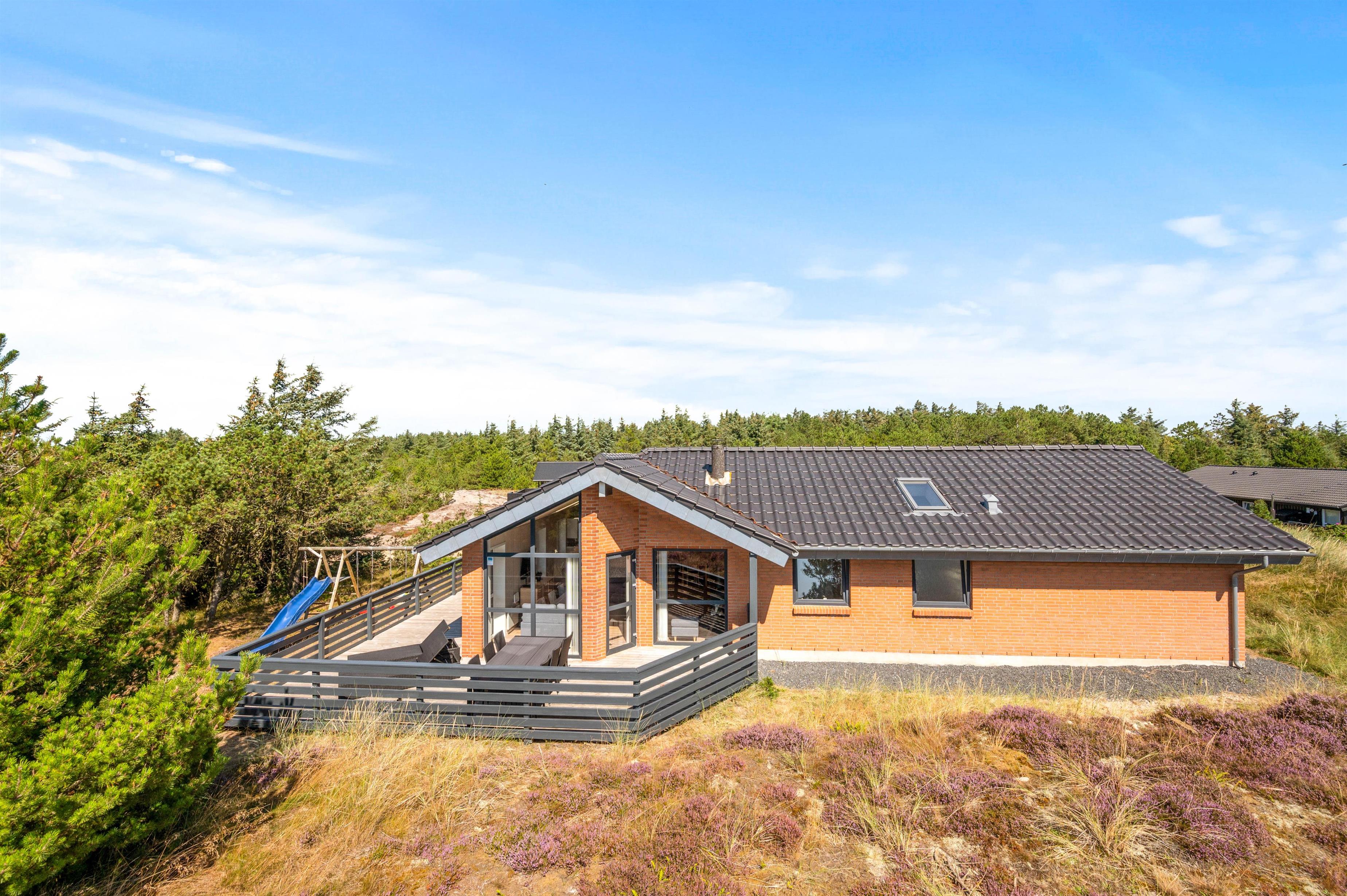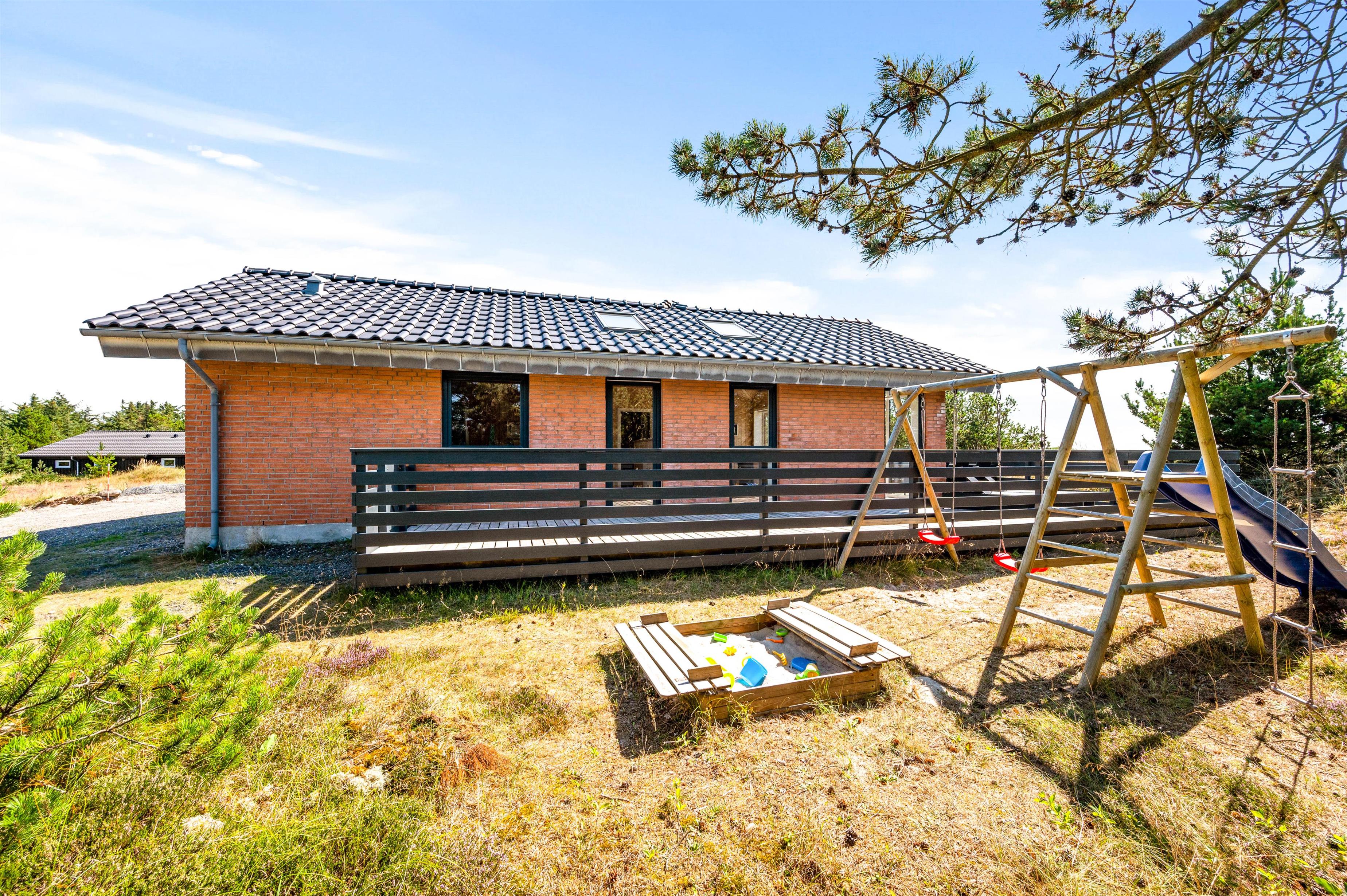 Sommerhuset er beliggende på en stor naturlig afskærmet naturgrund tilbagetrukket fra Arvidvej og ikke langt fra Ringkøbing Fjord. Feriehuset har en fin afskærmet terrasse, med havemøbler, liggestole og grill. For de mindste er der indrettet gynge og sandkasse.