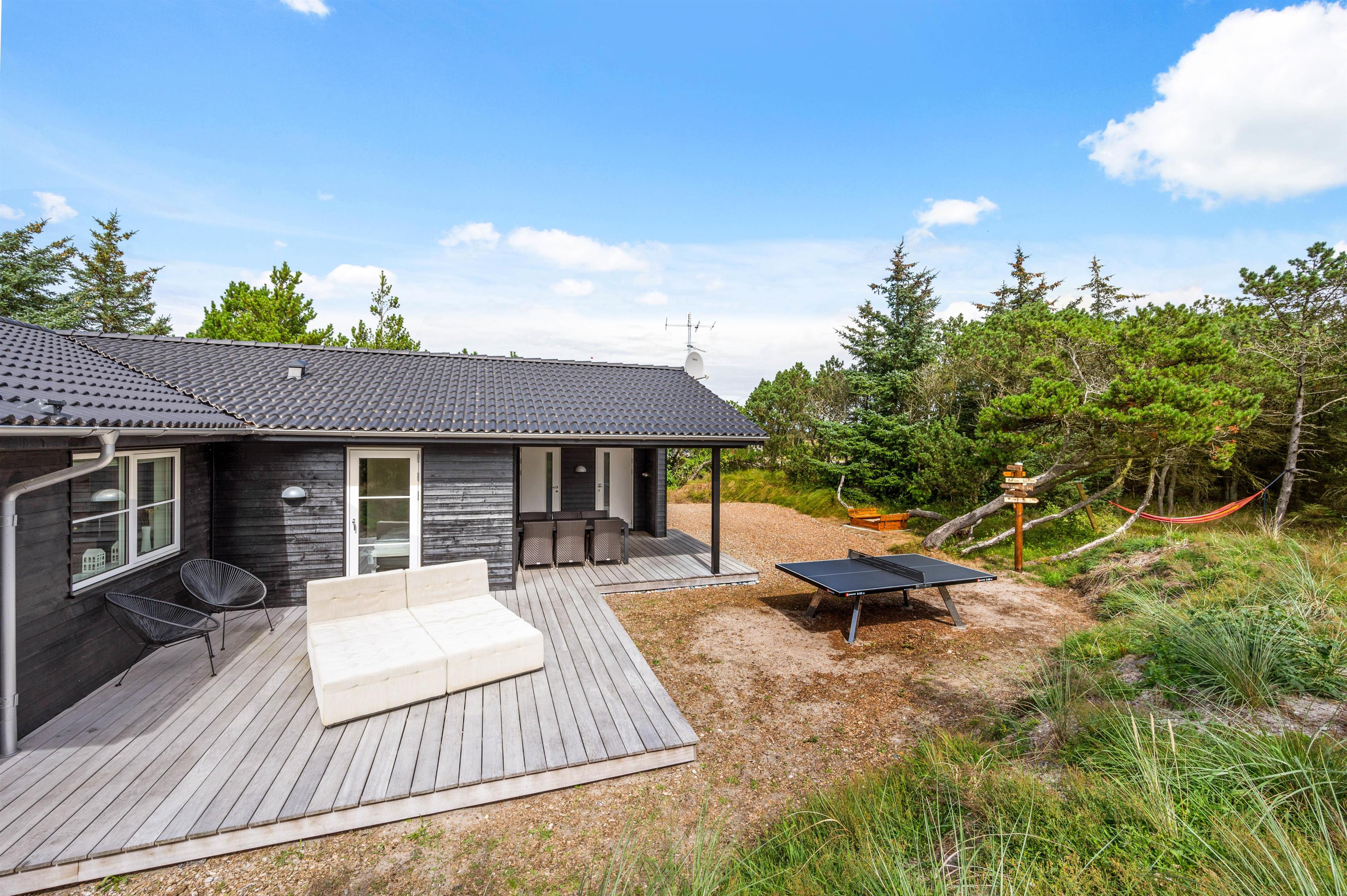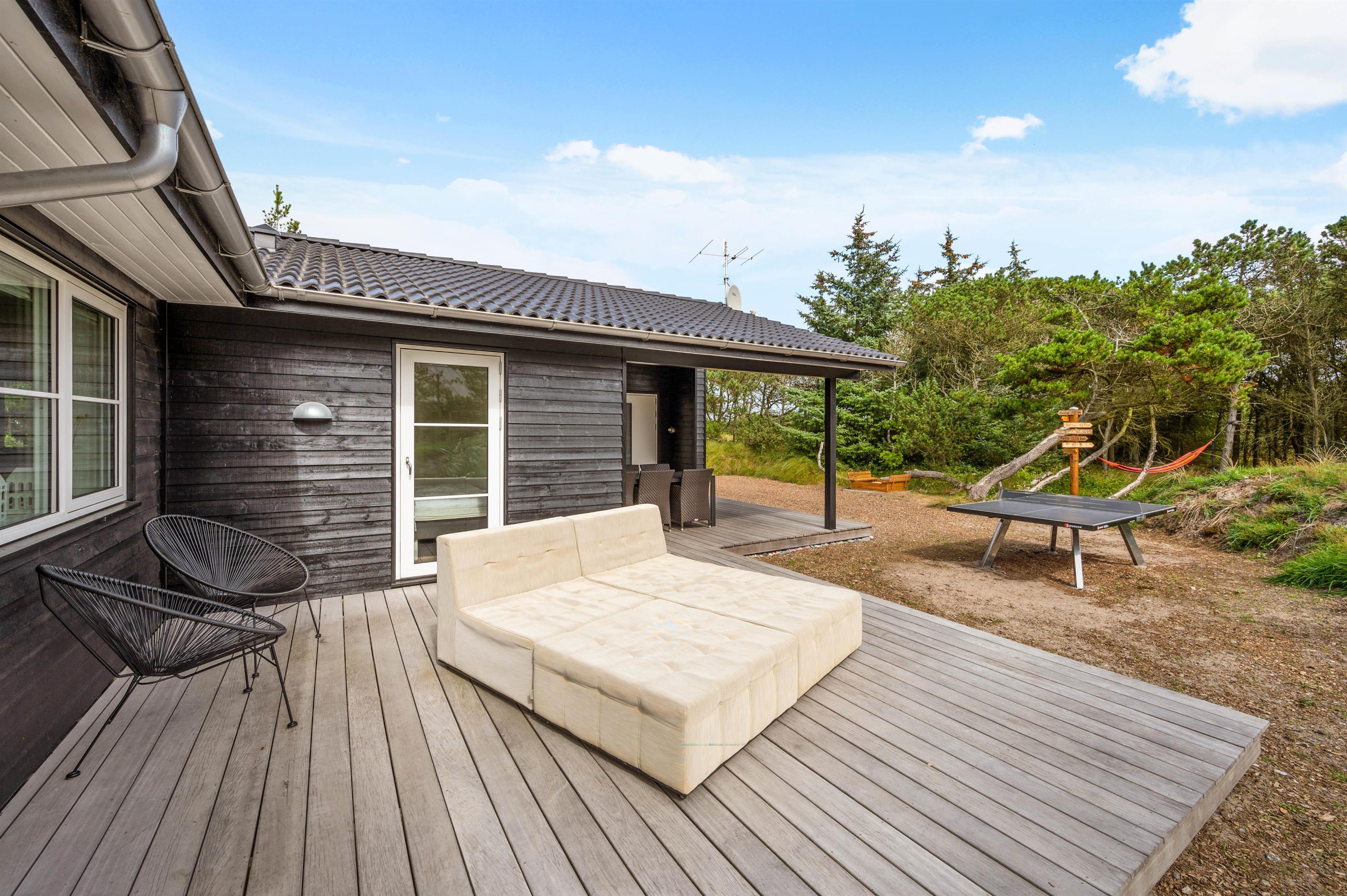 Skønt kvalitetshus kun ca. 10 minutters gang fra Vesterhavet. Det er moderne indrettet og har gode faciliteter såsom sauna, spabad og varmepumpe til rådighed. Det er bygget på en læfyldt grund, så I kan få mest mulig ud af de gode terrasser, hvoraf den ene er lukket.