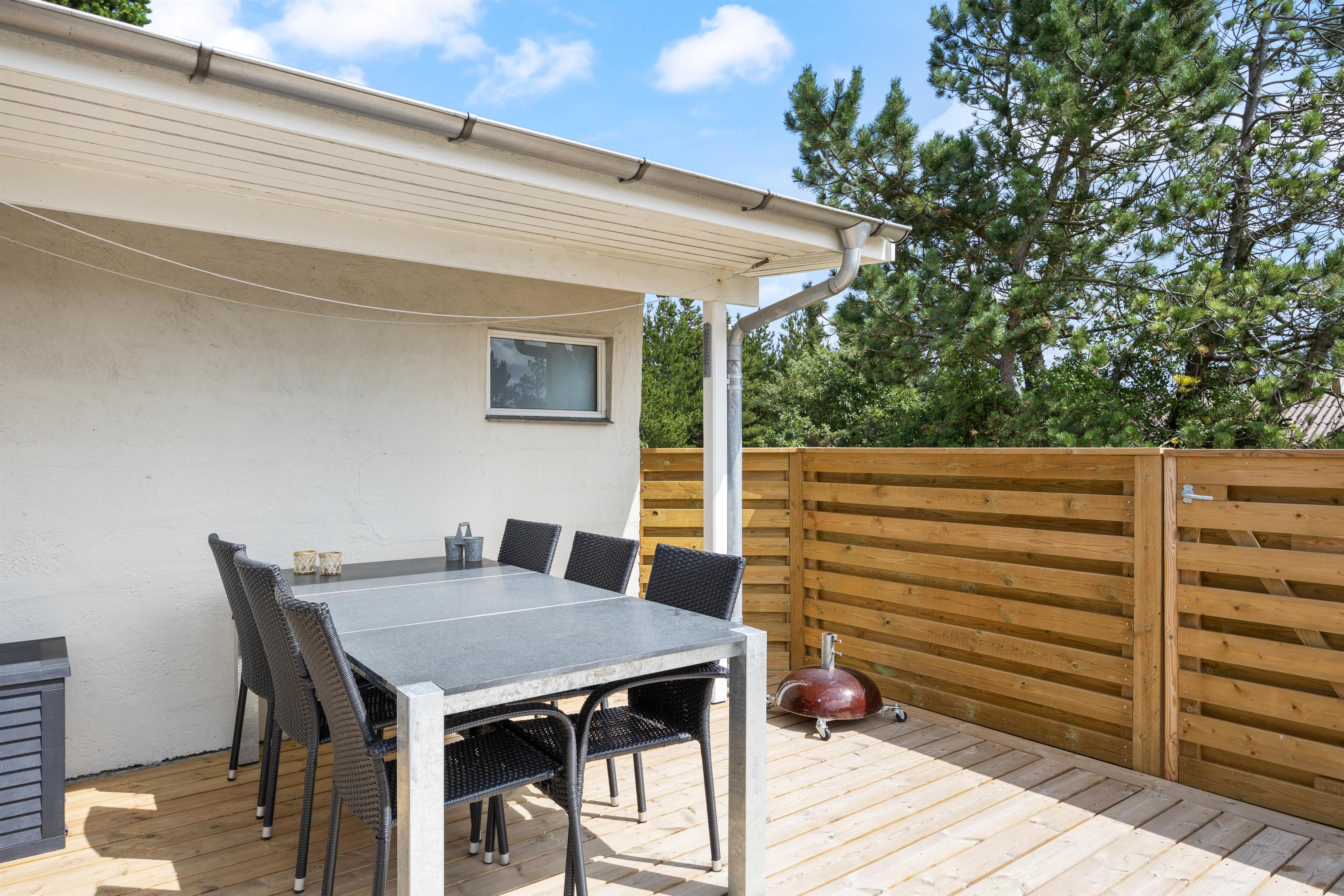I kan også tilbringe mange gode timer udendørs ved sommerhuset på Bjerregårdsvej 19. Den lukkede og afskærmede terrasse er sydøst vendt og danner de perfekte rammer til at nyde solopgangen med dagens første kop kaffe.