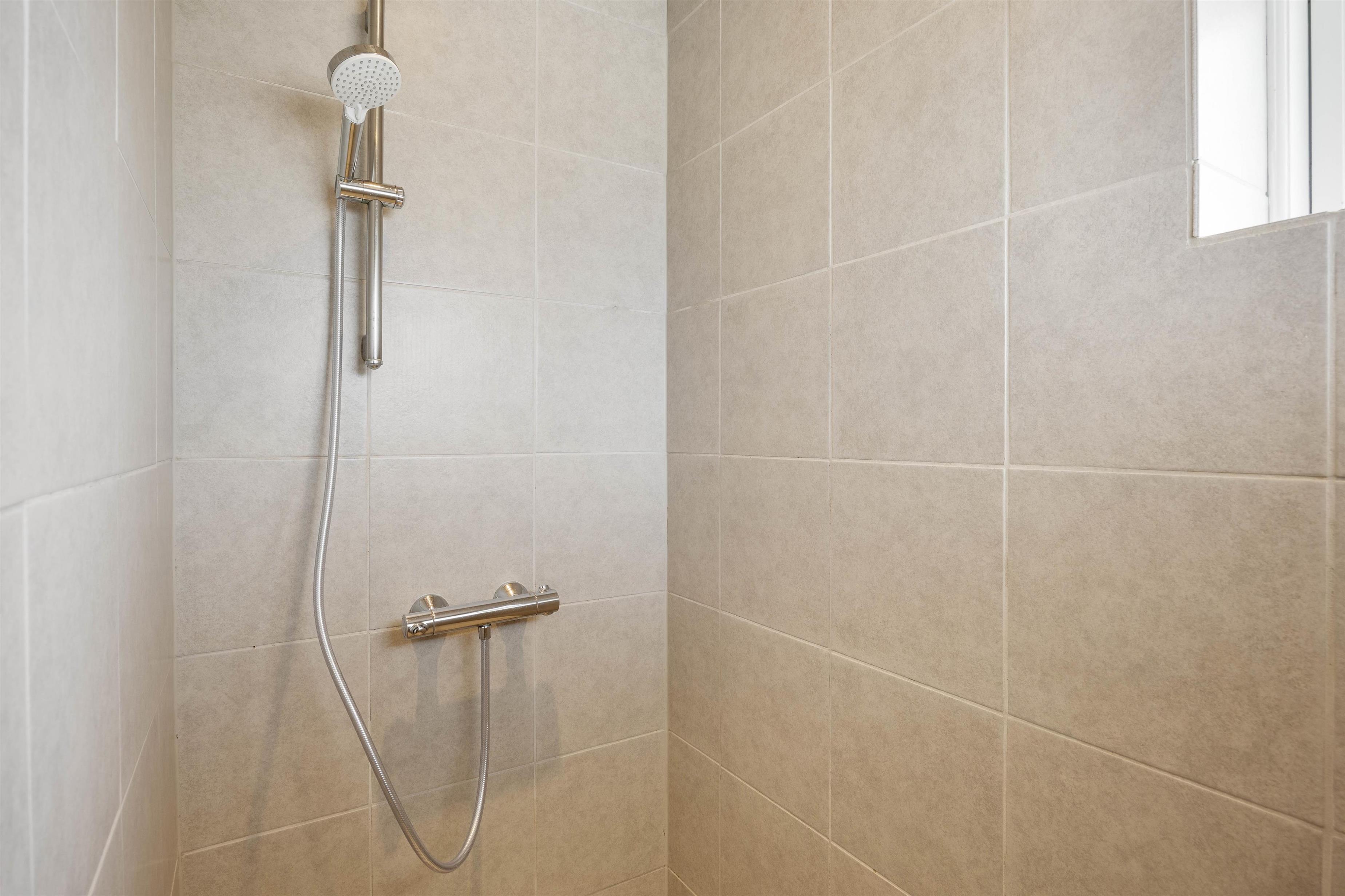Det renoverede badeværelse med gulvvarme indbyder til afslapning og velvære i sommerhusets sauna.