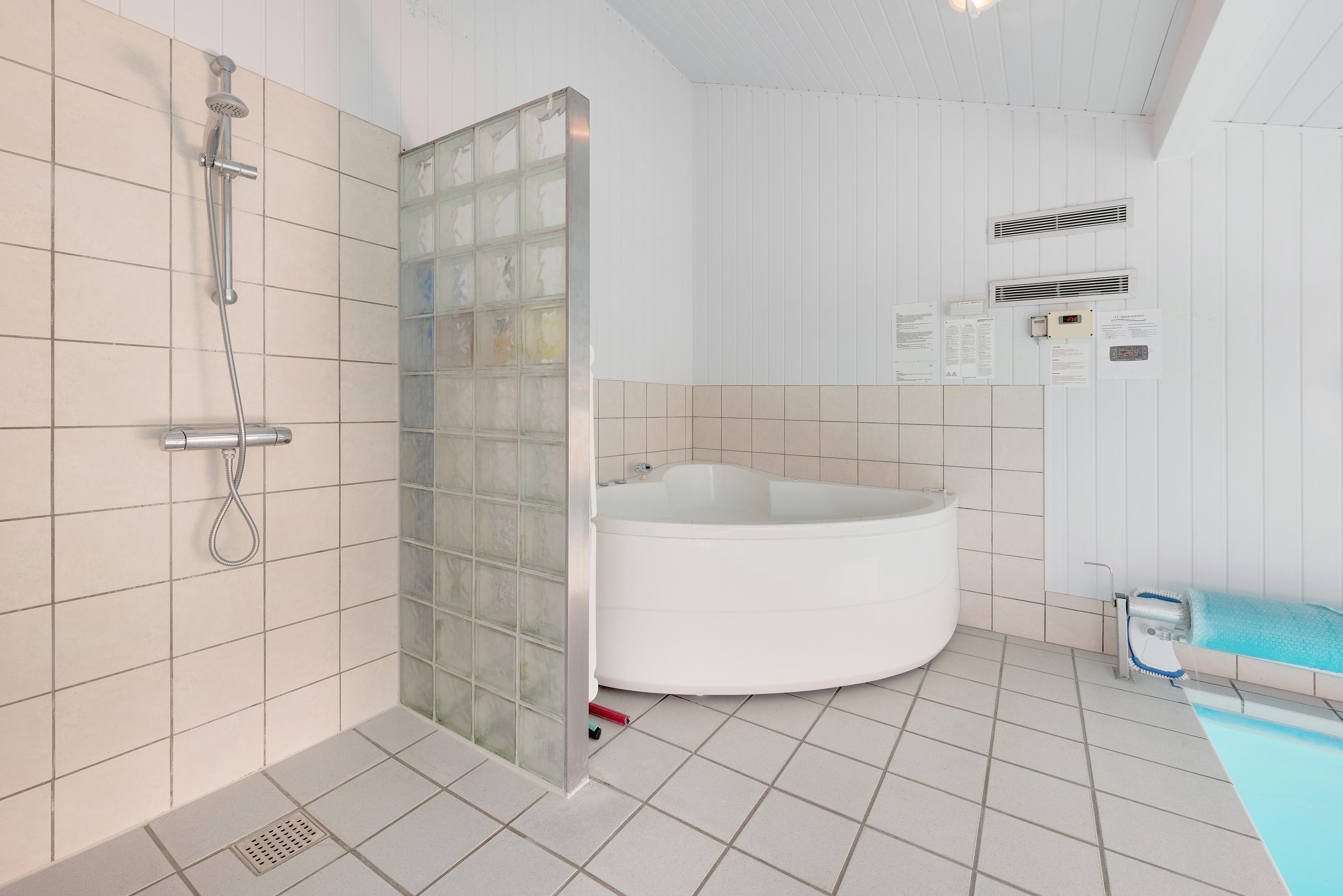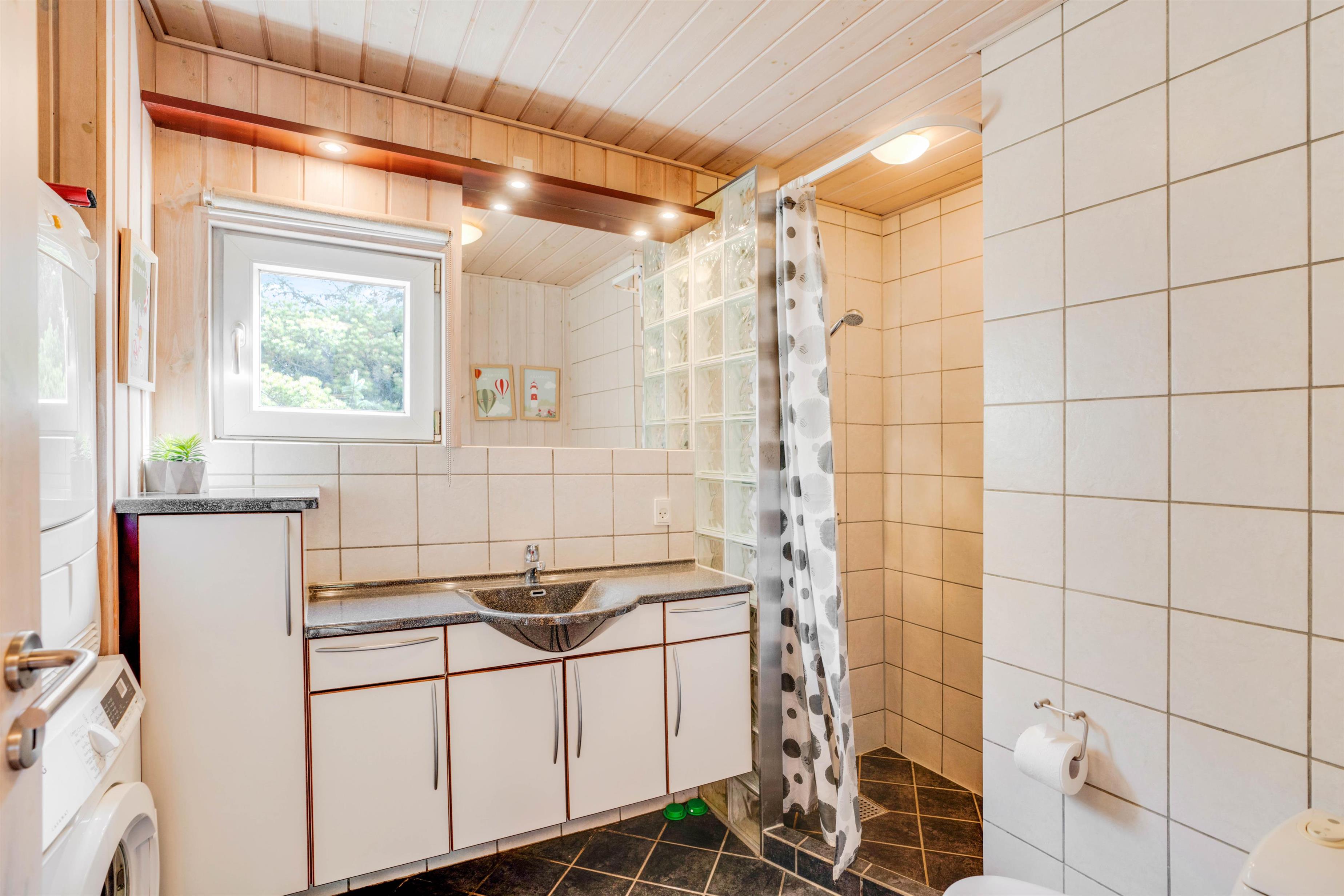 Der er plads til 8 personer, som kan benytte det rummelige badeværelse med vaskemaskine og tørretumbler samt et ekstra gæstetoilet. I poolområdet finder I desuden en ekstra bruser.