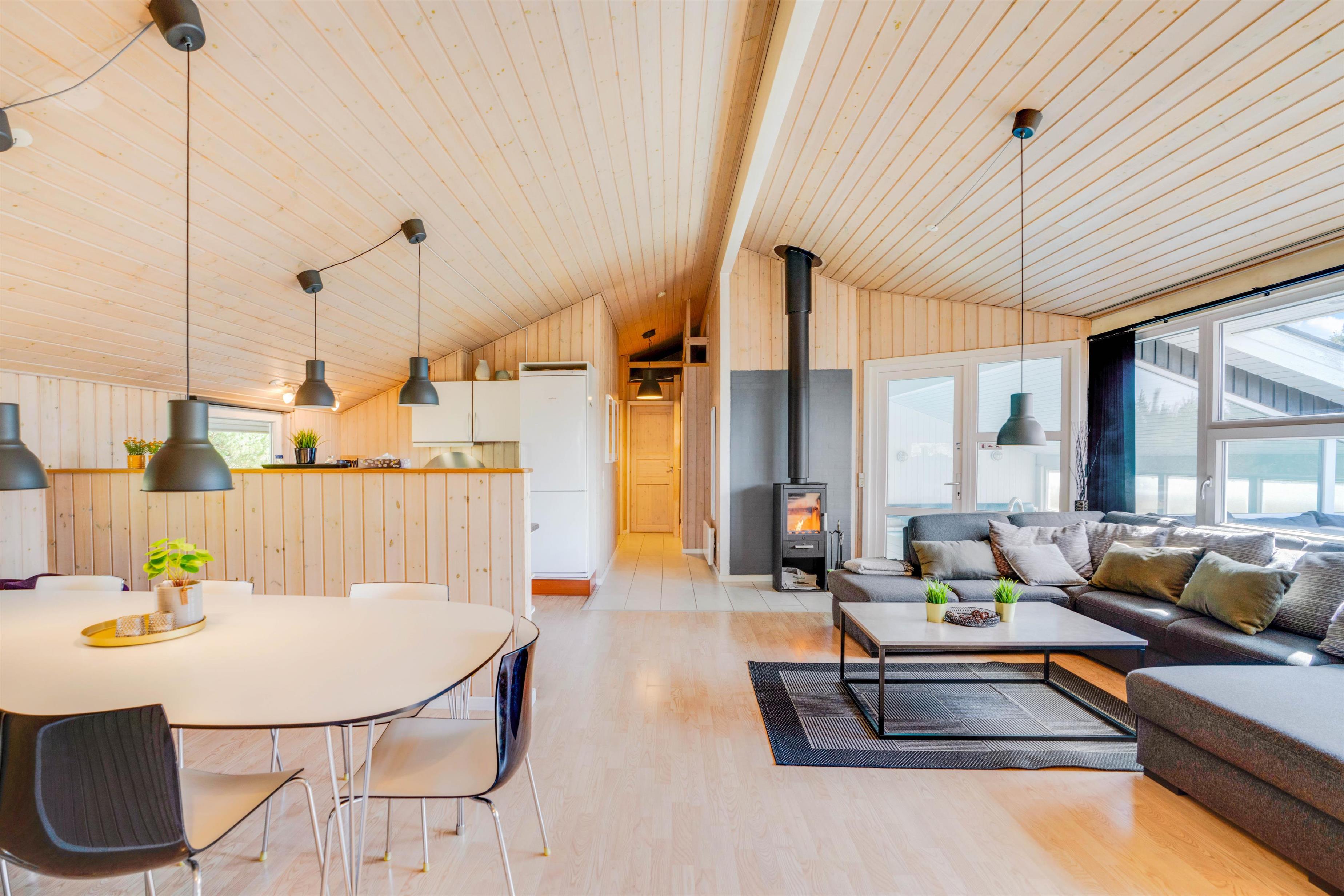 Fra stuen har I fuldt overblik over poolområdet, så I kan holde øje med de små, mens I selv hygger jer. På kølige efterårsaftener kan I tænde op i brændeovnen og lade varmen brede sig, mens I spiller kort og skaber hyggelige familieaftener. Til opvarmning kan I også benytte den energibesparende varmepumpe.