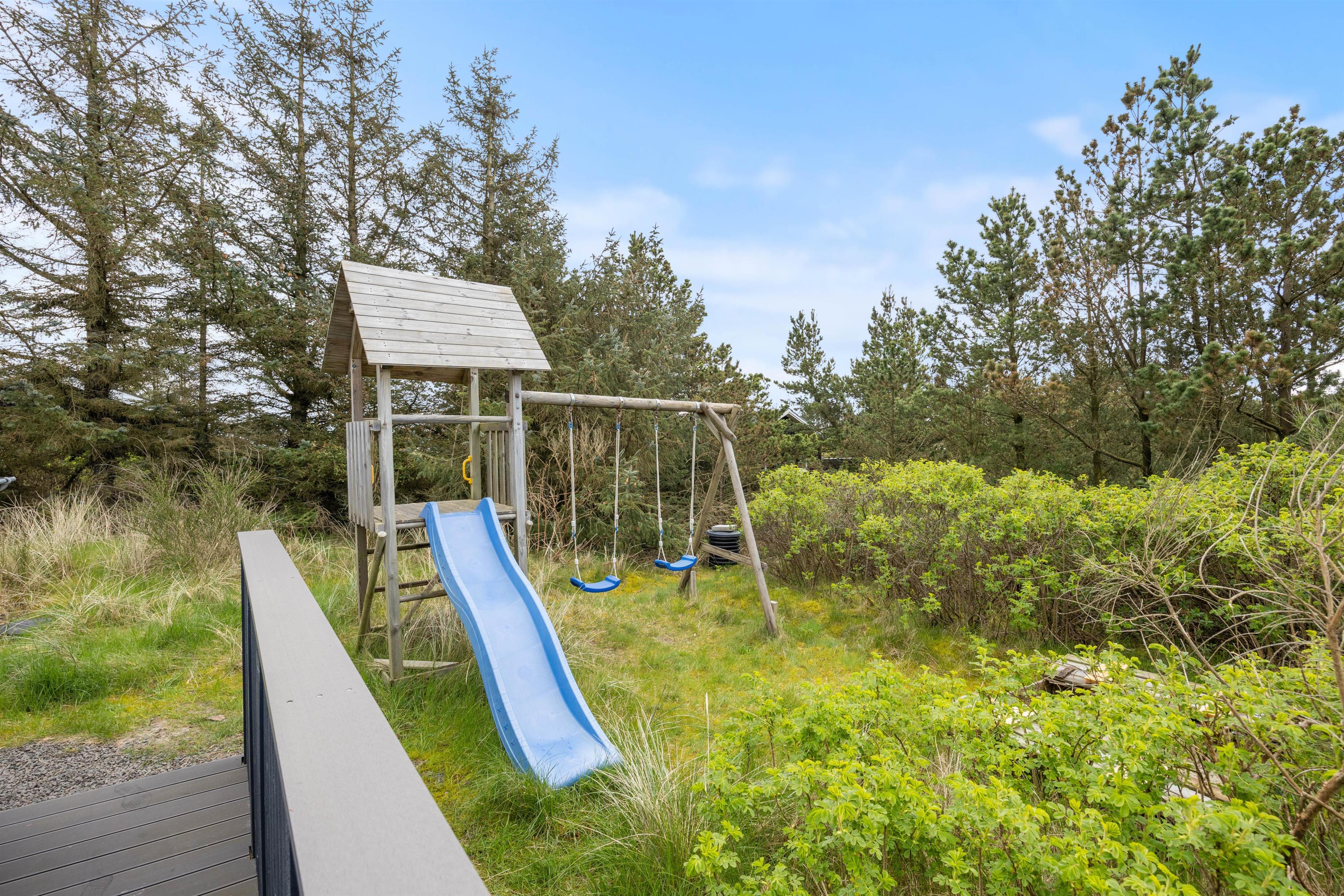 Den naturskønne grund er omkranset af træer og giver masser af plads til, at familiens firbenede venner kan boltre sig. Børnene vil elske sandkassen og legetårnet, der er udstyret med både rutsjebane og gynger. På den afskærmede og delvist overdækkede terrasse kan I nyde fuglesangen, mens grillen langsomt varmer op til en hyggelig middag.
