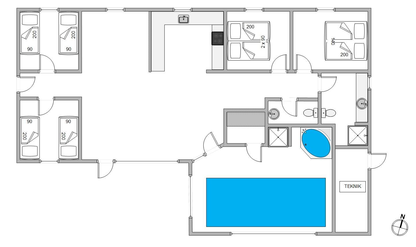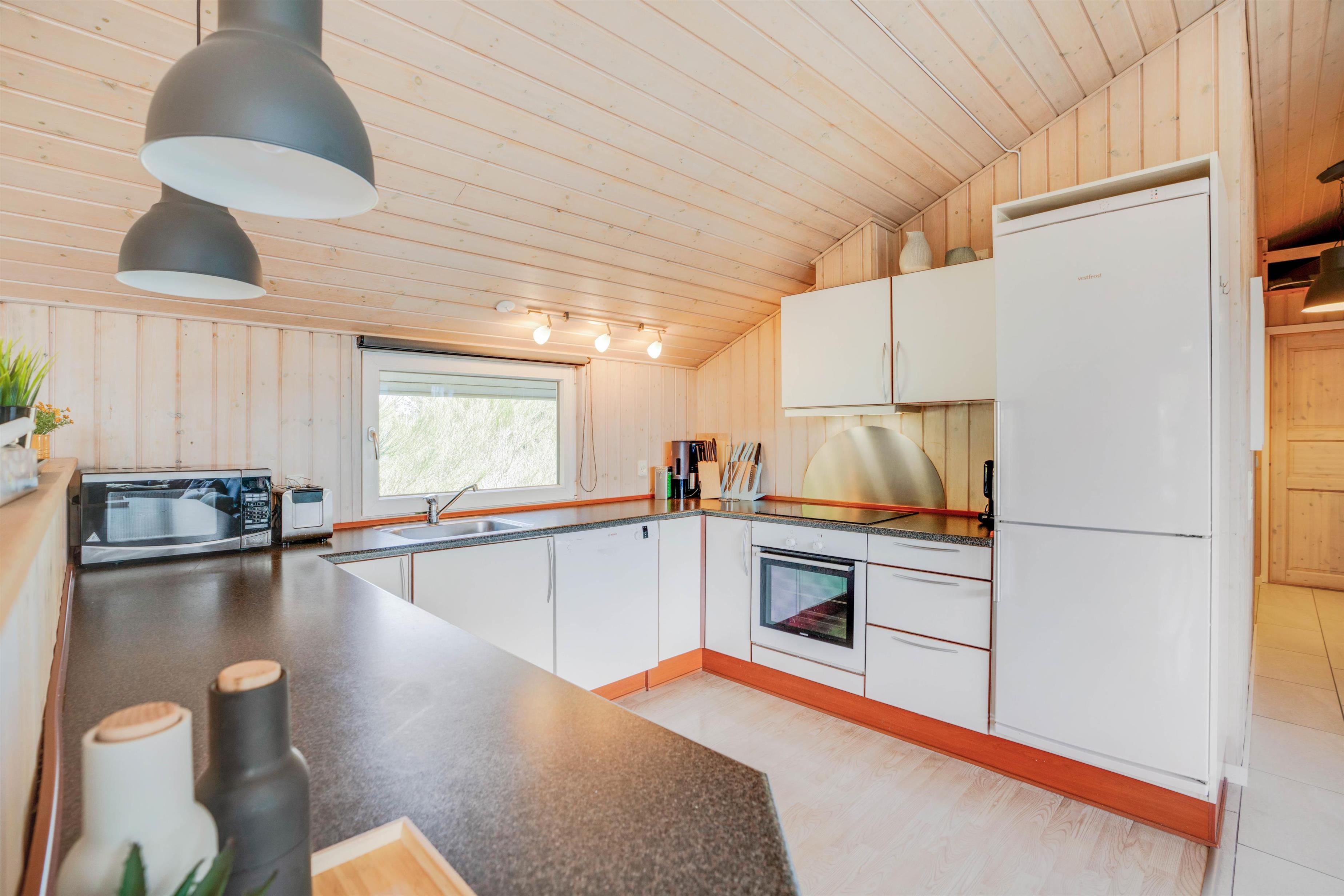 Sommerhusets køkken er veludstyret og tilbyder masser af komfort. De 4 soveværelser har trægulve, boxmadrasser og mørklægningsgardiner, så en god nattesøvn er sikret for alle.