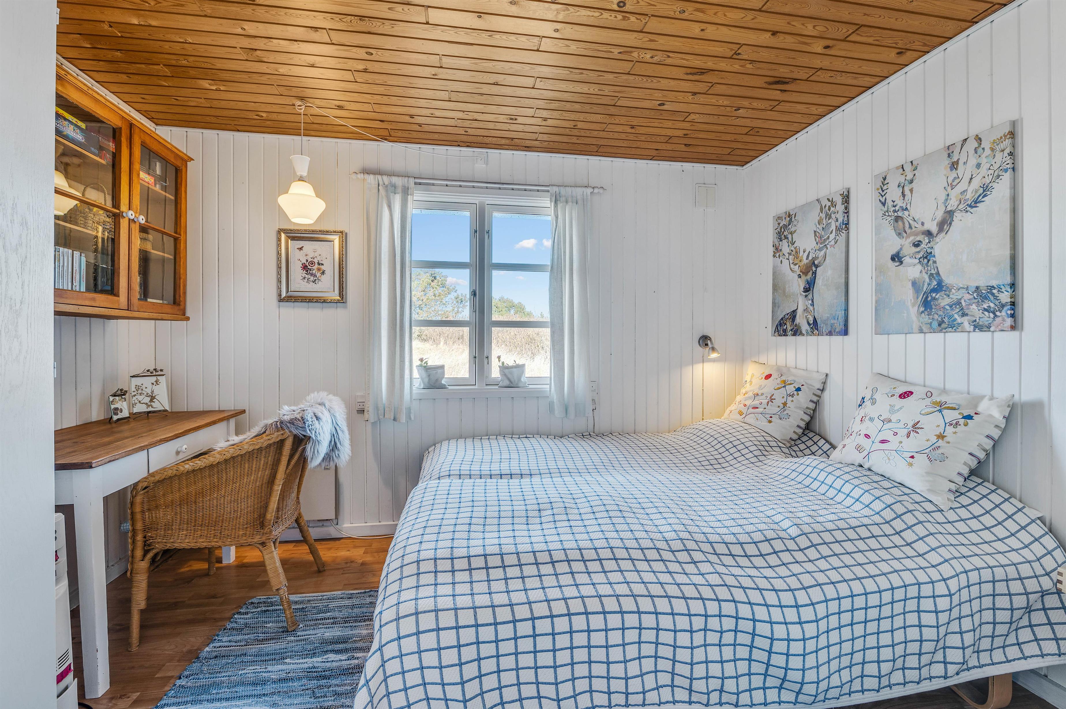 Feriehusets 2 soveværelser er med behagelige trælaminat gulve. Også i værelserne oser det af ferie og strand - farverne er holdt i lyse og venlige farver.