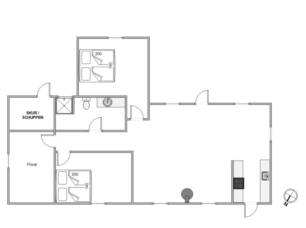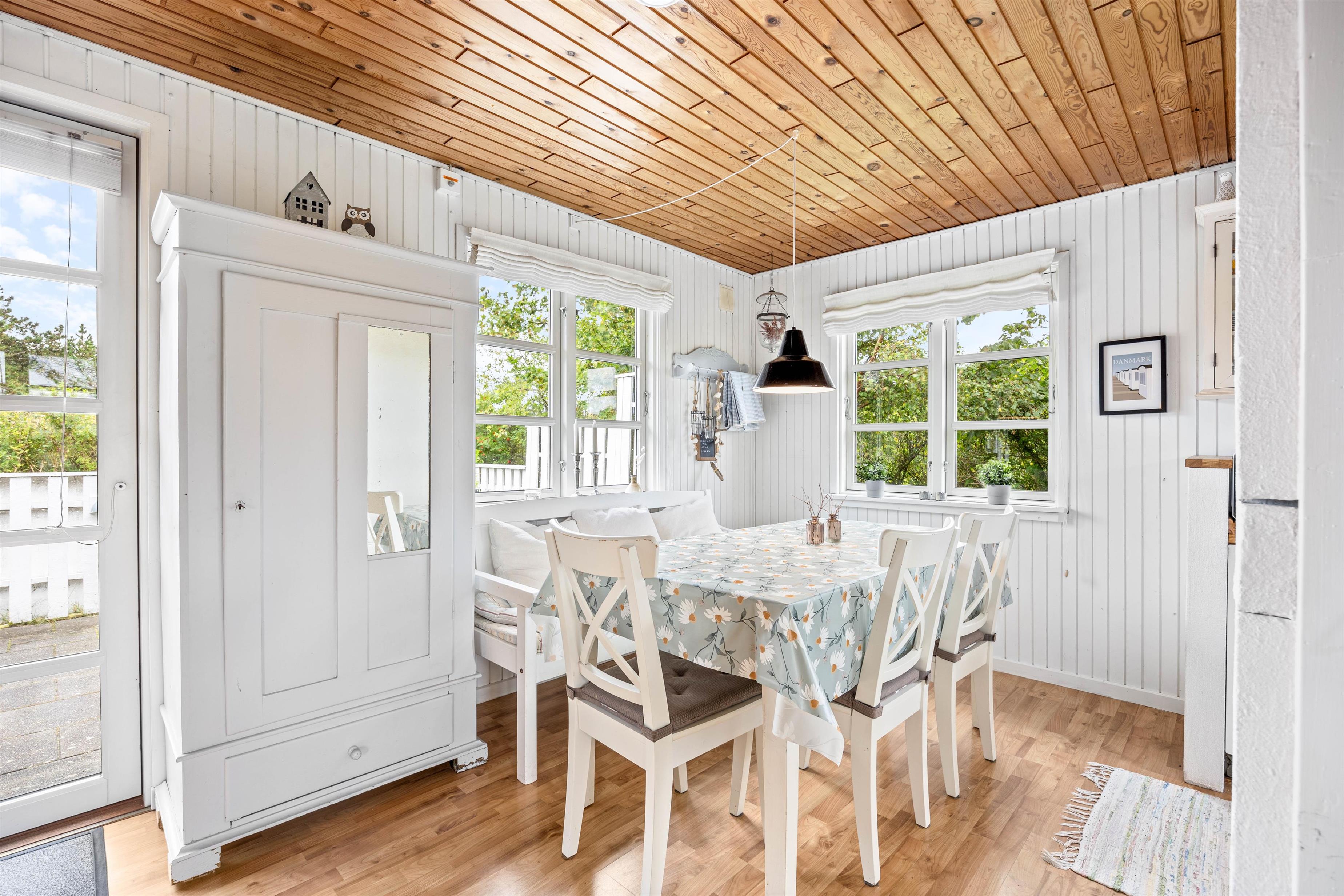 I det meget autentiske køkken finder I opvaskemaskine, køleskab og komfur. Her er virkelig kræset for detaljerne, og sommerhuset oser af feriehygge. Nyd udsigten fra de store vinduer i køkkenet og lad tankerne fare, mens duften af frisklavet kaffe breder sig i rummet.