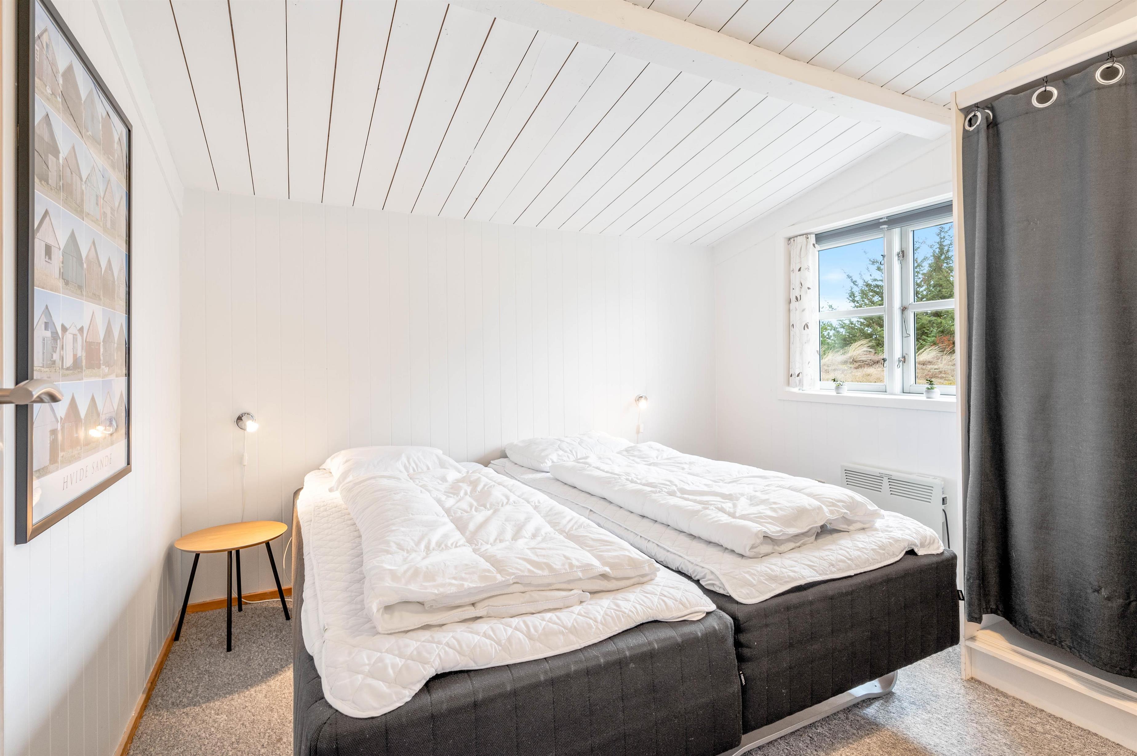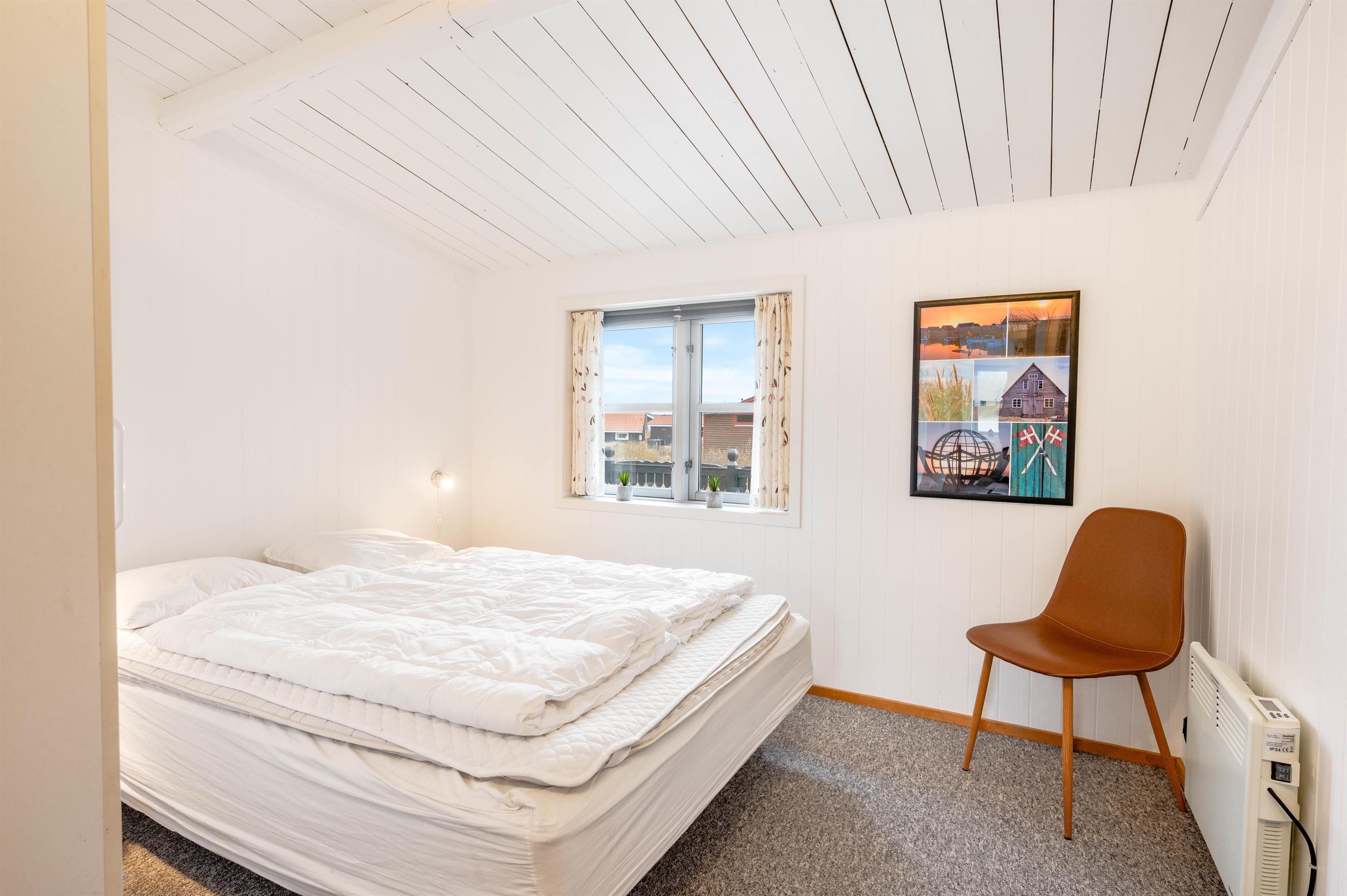Planløsningen i sommerhuset byder derudover på 3 rummelige soveværelser med gulvtæppe samt ét badeværelse. I de 2 soveværelser finder I en dobbeltseng, mens det sidste er indrettet med en enkeltmandsseng. Fra badeværelset har I adgang til saunaen, som bidrager med lidt ekstra luksus på jeres ferie. Her kan I for alvor få ladet batterierne op efter en skøn dag ved stranden. I sommerhuset finder I også en vaskemaskine.