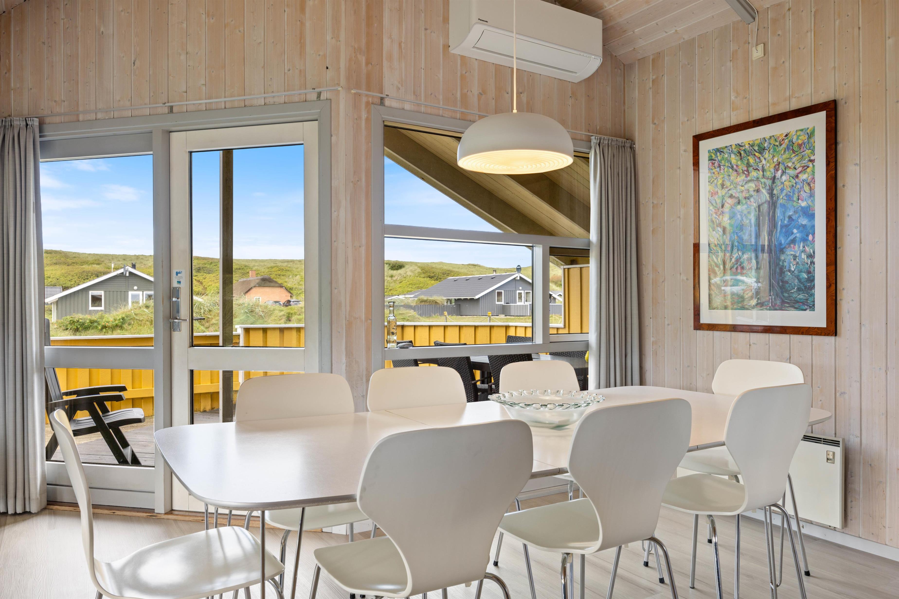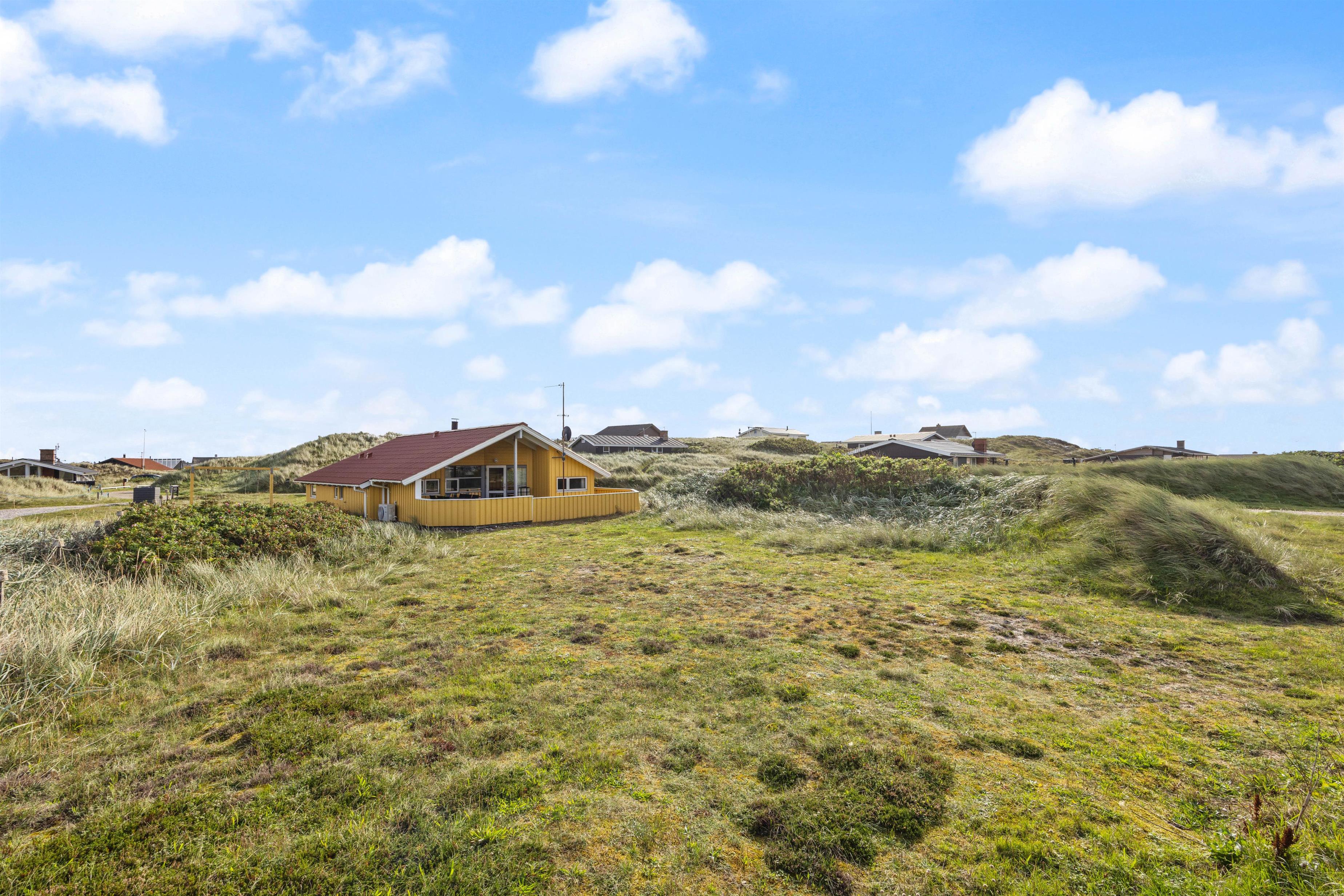 Sommerhusets gode og velmøblerede terrasse er afskærmet og delvist overdækket, så I altid har gode muligheder for at nyde solen, naturen og den friske luft fra havet. Sommerhuset har både gyngestativ og sandkasse til familiens mindste, og afstanden til den fine sandstrand gør bade- og traveturene i den storslåede natur til en daglig fornøjelse. Til stranden har I nemlig kun 150 meter.