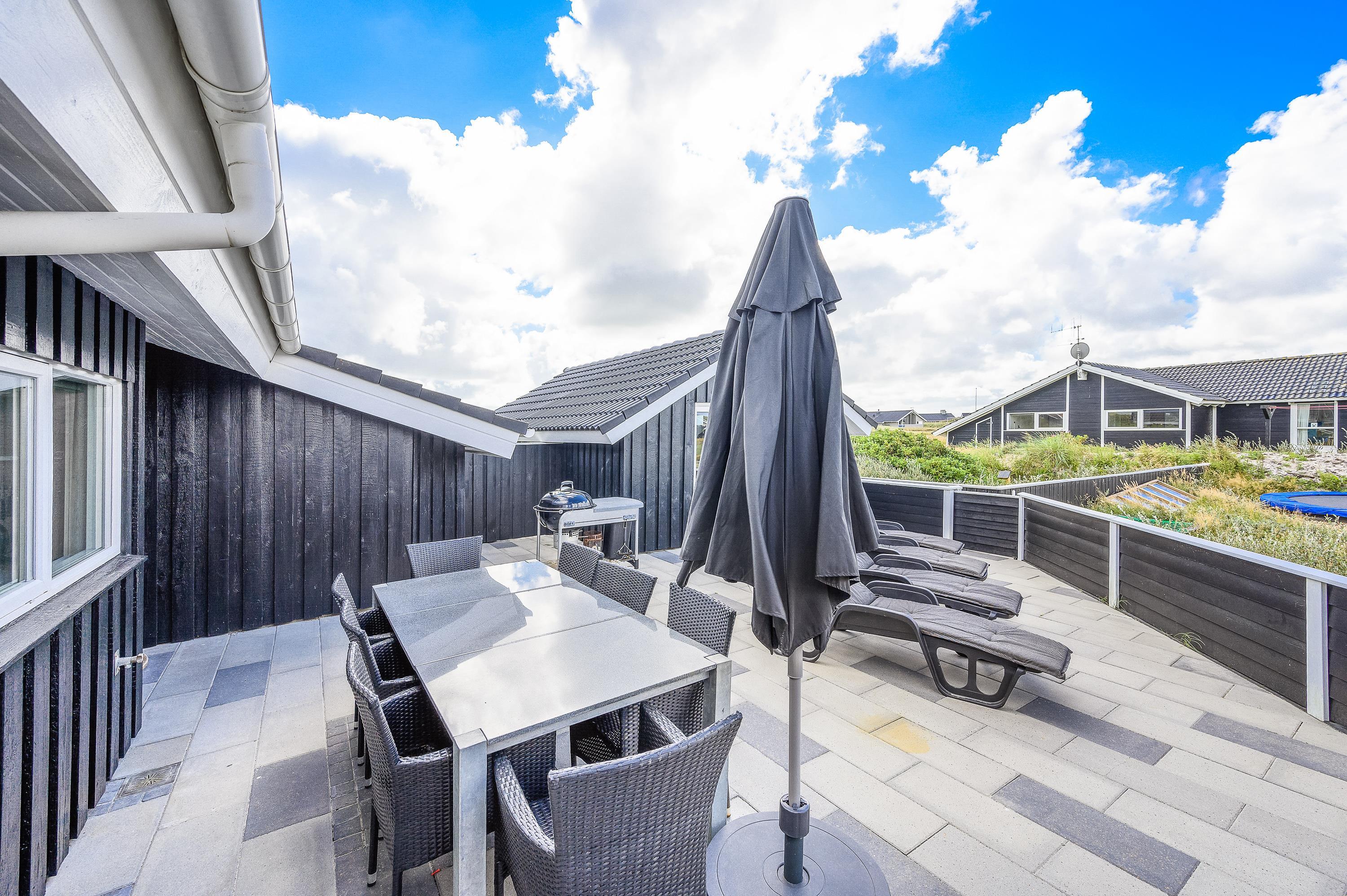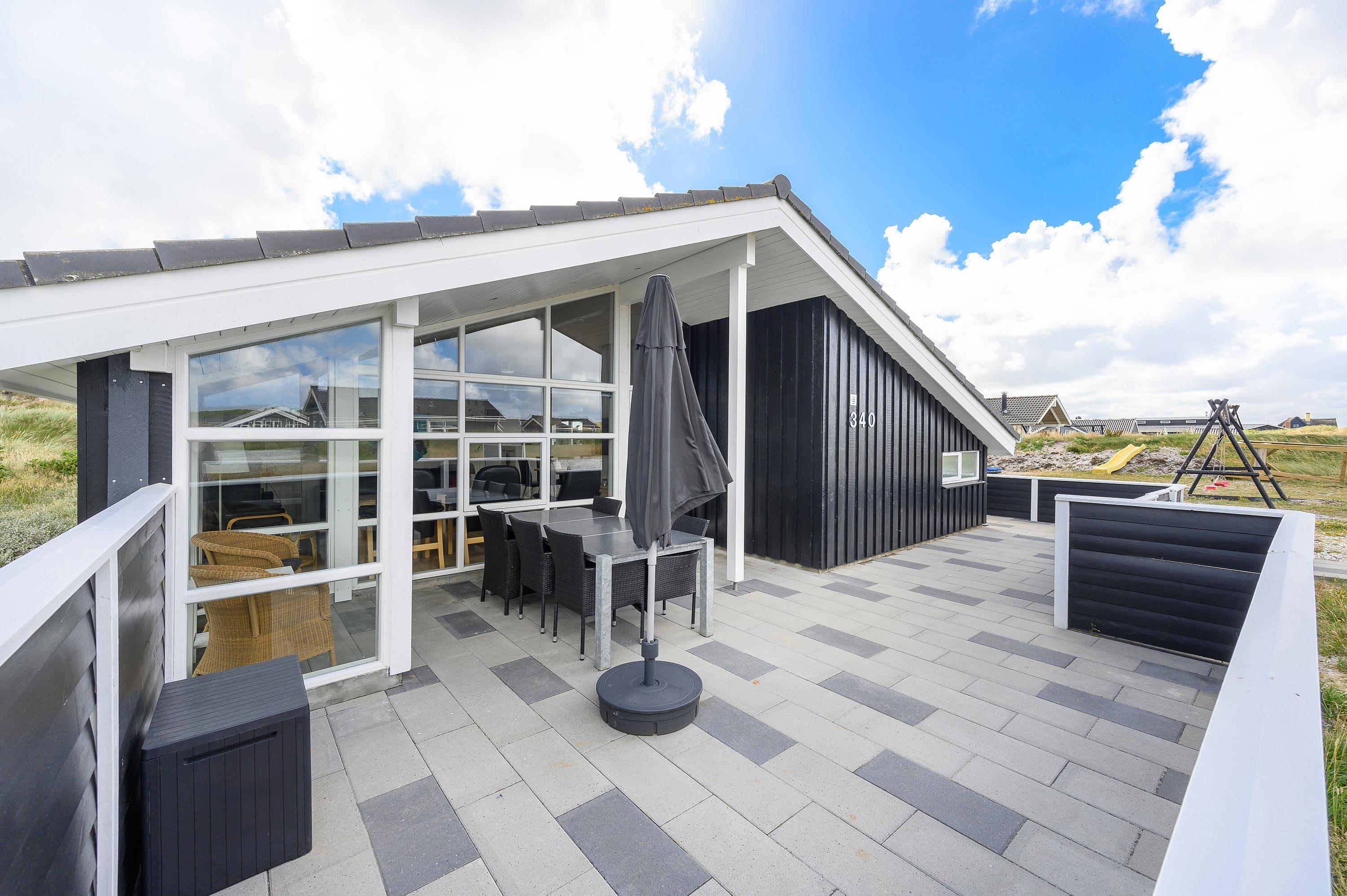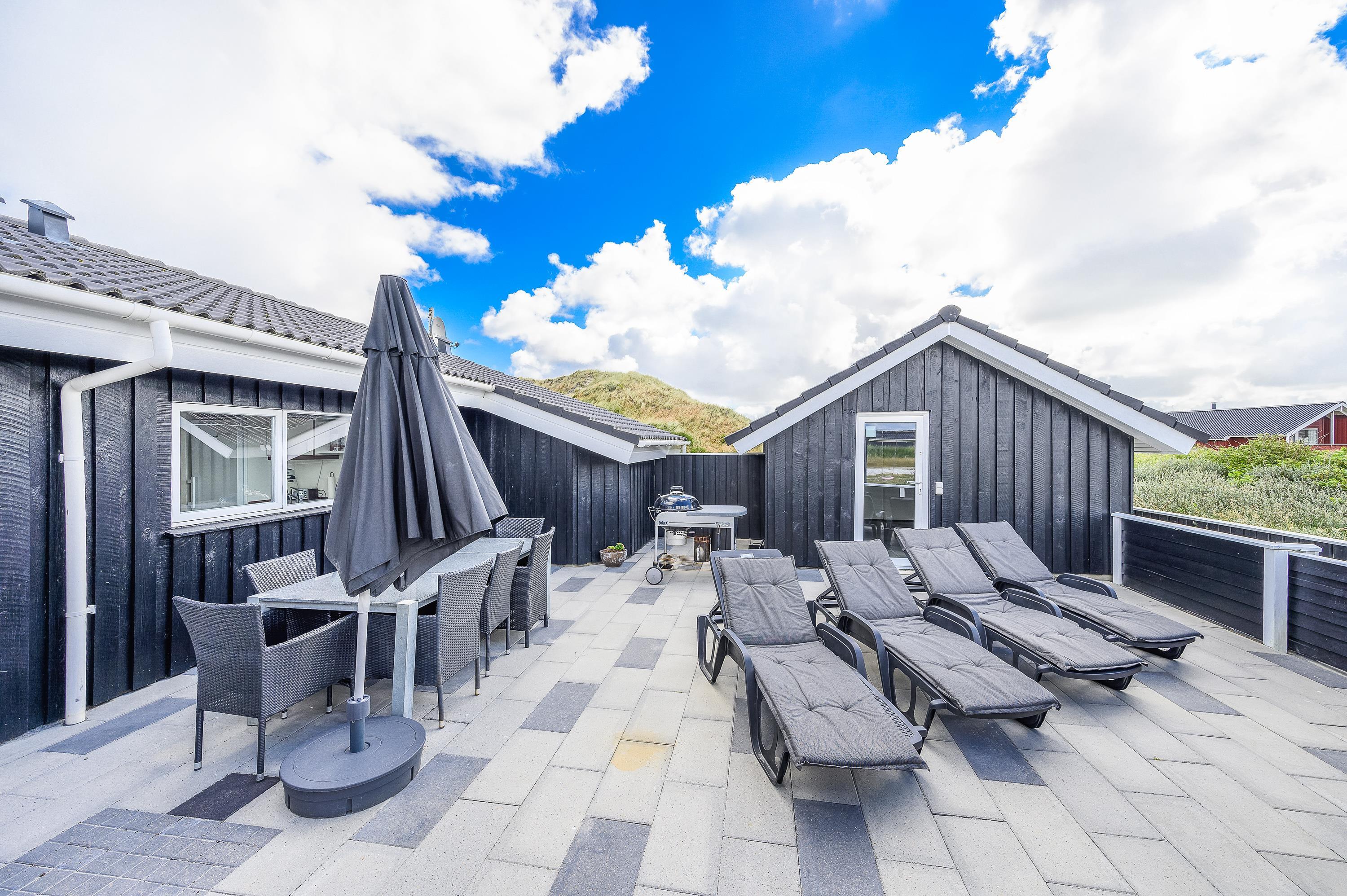 Sommerhuset ligger kun 400 meter fra havet, og med både lukket og overdækket terrasse, er det altid muligt at sidde ude. Der er intet som en grill-aften på terrassen, med havets brusen i baggrunden, og med børnene legende i sandkassen.