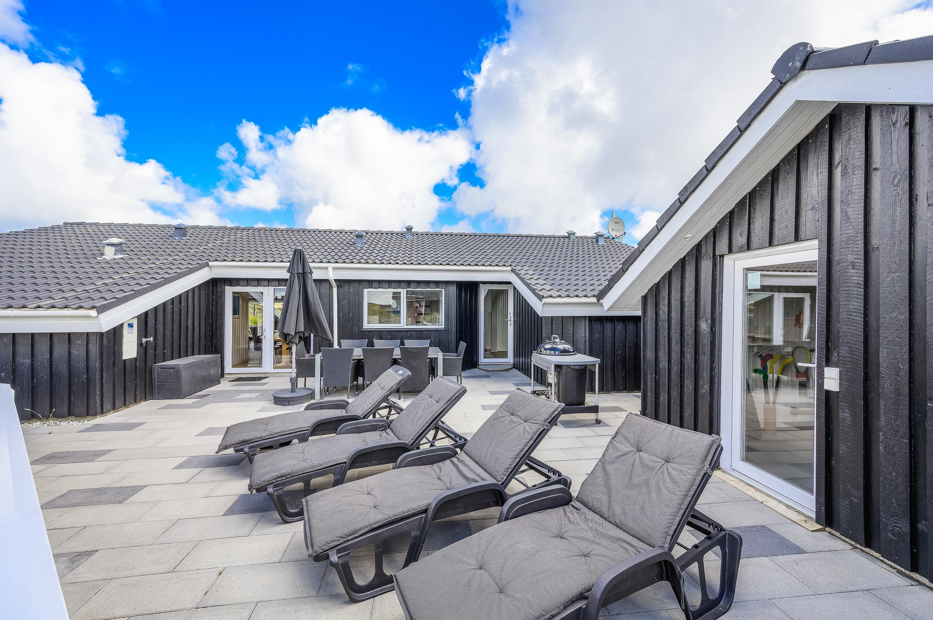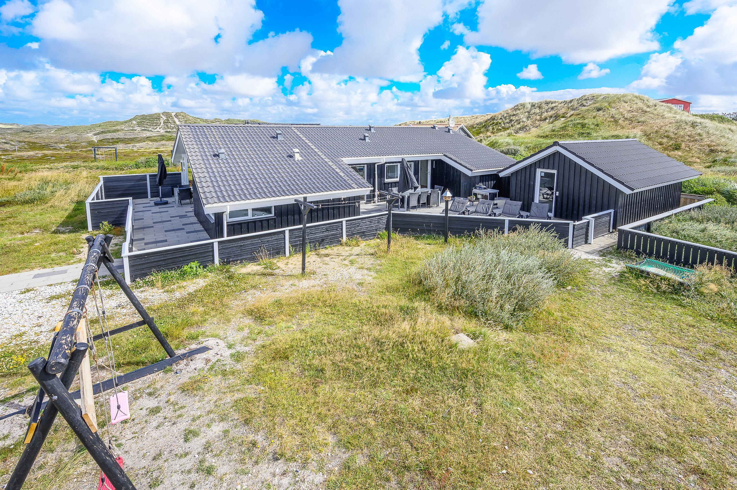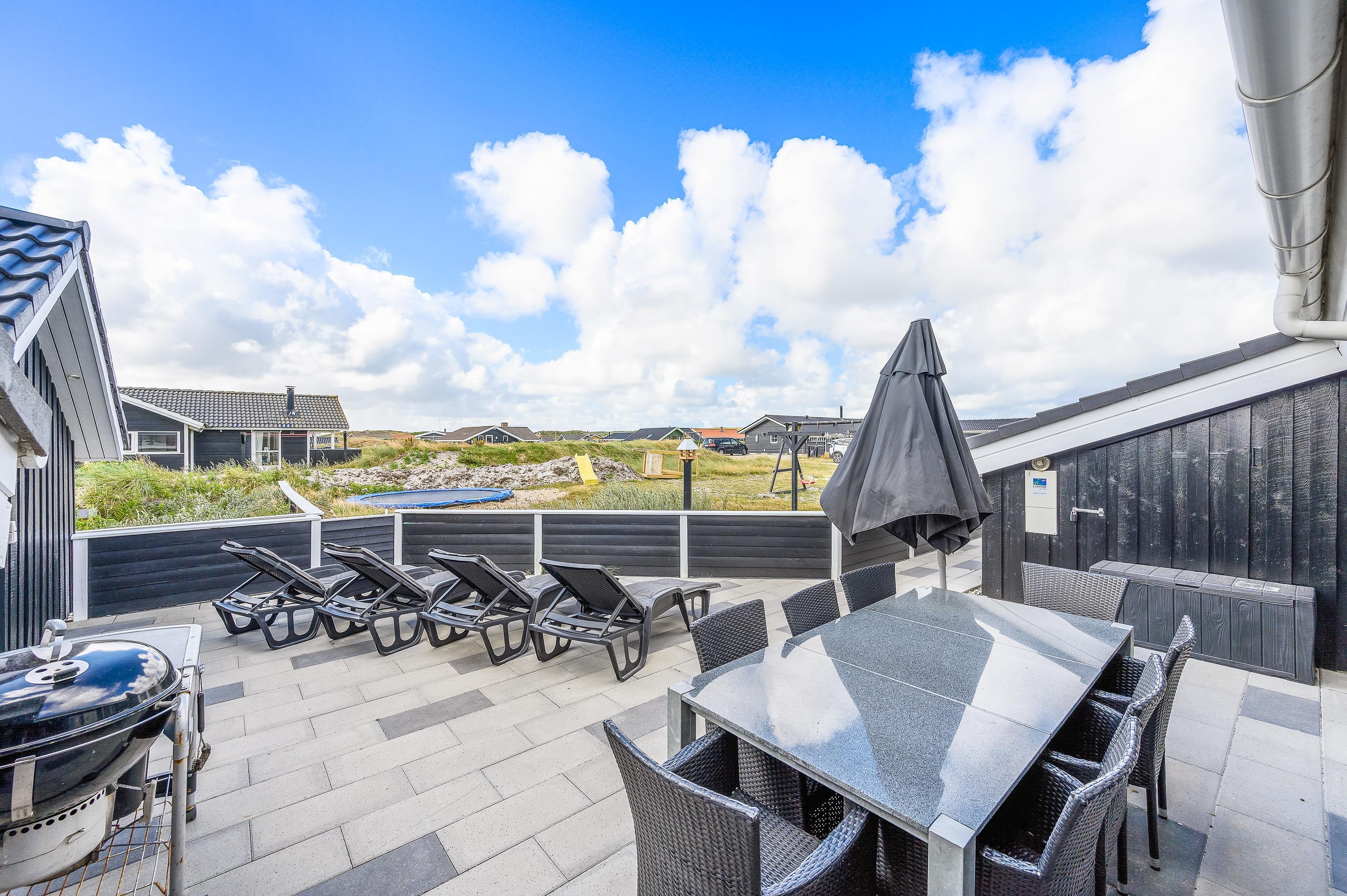 Sommerhuset ligger kun 400 meter fra havet, og med både lukket og overdækket terrasse, er det altid muligt at sidde ude. Der er intet som en grill-aften på terrassen, med havets brusen i baggrunden, og med børnene legende i sandkassen.