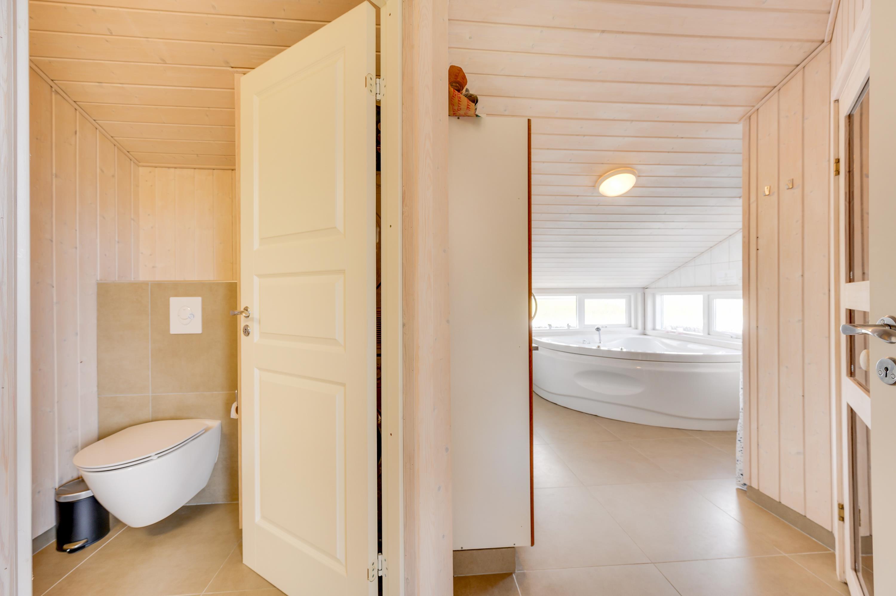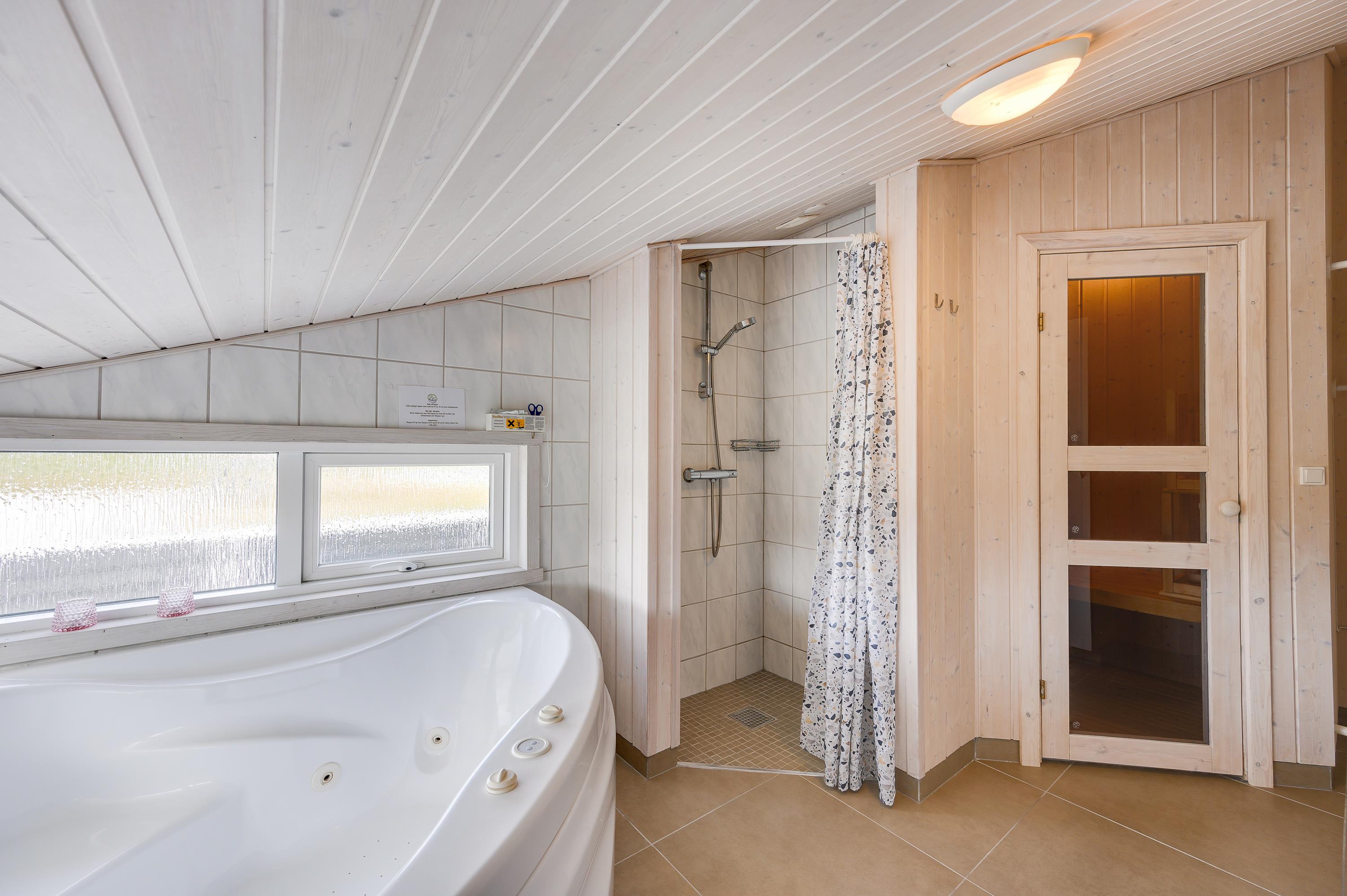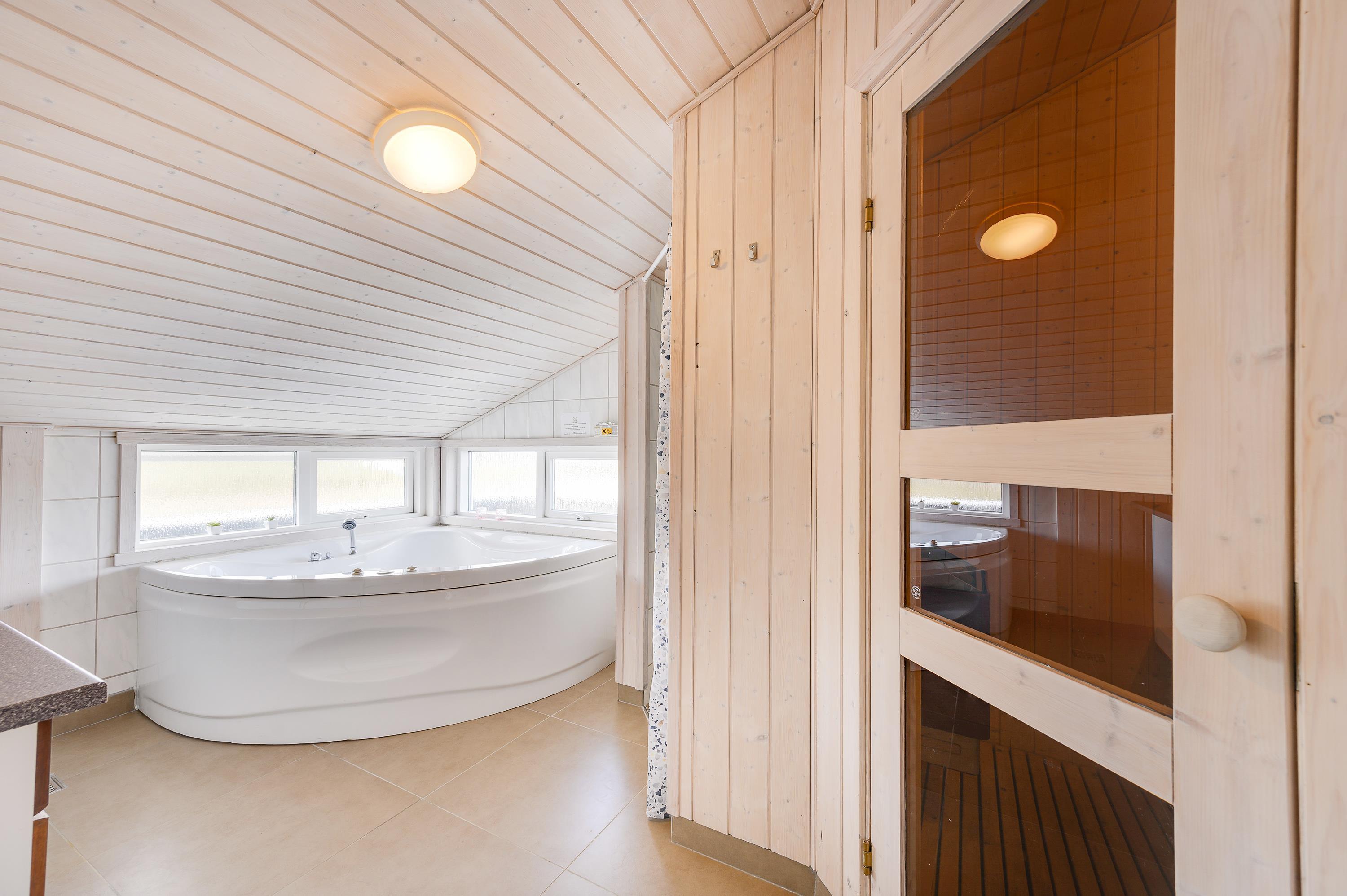 Dette feriehus er egnet til den store familie, der ønsker at holde ferien sammen. Der er hele 2 badeværelser med klinkegulv og gulvvarme. Der er både vaskemaskine og tørretumbler. I det ene badeværelse er der desuden spa og sauna, hvor I rigtig kan slappe af – måske efter en lang spadseretur langs stranden? Den energibesparende varmepumpe hjælper med at holde energiforbruget nede.