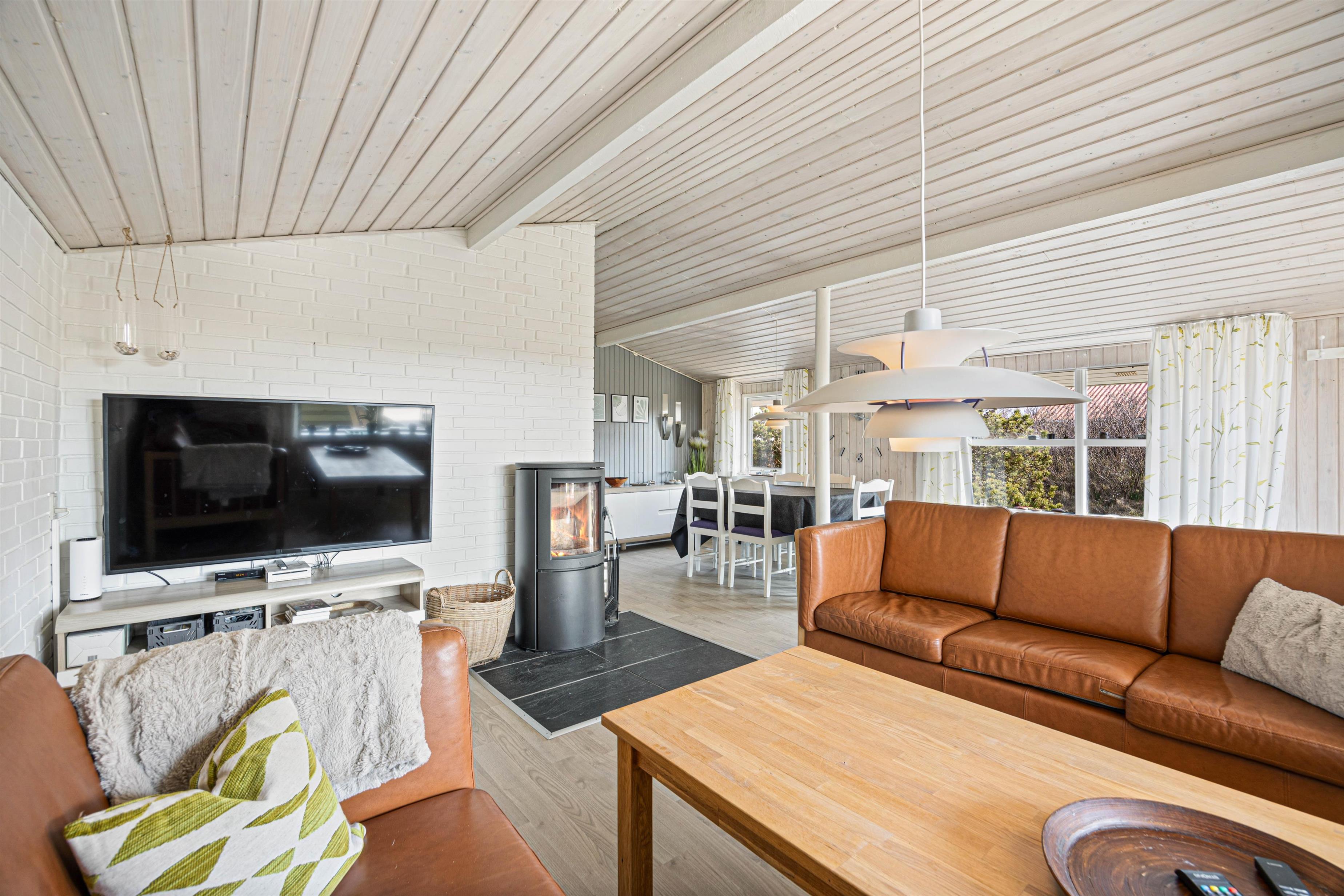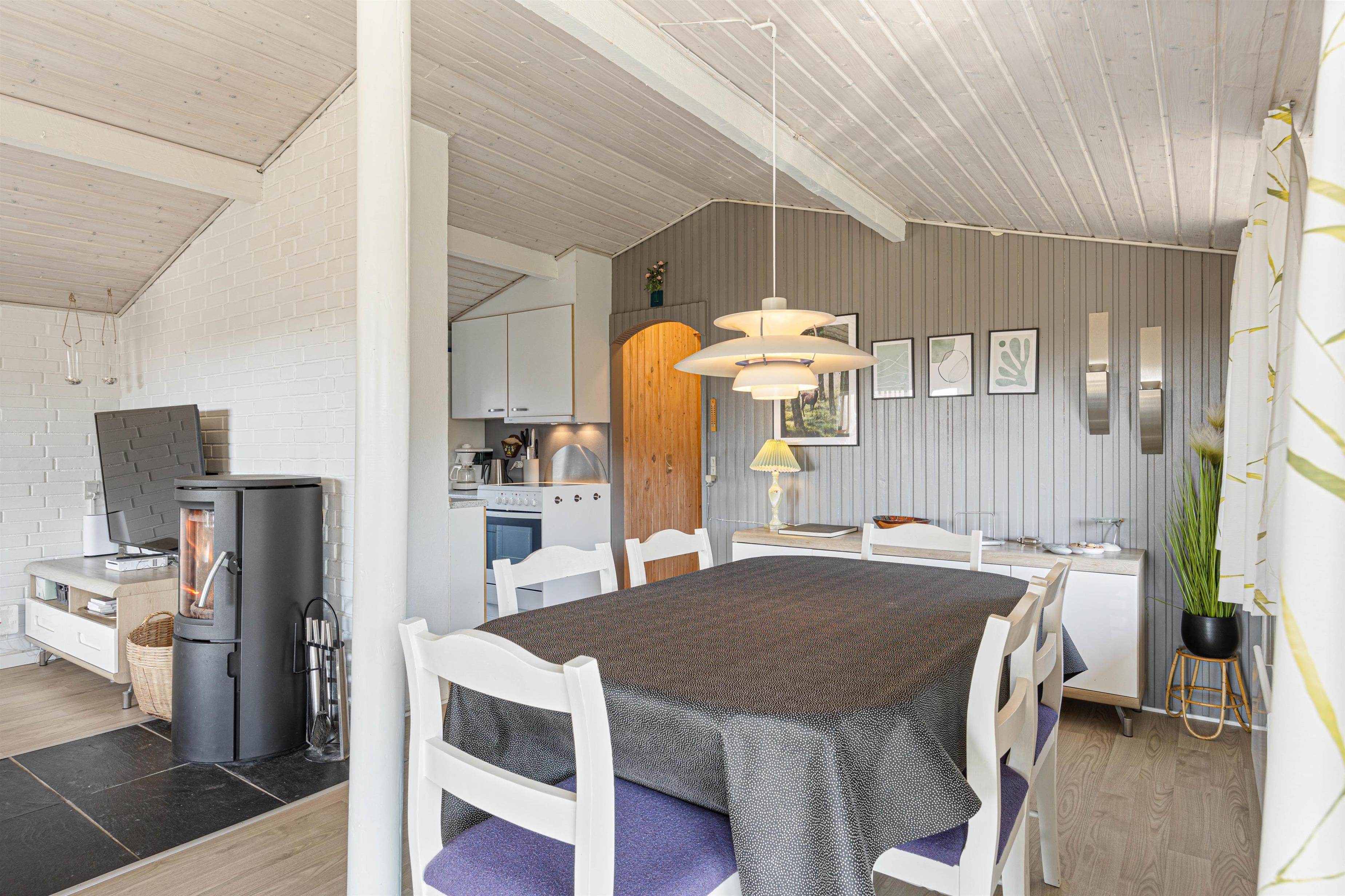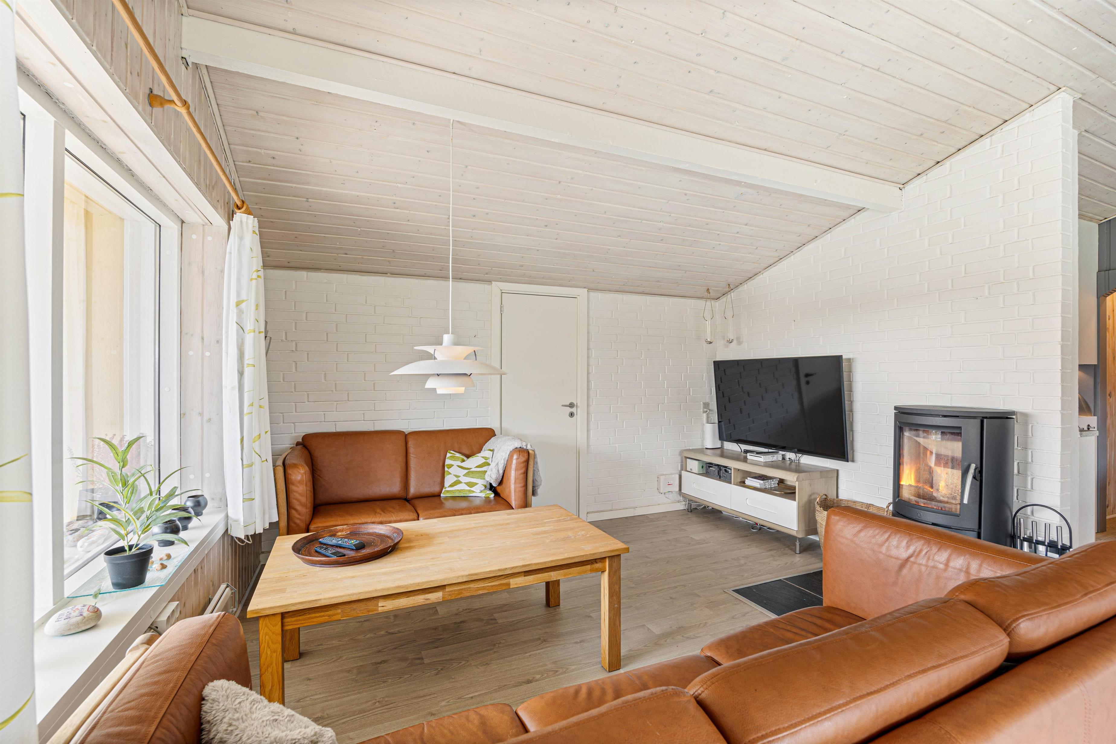Velkommen indenfor i dette klassiske sommerhus på 73 m2. Her er et åbent opholdsrum, som kombinerer køkken, spisestue og stue. Her er komfortable møbler og en skøn brændeovn, der spreder varme og hygge. Her er plads til alt fra fællesmadlavning i køkkenet til brætspilsaftner og afslappende stunder i sofaen. Sid her med en god bog, en friskbrygget kop kaffe og mærk brændeovnens varme brede sig - dét er ægte sommerhushygge. Her er desuden en Chromecast, således I har mulighed for at se jeres yndlingsprogrammer, når det passer og en energisparende luft-til-luft varmepumpe, der sørger for behagelig varme hele året.