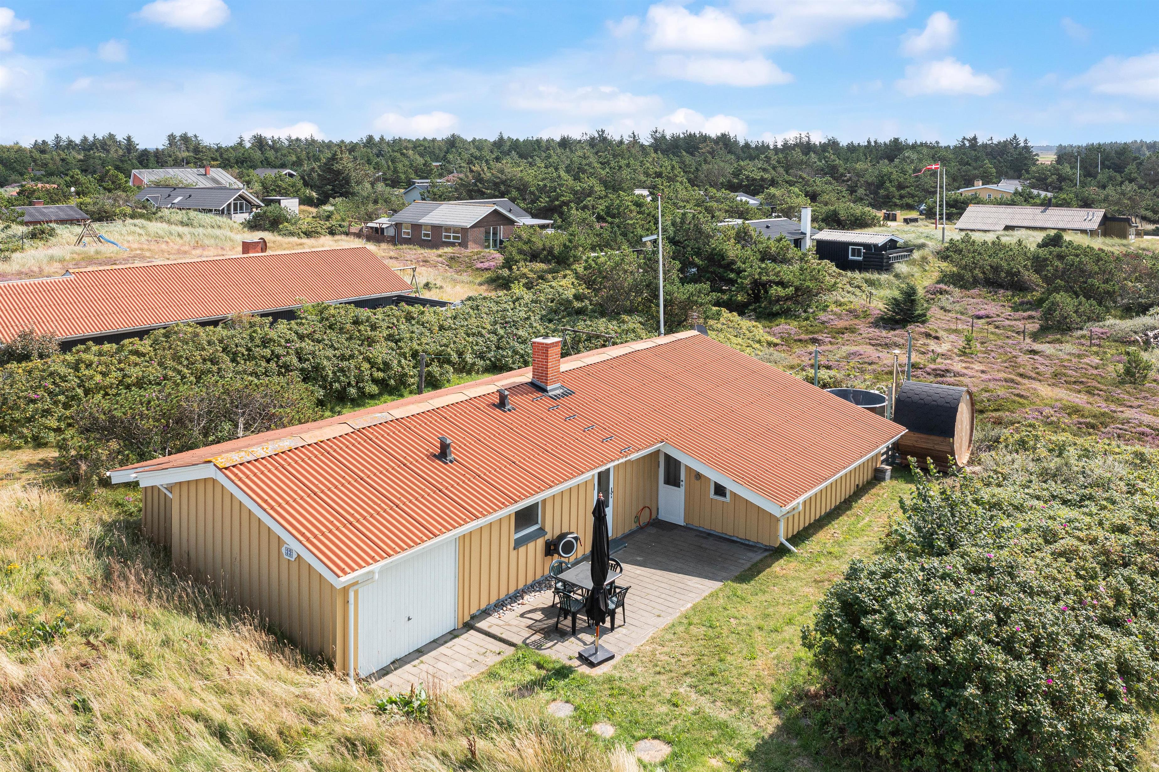 I bunden af en lukket lomme finder I dette fine 2-stjernede sommerhus på Dortheasvej 33. Feriehuset er holdt i klassisk stil, hyggeligt indrettet og her er plads til 6 gæster. Udenfor finder I både vildmarksbad, udesauna og udebruser på en fin delvist overdækket og lukket terrasse, hvor hundene kan gå frit. Herfra er der hverken langt til Vesterhavet eller den lokale købmand.