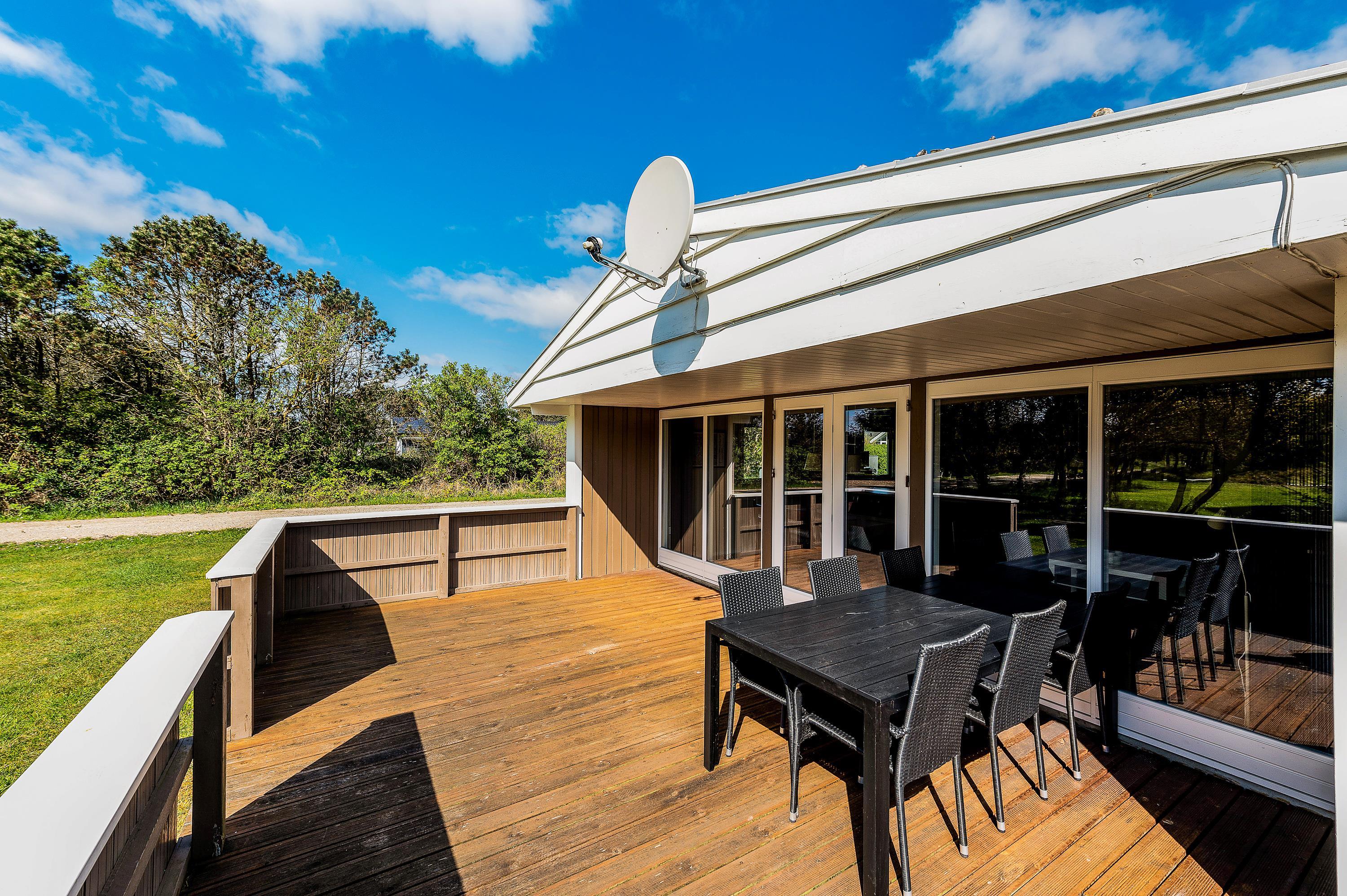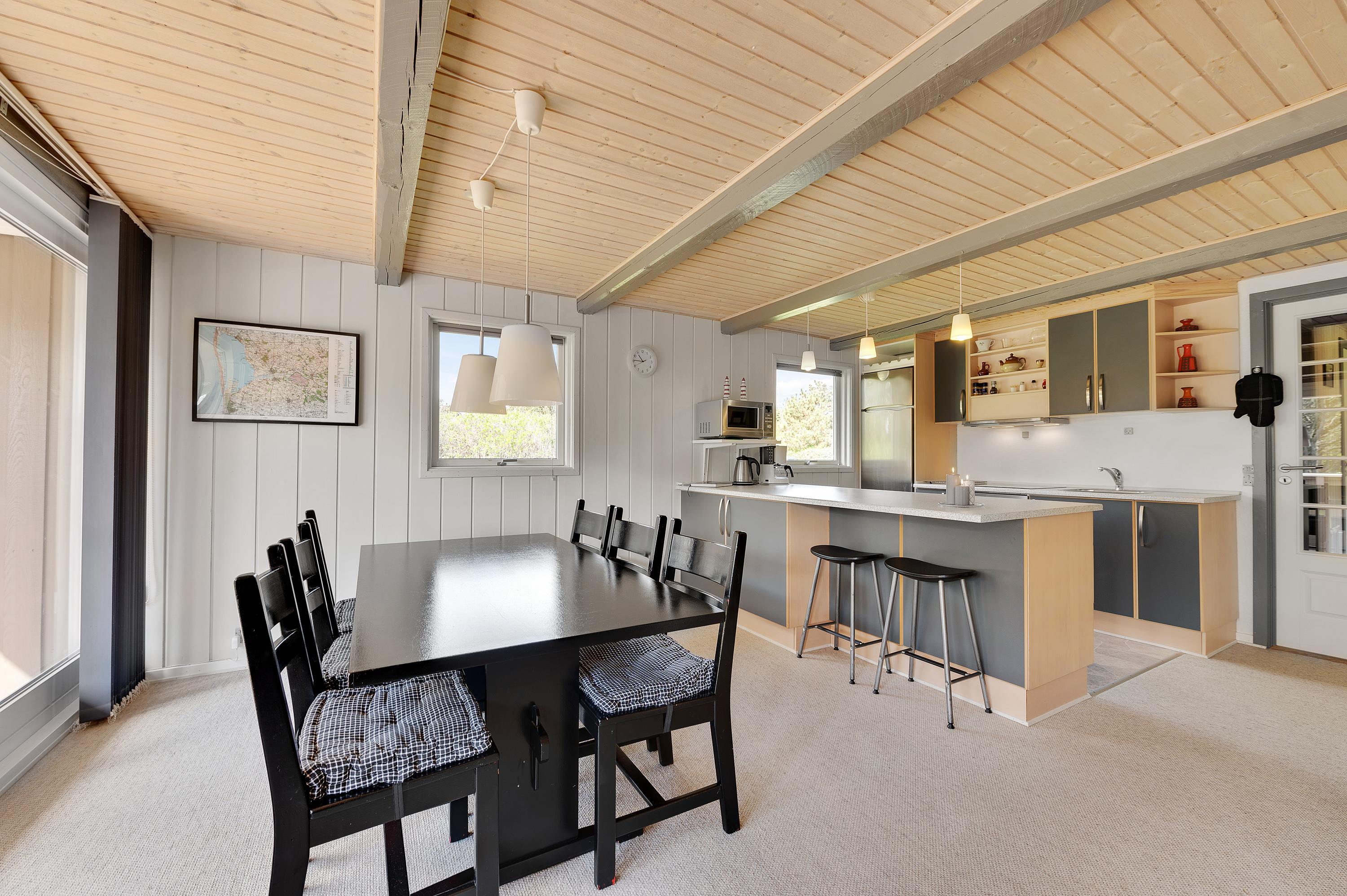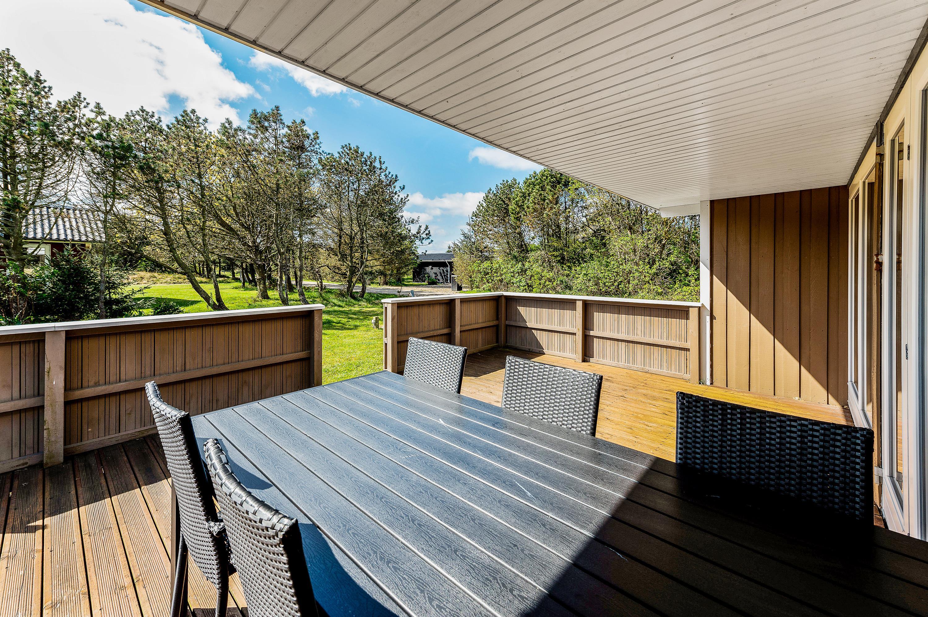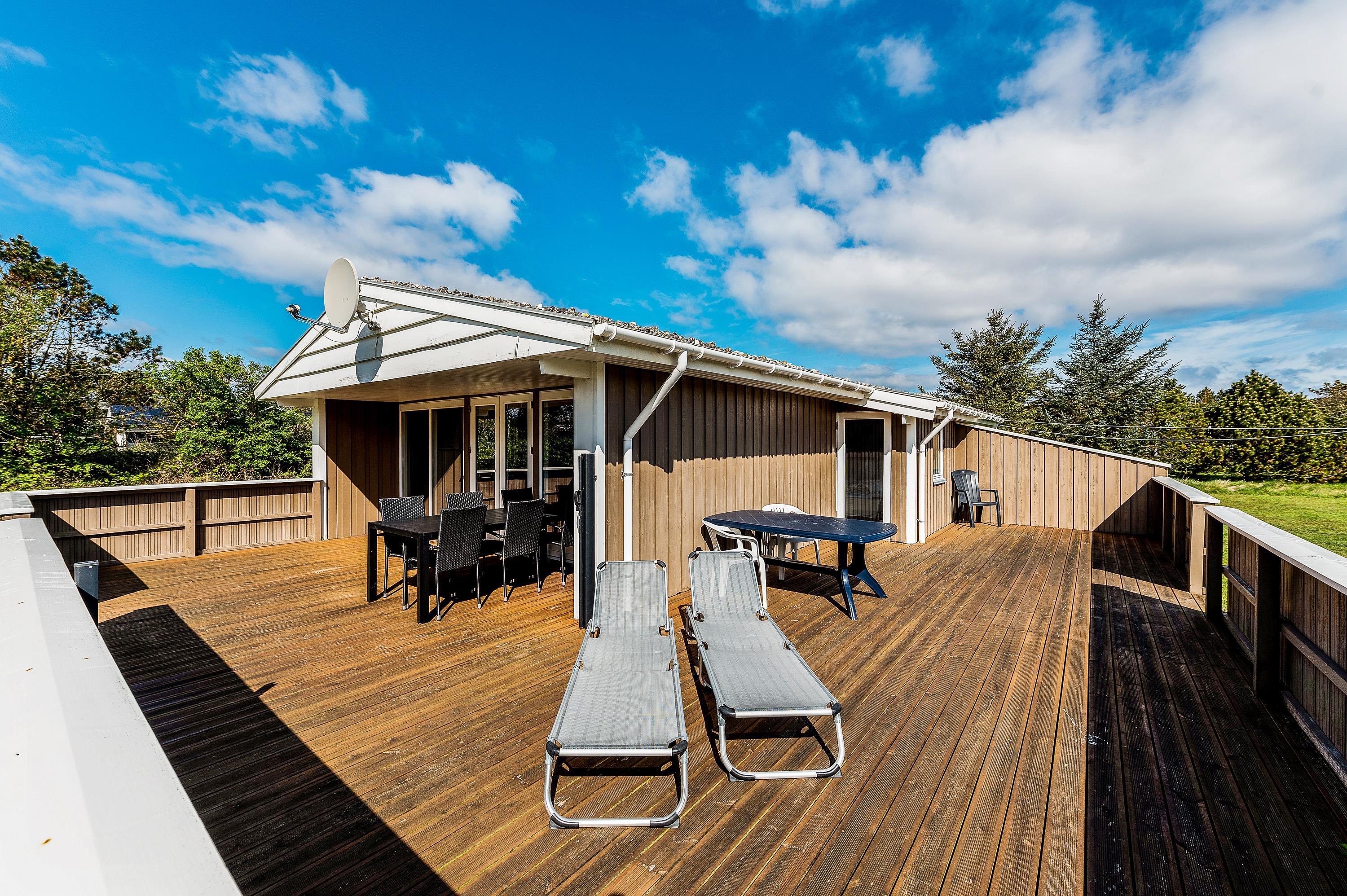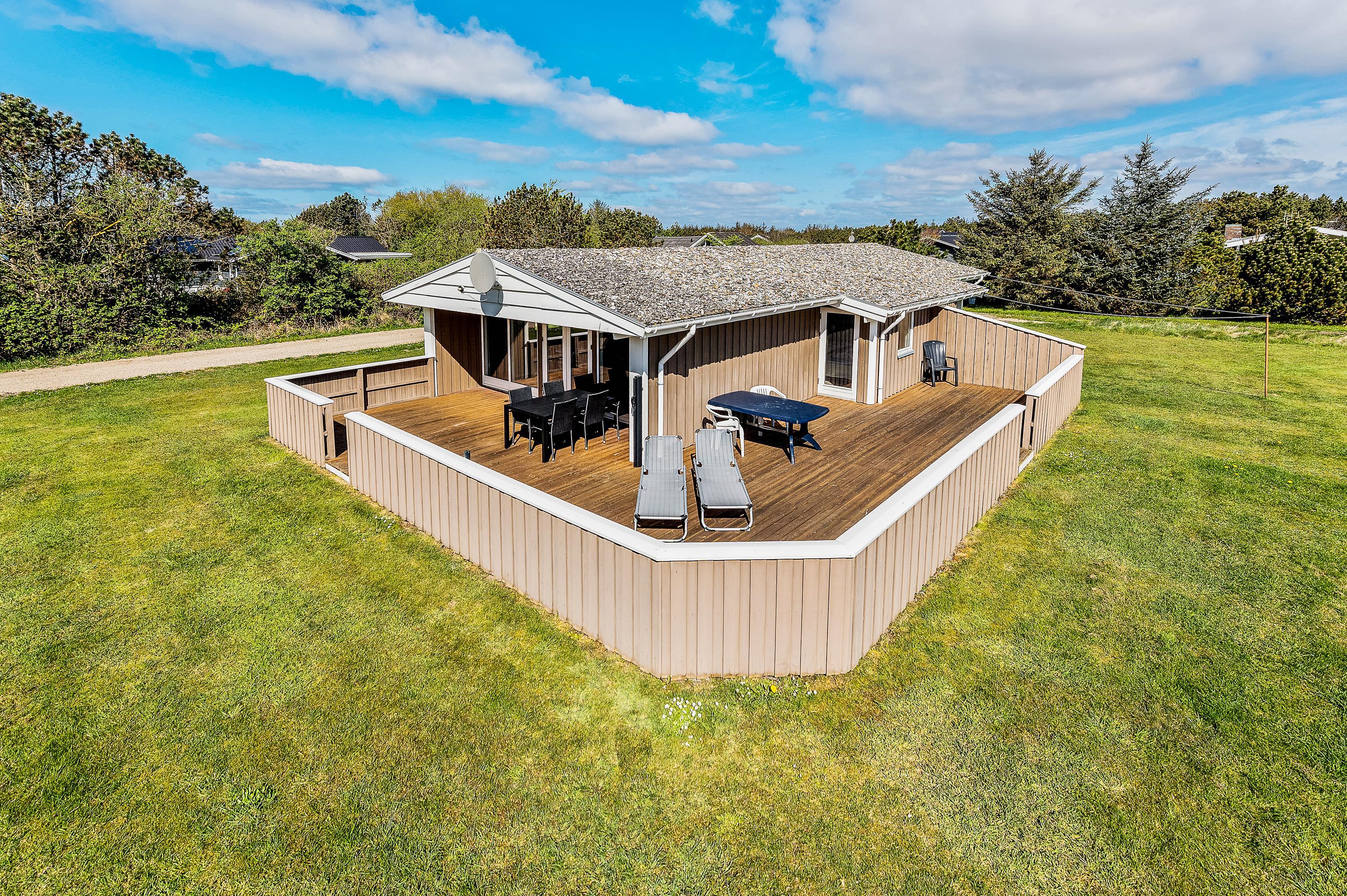 Her kan I holde en hyggelig familieferie i et meget velindrettet feriehus med lys og venlig indretning. Sommerhuset har 2 gode, store dobbeltværelser med masser af skabsplads samt et fint værelse med køjesenge. Feriehuset har en rolig beliggenhed på en afskærmet grund med plads til leg og boldspil i den smukke natur i Vestjylland ved Vesterhavet.