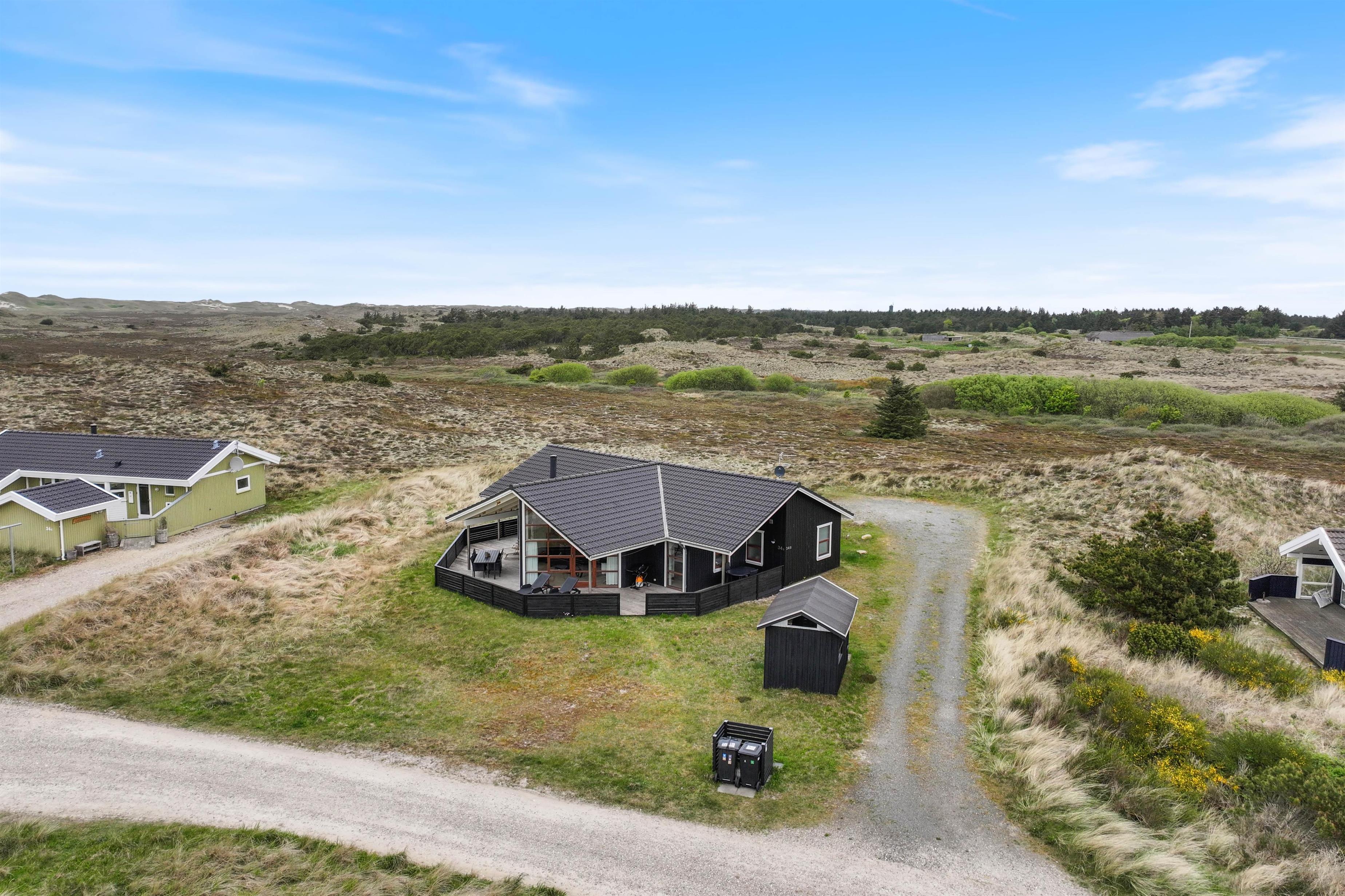 På Bjerregårdsvej 34B finder du et dejligt, velindrettet sommerhus til 6 personer, ideelt til familien eller et par venner, som ønsker at holde ferie sammen. Den lyse indretning og de brede vinduespartier med sprosser bidrager til at sætte stemningen i top. Wellness i form af sauna og spabad kan I benytte, når det passer jer. Den naturskønne beliggenhed ud til heden giver mulighed for en dejlig ro og fine naturoplevelser.