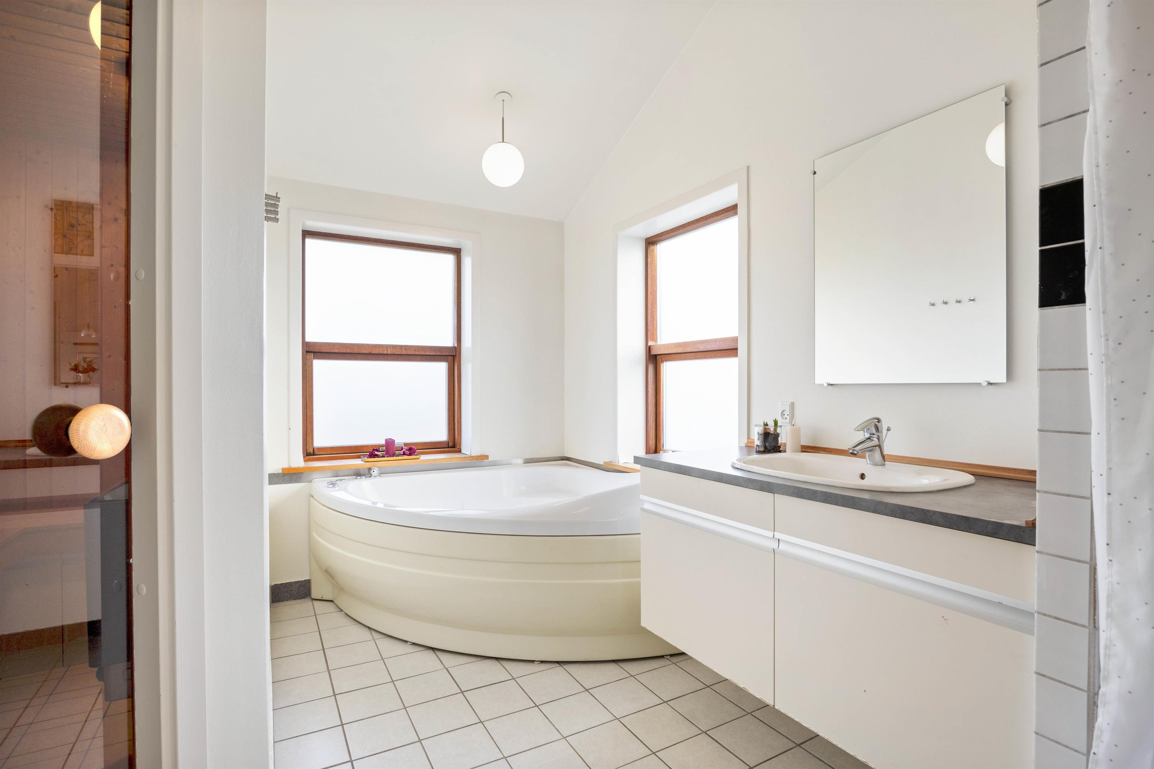I forbindelse med det største af de 2 badeværelser med gulvvarme er spabad og sauna, så I kan afholde jeres egen lille wellnessaften i sommerhuset. Desuden er der vaskemaskine og tørretumbler, så I kan få frisket håndklæderne op undervejs. De 3 soveværelser er placeret hver for sig, så I kan sove uforstyrret i de komfortable dobbeltsenge. Bemærk, at den friske vesterhavsluft gør noget godt for nattesøvnen. Den energibesparende varmepumpe hjælper til med en behagelig temperatur i sommerhuset under jeres ophold.