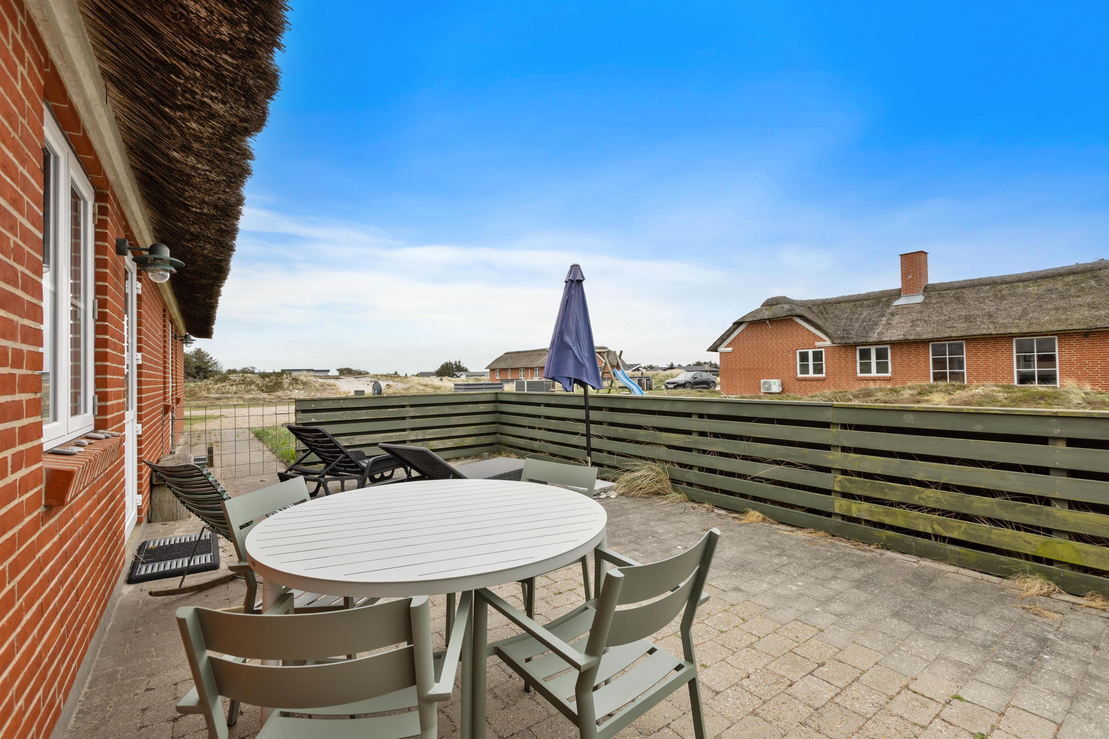 Fra stuen kommer I ud på den lukkede terrasse – perfekt, hvis hundene skal løbe frit, mens I slapper af på liggestolene og samtidig kan holde øje med børnene, der leger på gyngestativet eller prøver rutsjebanen. Den anden terrasse er åben og giver en flot udsigt over hede og klitter. Her kan I finde sol eller læ, alt efter vind og vejr, og om aftenen kan I tænde op til lækker grillmad.