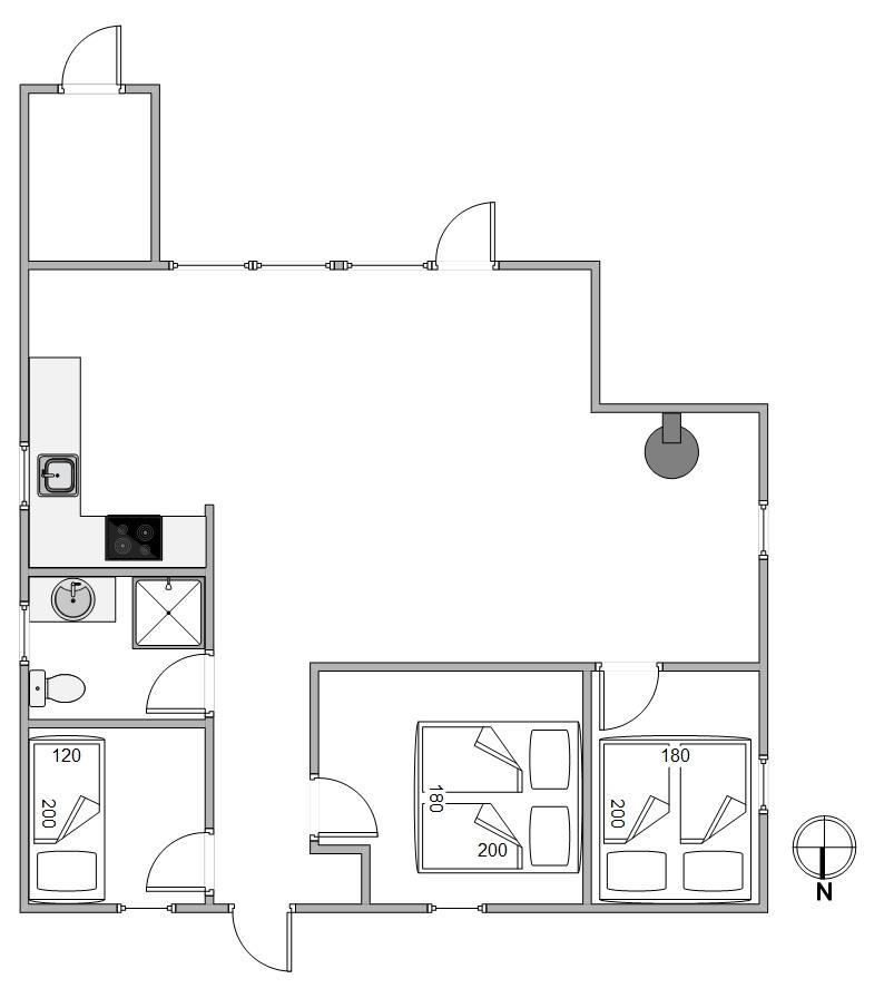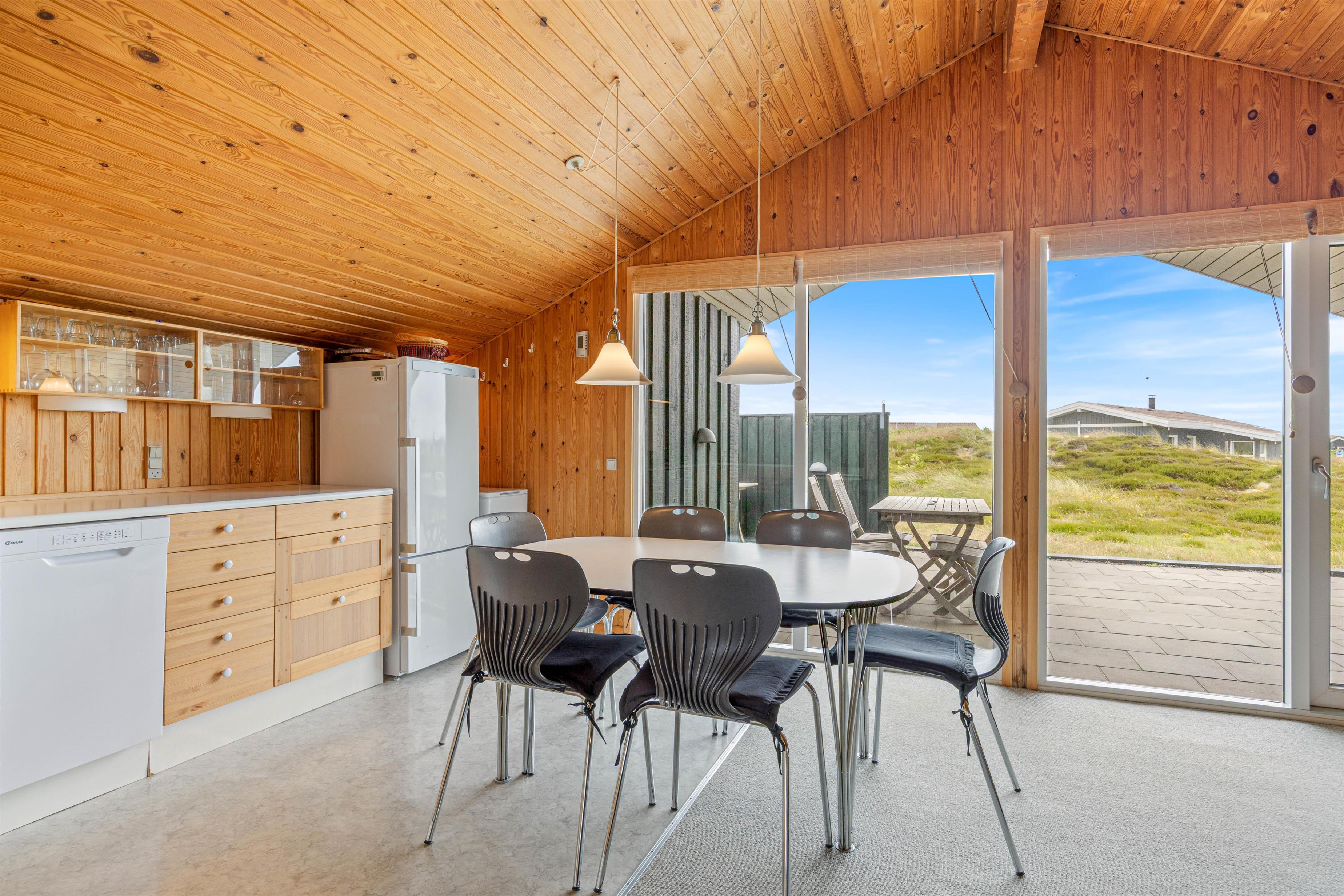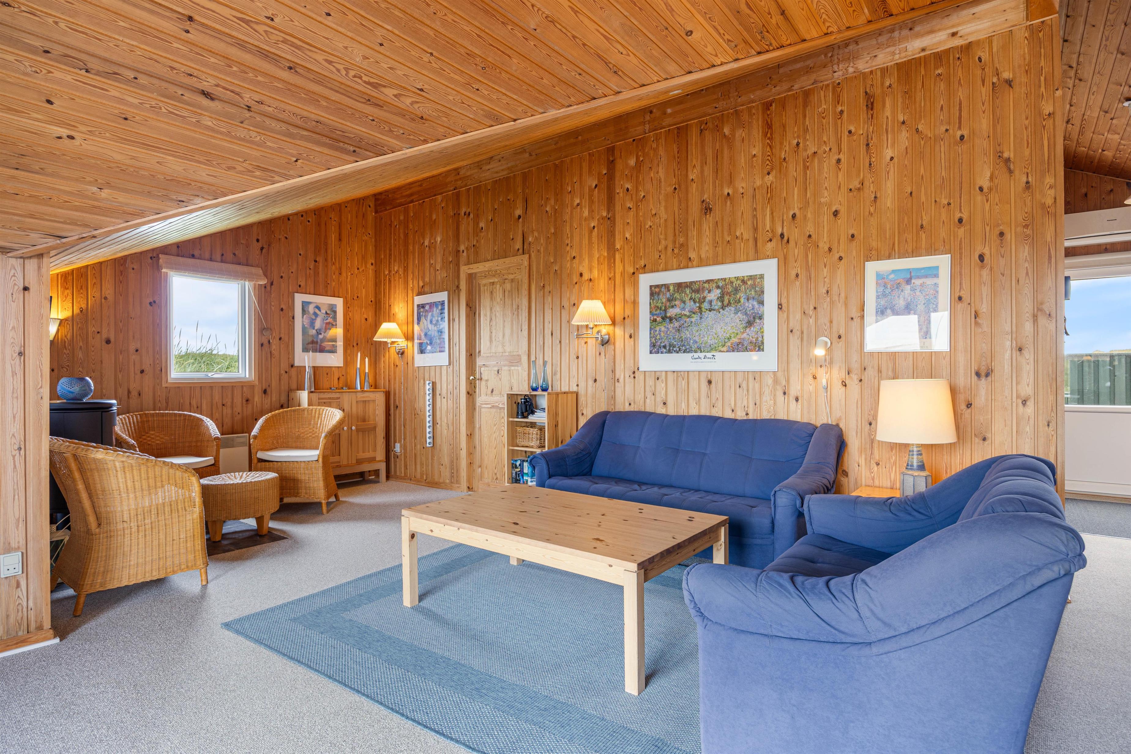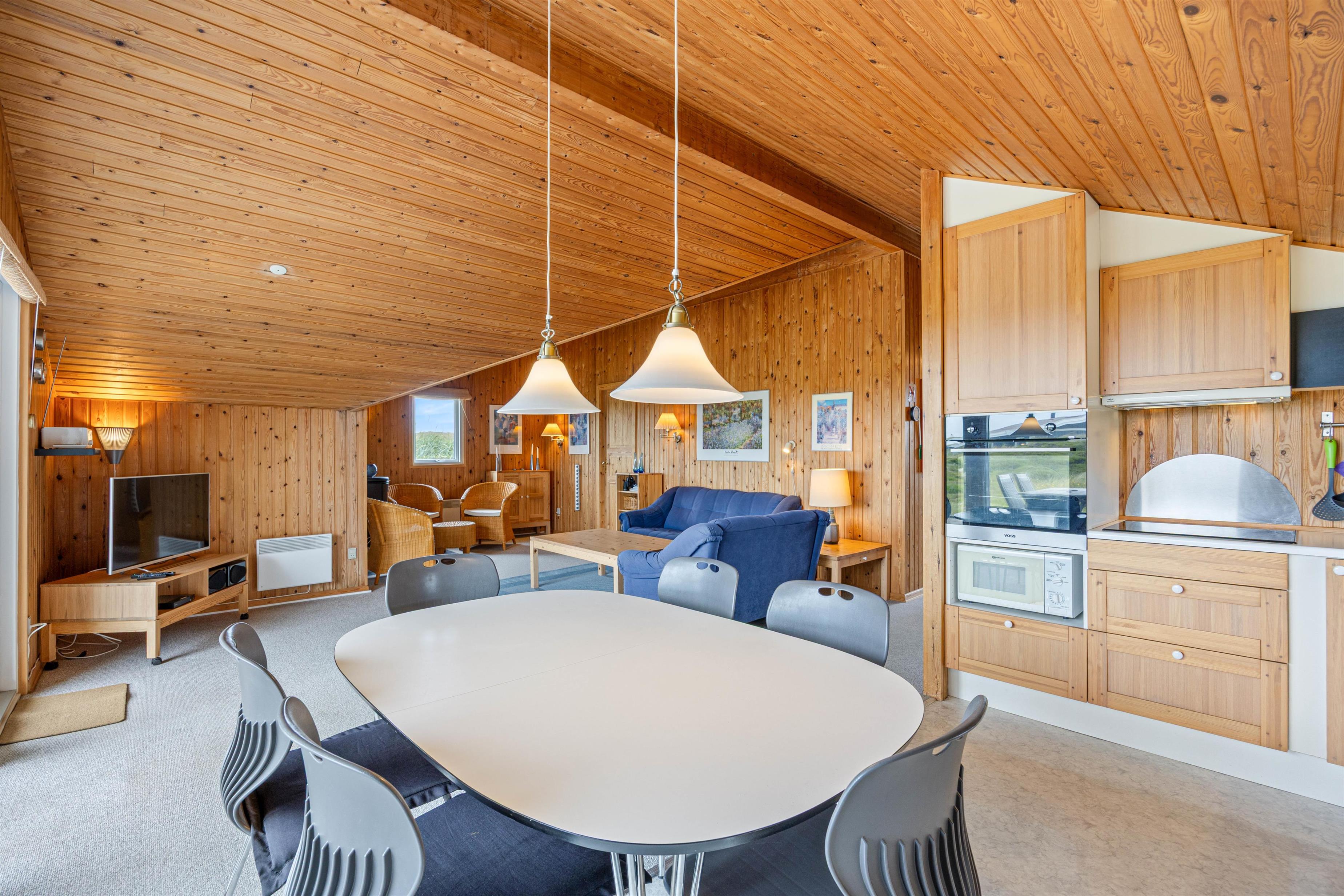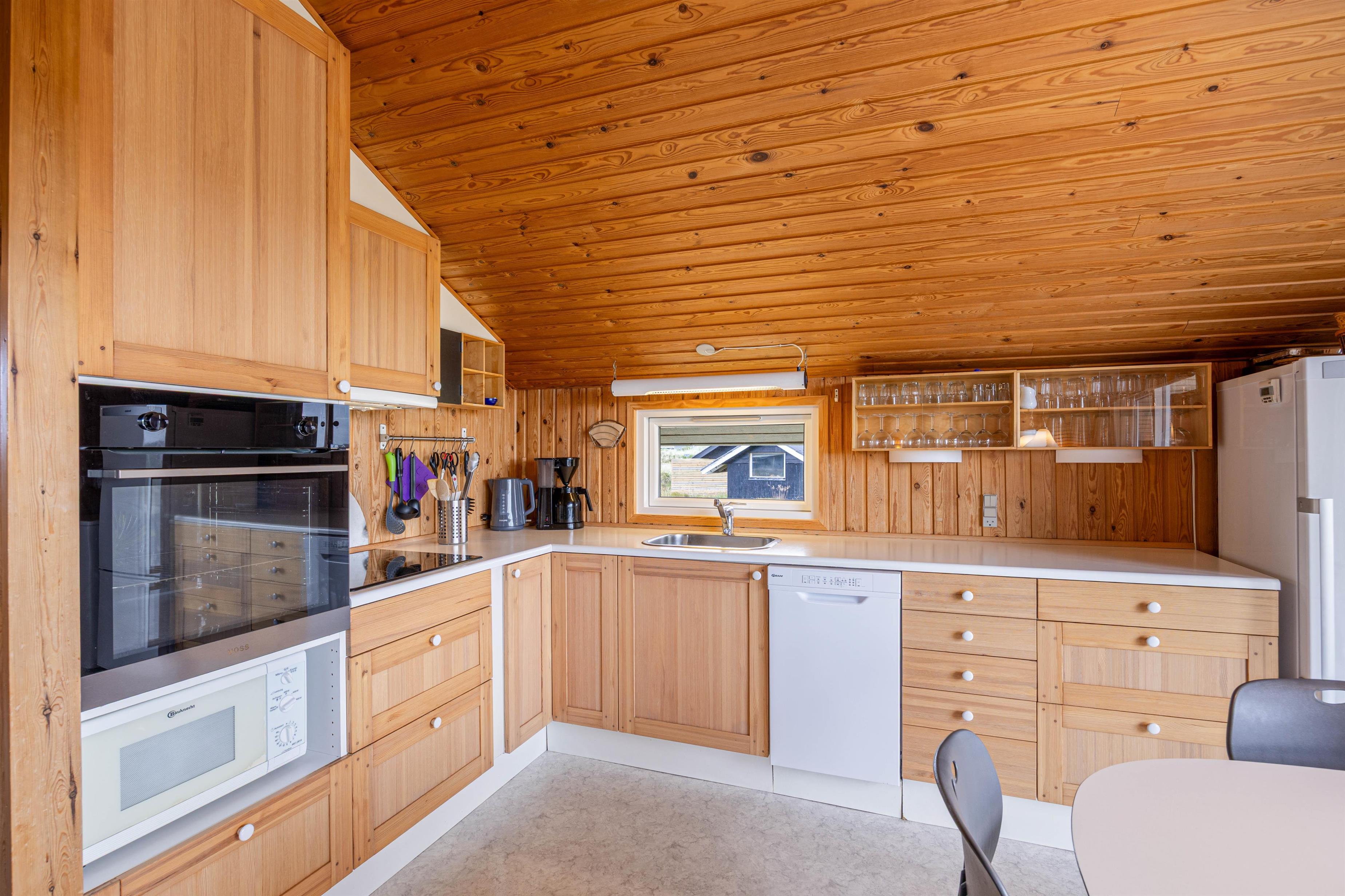 Det åbne køkken- og stueområde indbyder til fælles madlavning og masser af samvær. Efter middagen klarer opvaskemaskinen resten for jer, mens I kan læne jer tilbage på sofaen med et glas vin. I de stormende og kølige årstider sørger brændeovnen ikke kun for varme, men tilfører også en ægte feriestemning.
