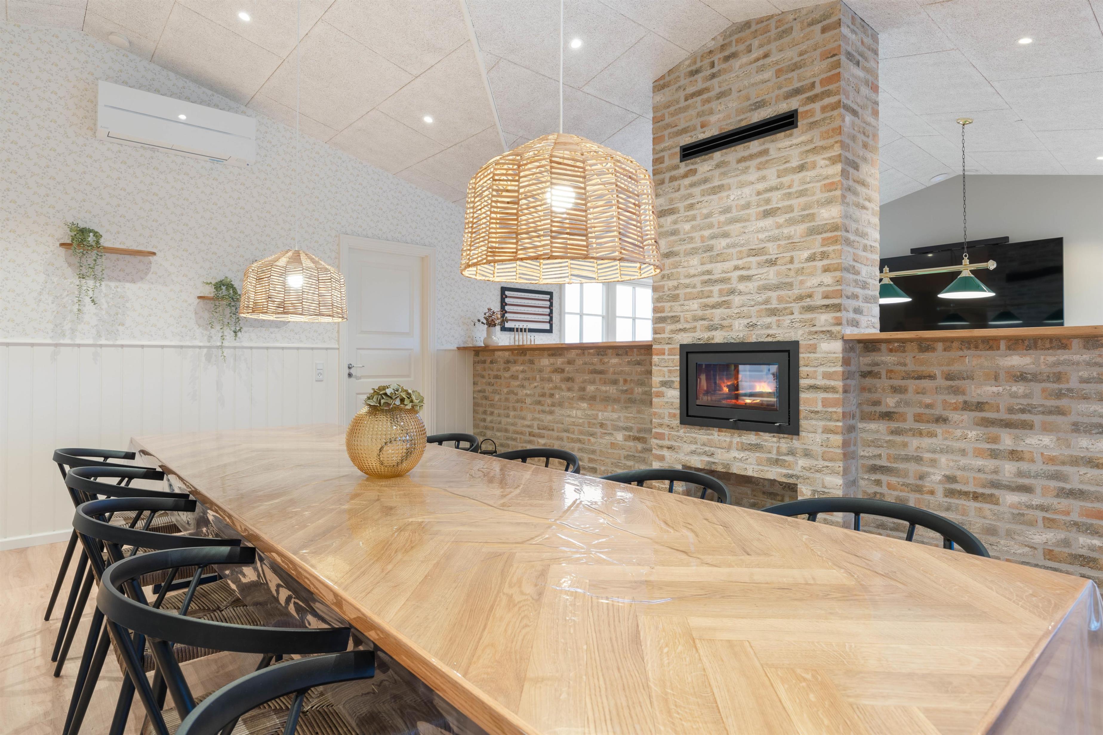 Det rummelige og charmerende køkken/alrum er sommerhusets hjerte. En lys og venlig indretning med brændeovnen midt i lokalet giver maksimal feriestemning. I det åbne køkken med kogeø kan I sammen tilberede lækre måltider, som indtages ved spisebordet. En snak over opvasken kan involvere både dem i køkkenet og dem, som endnu sidder ved bordet. Her kan I slutte af med et brætspil, før I trækker jer tilbage med en kop kaffe i sofagruppen. Skal konkurrencegenet plejes, kan I også tage et slag bordtennis efter middagen.