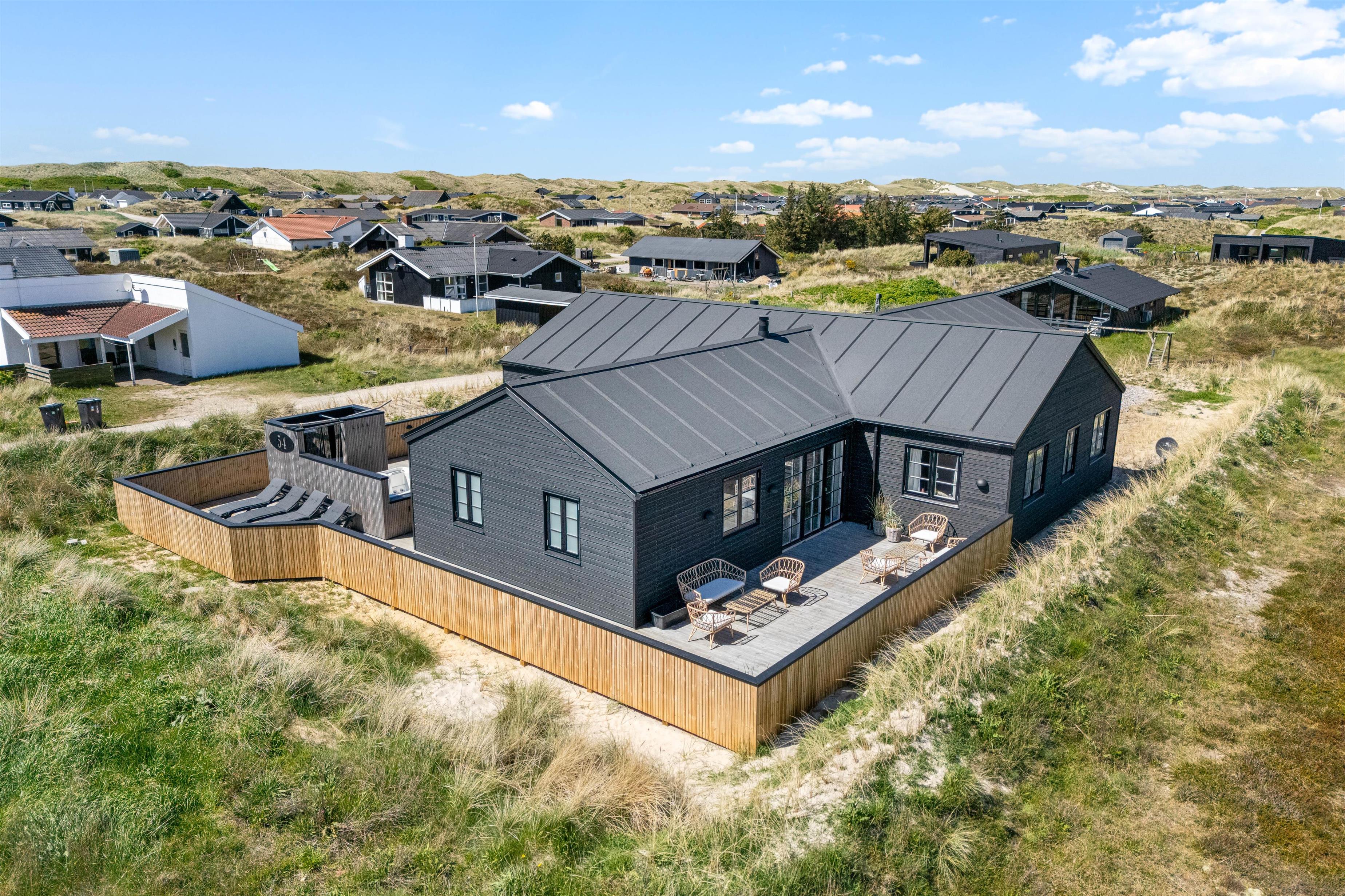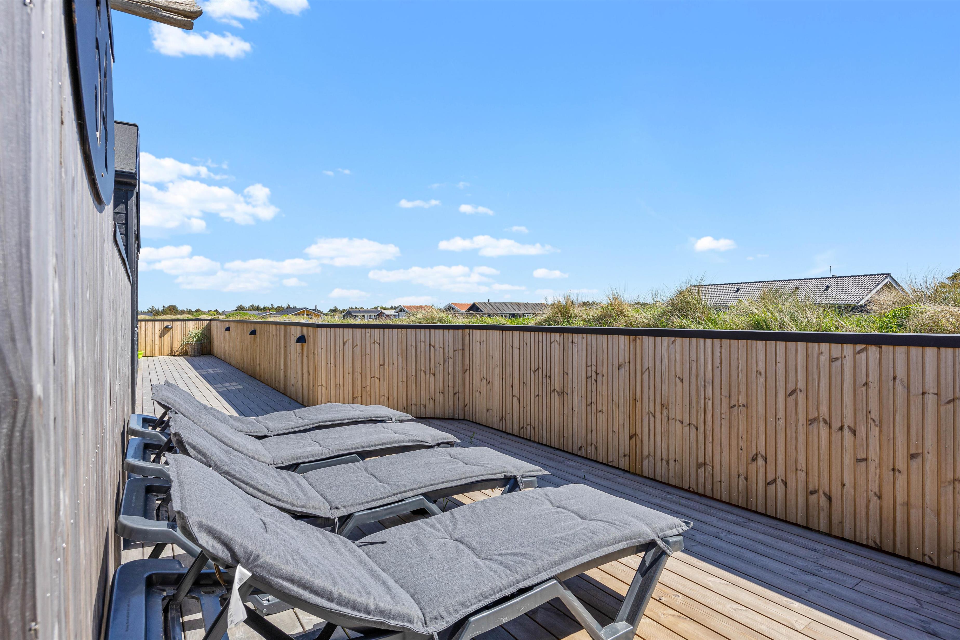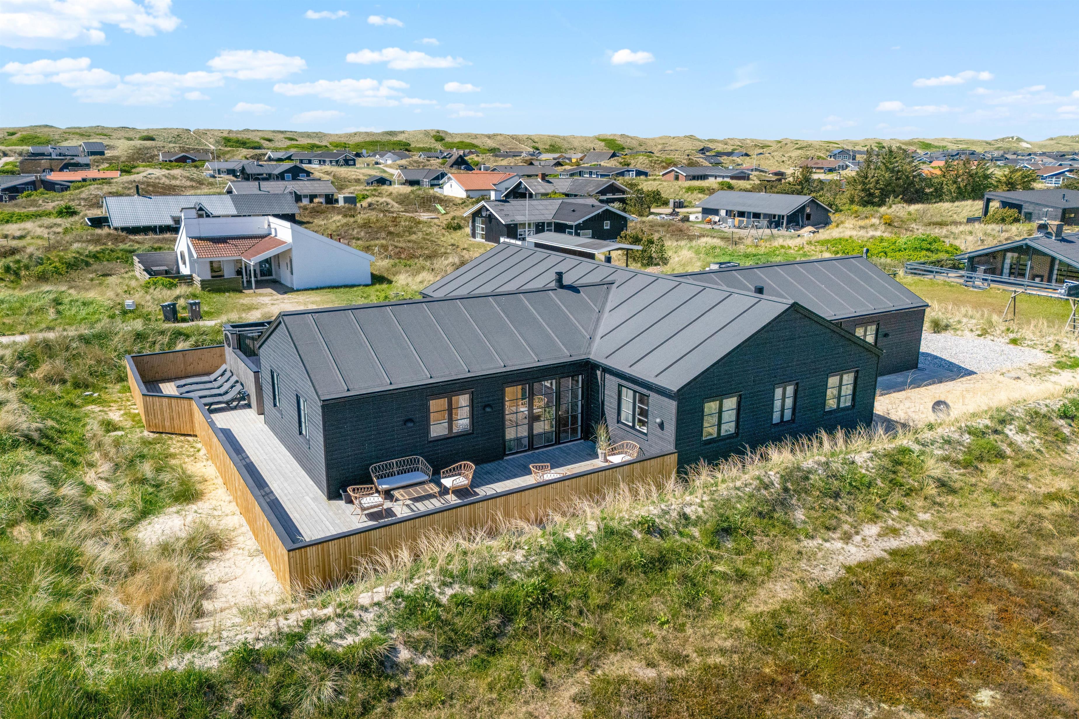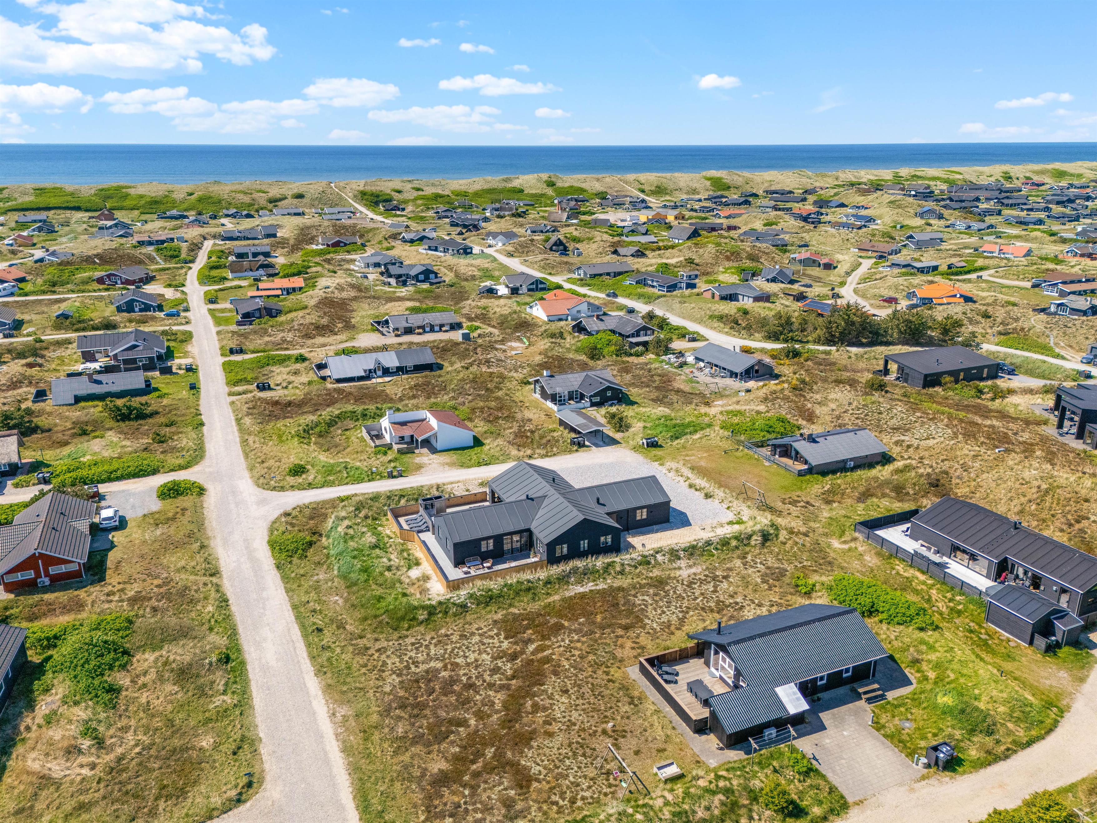 På Dortheasvej 54 finder du dette skønne, moderne sommerhus med 6 dobbeltværelser, som alle har eget toilet og bad. Med bordtennisbord og udespa kan I holde en aktiv ferie i sommerhuset, der er bygget i 2023. Og med kun 450 meter til Vesterhavet vil I meget hurtigt få den helt rigtige feriefornemmelse. Ideelt til familie og venner – og hunden er også velkommen. Der er ladestik til el-bil ved sommerhuset.