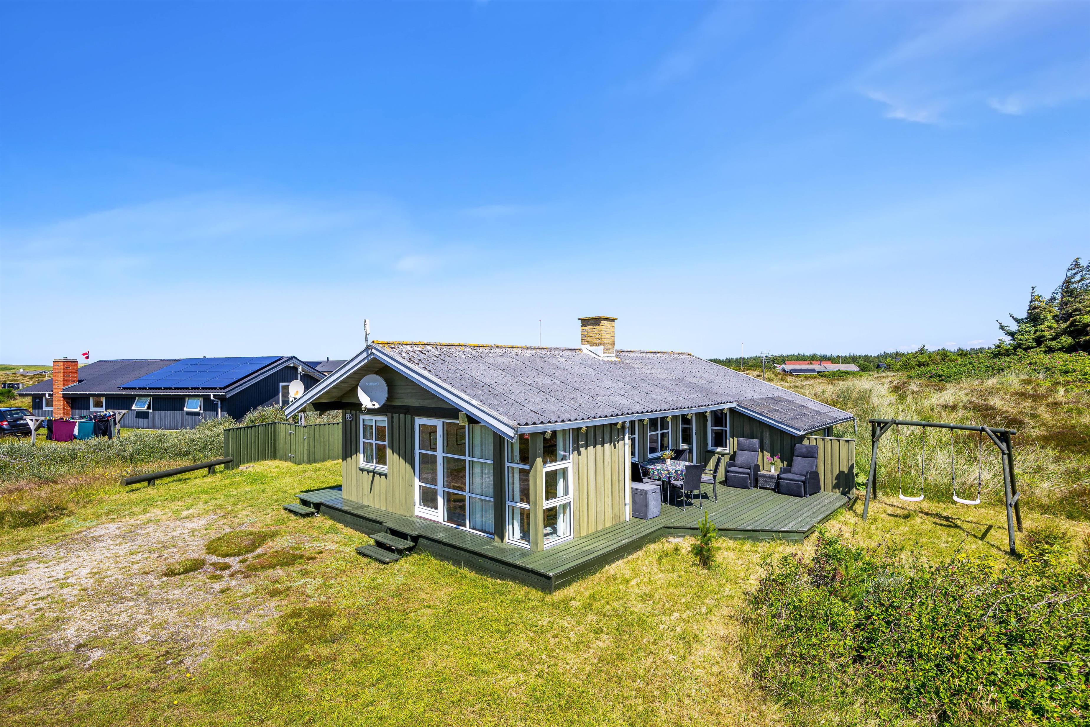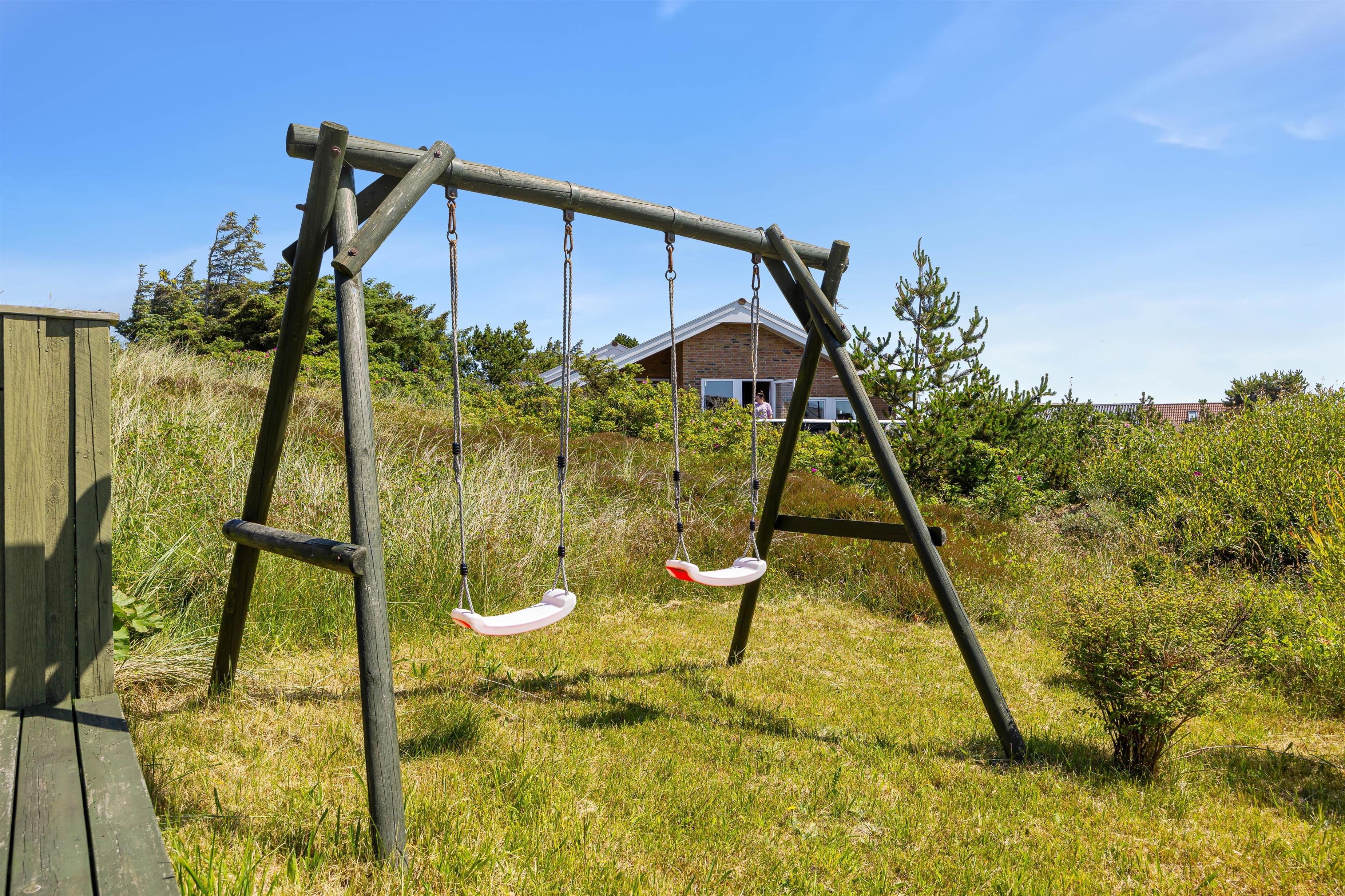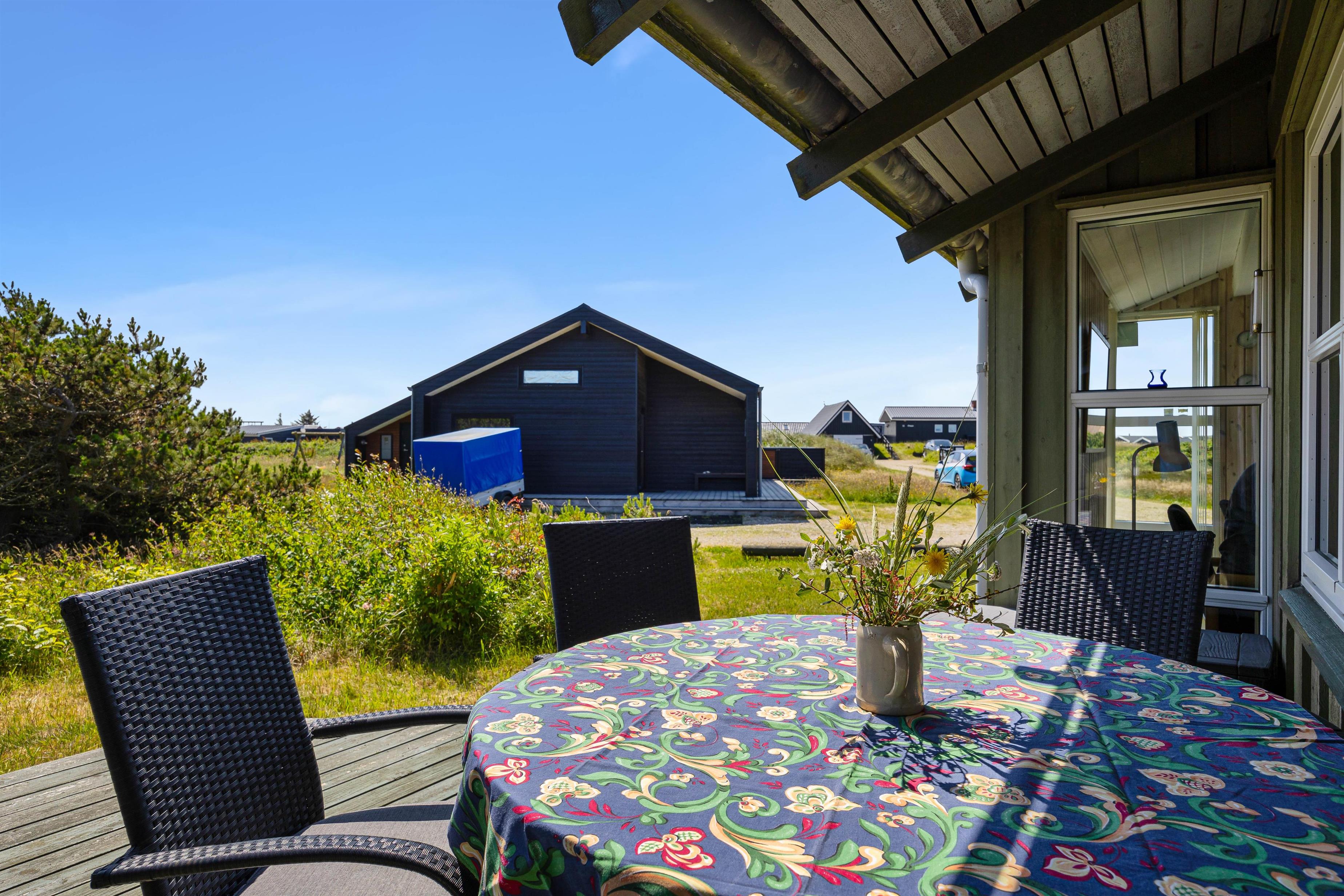 Mærk nærheden til Vesterhavet på den ca. 1.250 kvadratmeter store naturgrund med lyng og klitgræs. Der er terrasser på flere sider af feriehuset, så du altid kan finde en rolig plet i den friske havluft, afhængigt af solens position og vindens retning. Tag eventuelt frokosten med op i klitterne og nyd den midt i det skønne landskab.