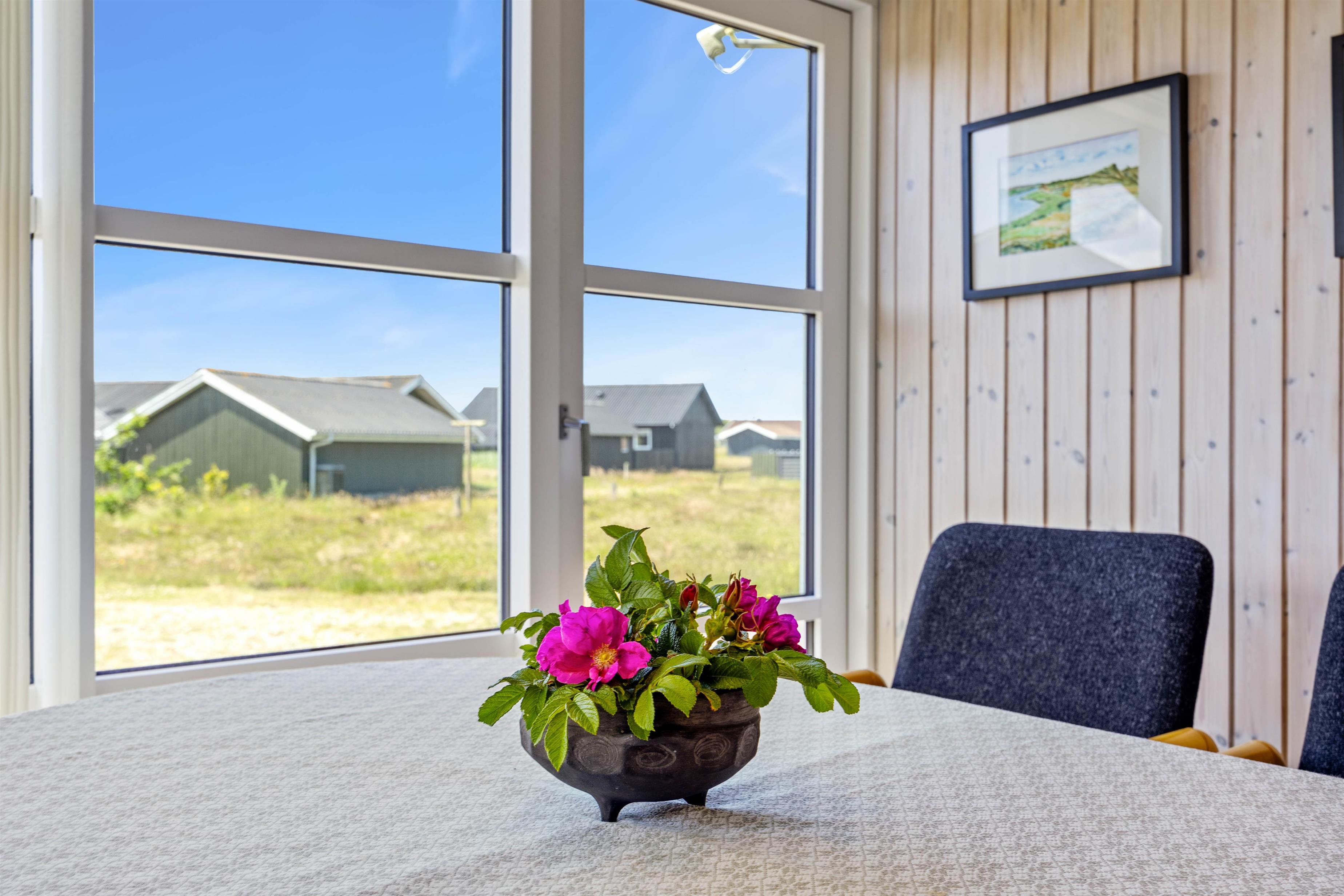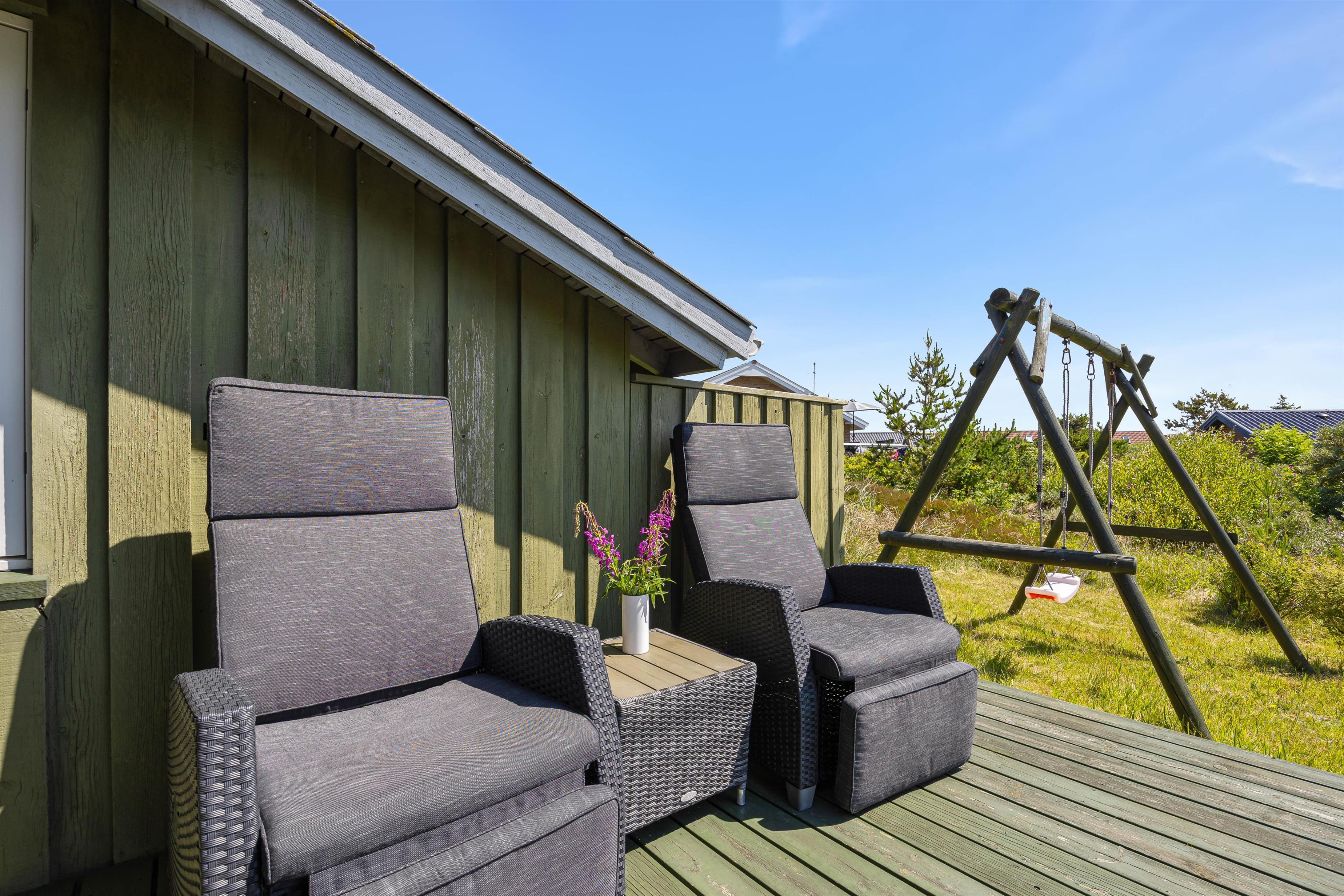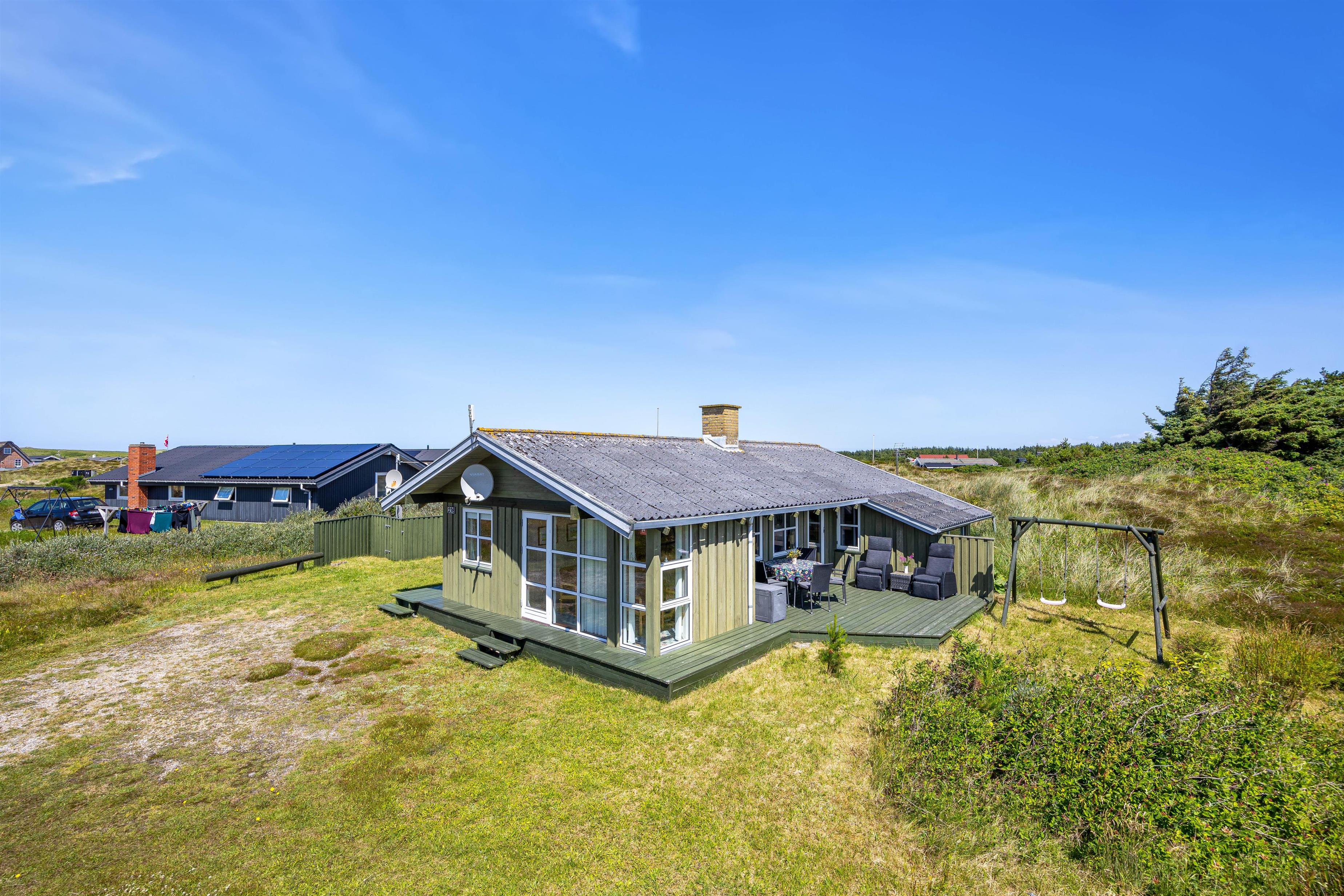Mærk nærheden til Vesterhavet på den ca. 1.250 kvadratmeter store naturgrund med lyng og klitgræs. Der er terrasser på flere sider af feriehuset, så du altid kan finde en rolig plet i den friske havluft, afhængigt af solens position og vindens retning. Tag eventuelt frokosten med op i klitterne og nyd den midt i det skønne landskab.