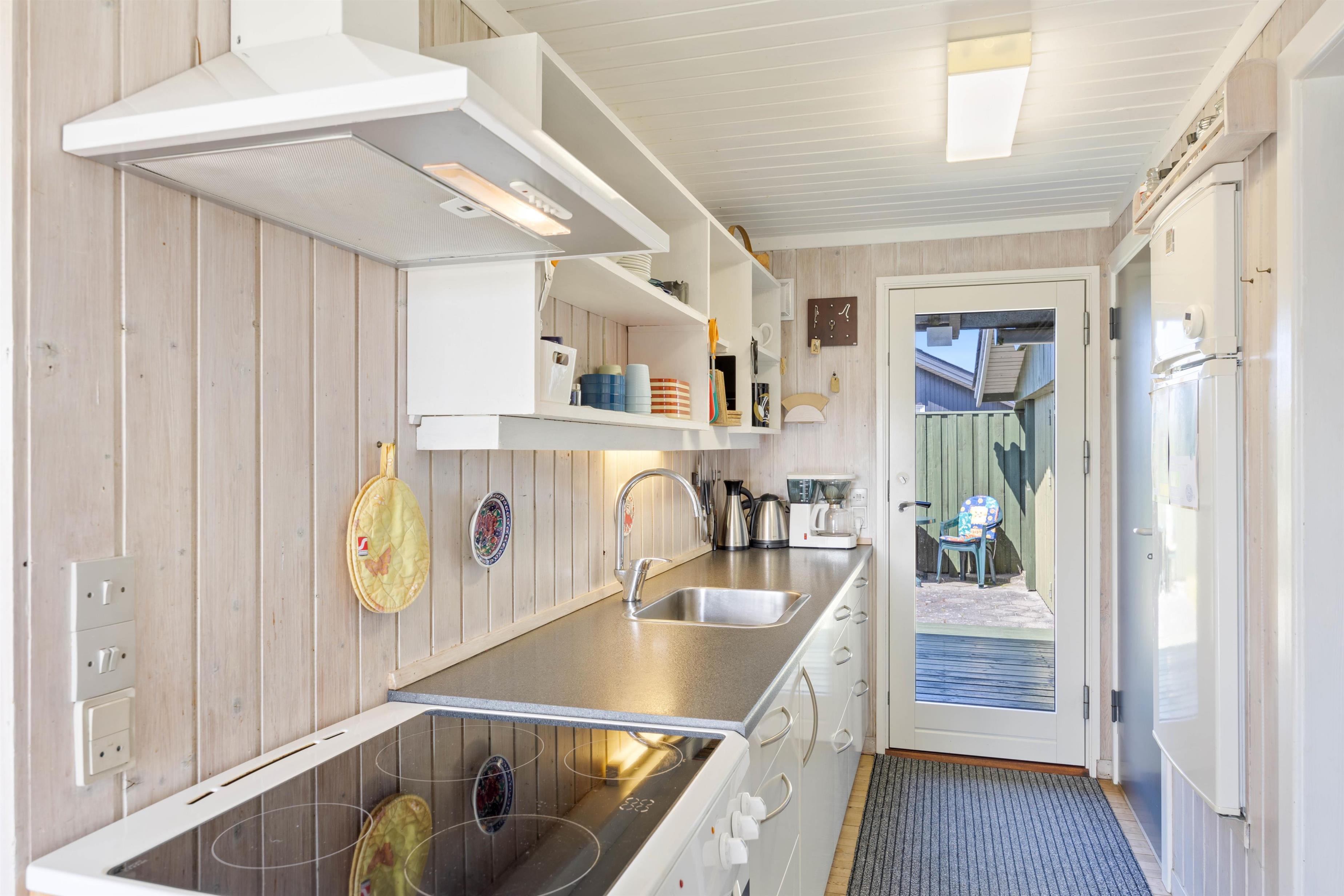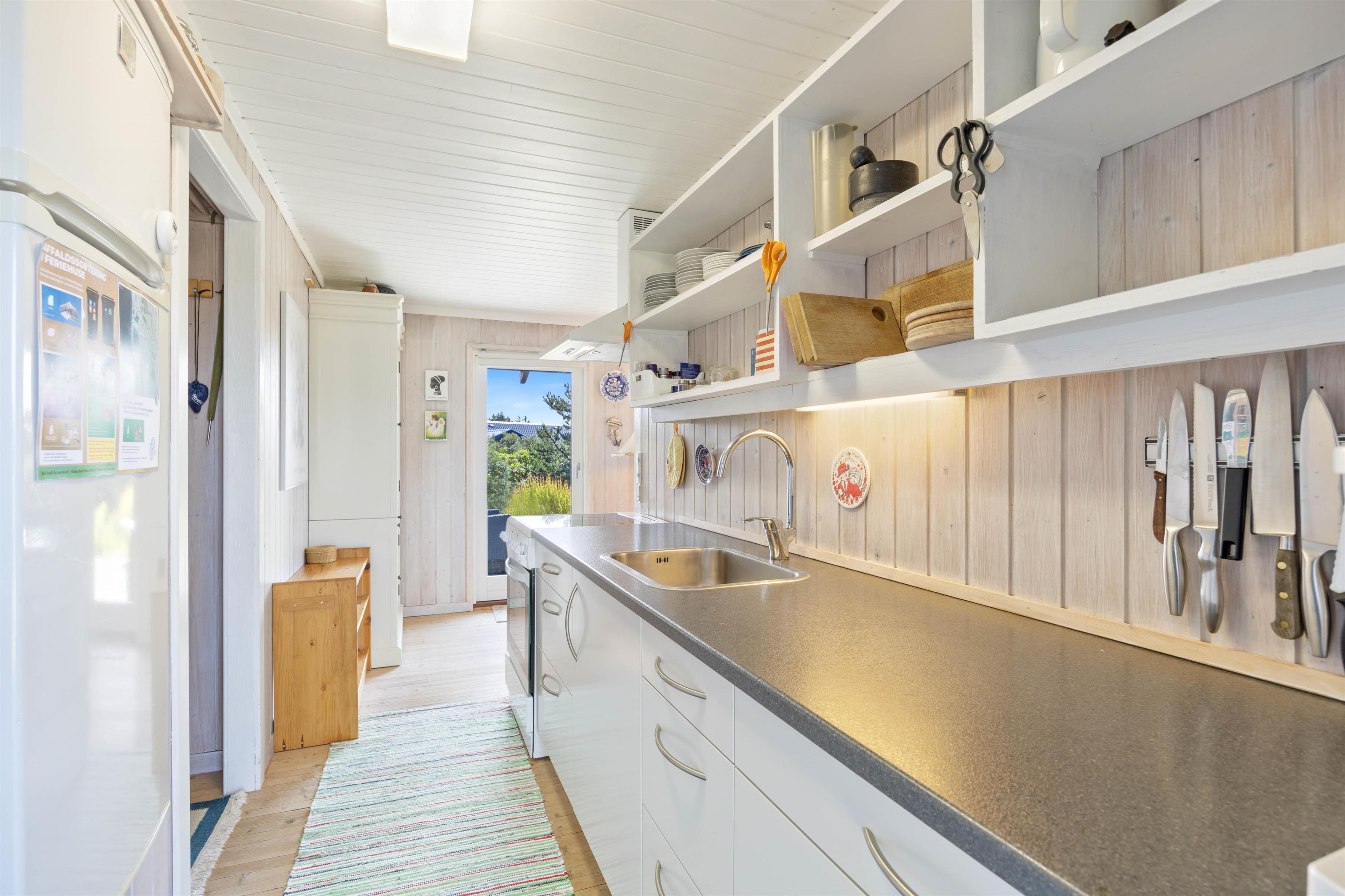 Det praktiske badeværelse med dagslys er udstyret med en bruser. Når feriedagen går på hæld, kan I trække jer tilbage til 2 rolige soveværelser. Det ene har en dobbeltseng og det andet 2 komfortable enkeltsenge. Læg mærke til, at vesterhavsluften gør noget godt for nattesøvnen.