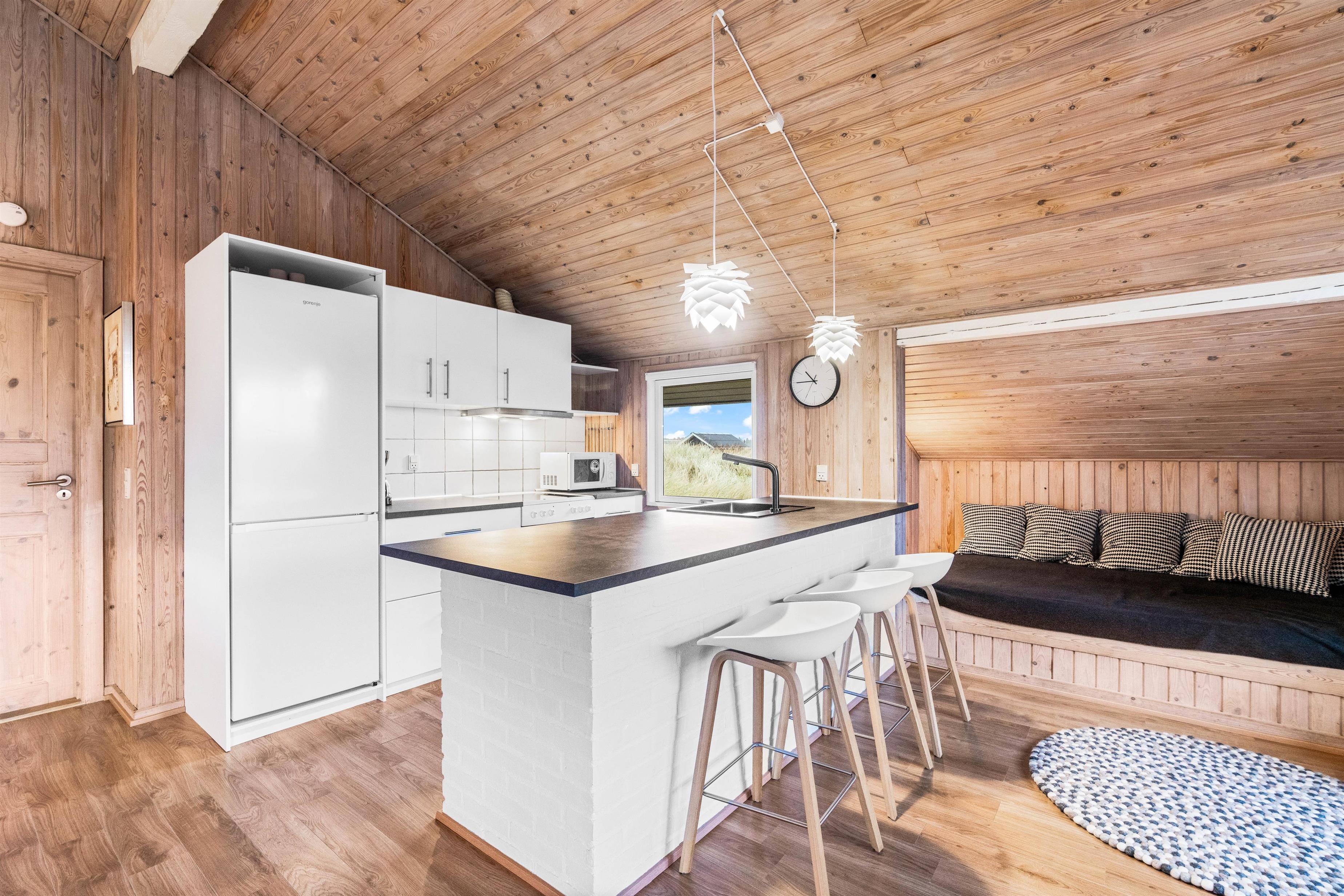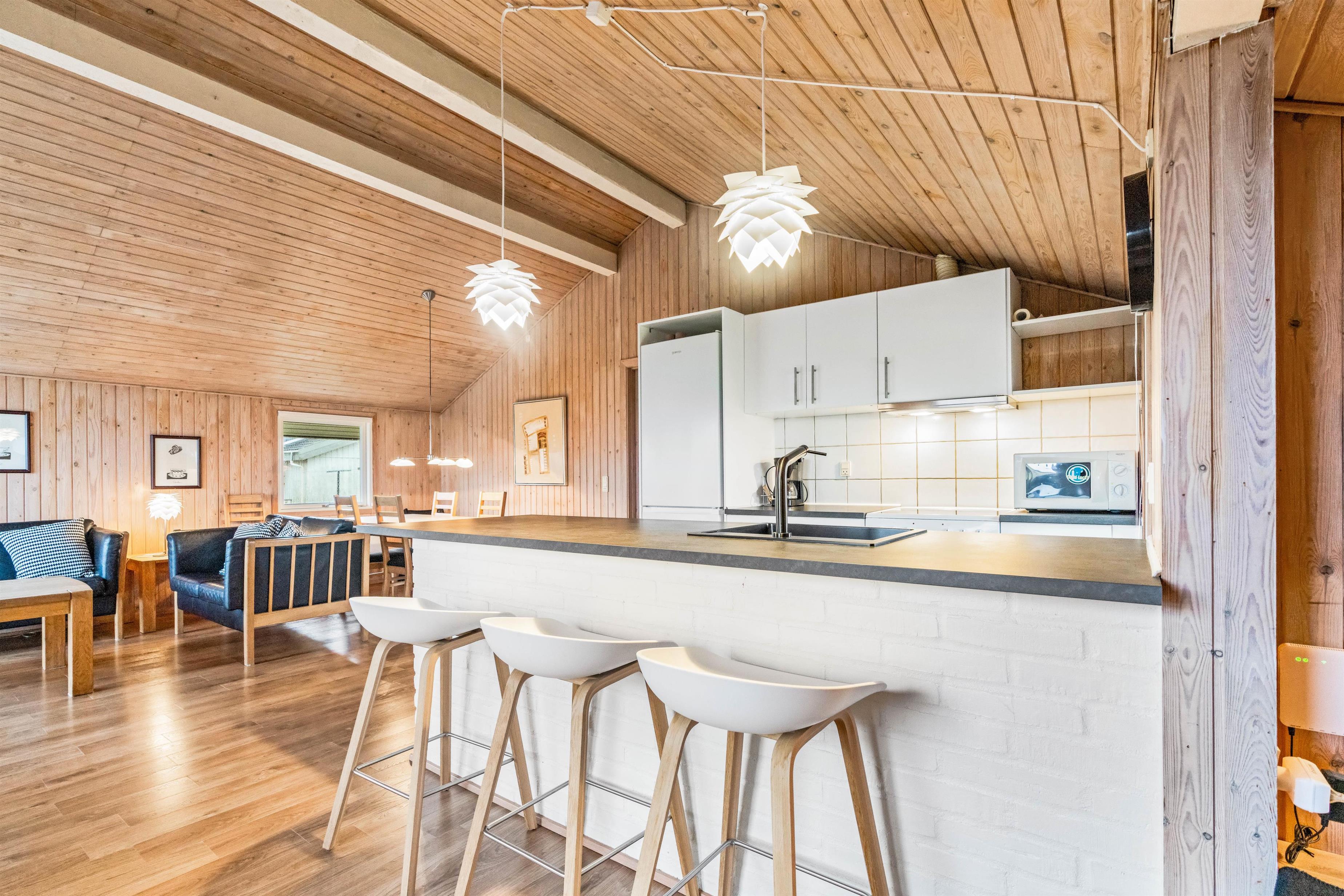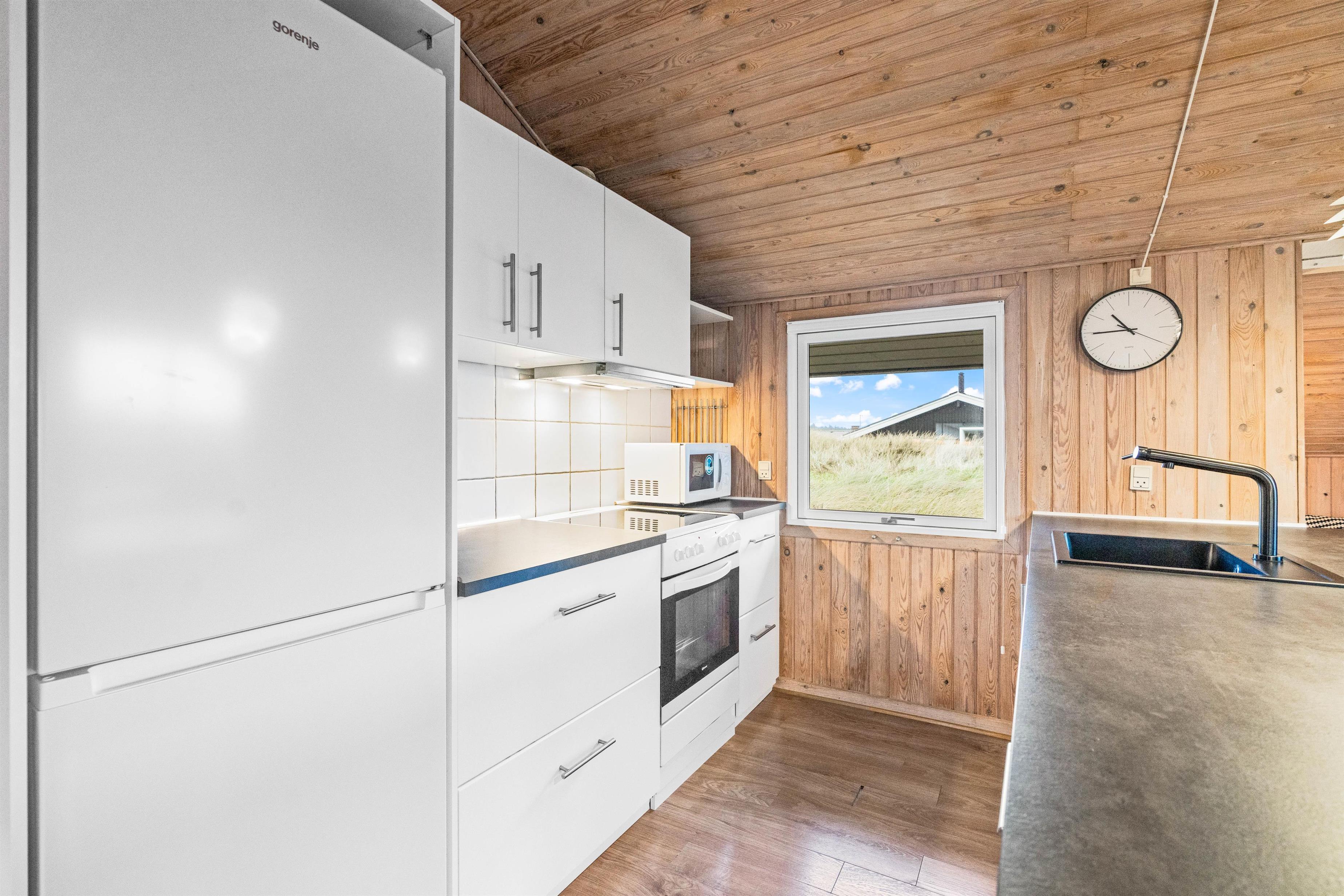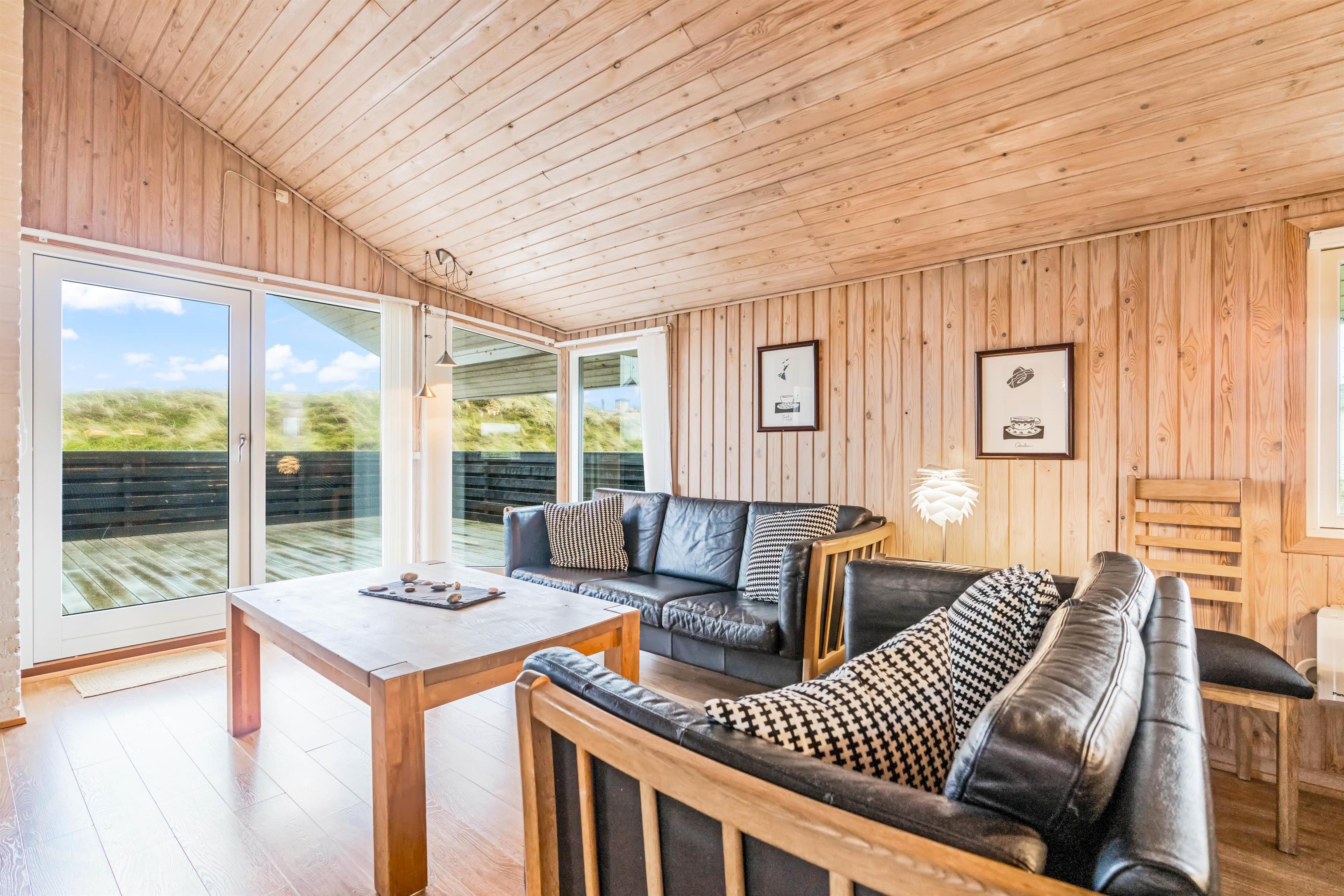 Her finder du de perfekte rammer for en vellykket ferie: Lyst træhus i en dejlig beliggenhed tæt på stranden. Feriehuset er hyggeligt og pænt indrettet og blev delvist renoveret i 2020 - med nyt badeværelse og køkken. Sommerhuset har en stor lukketterrasse og ligger på en kuperet klitgrund.