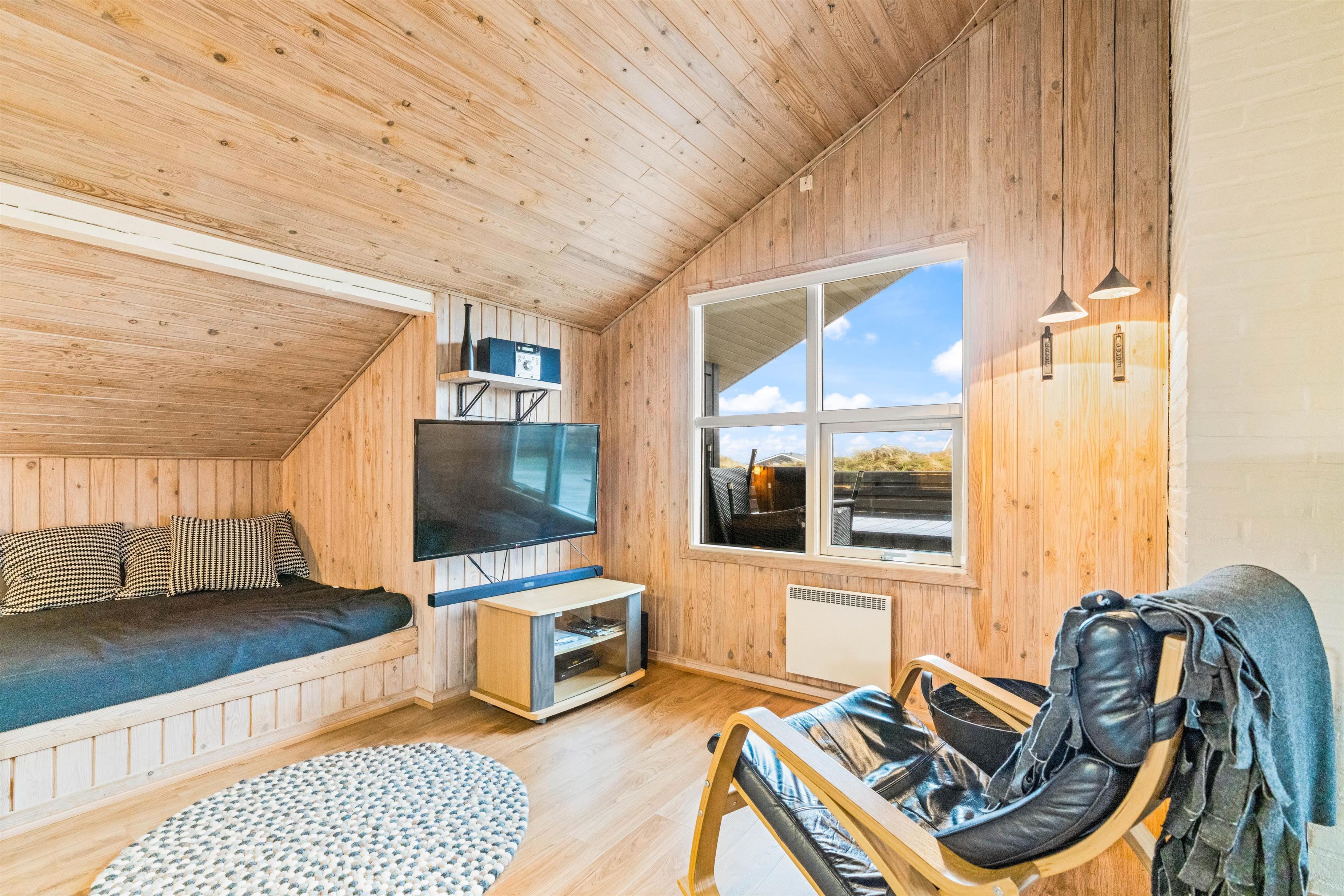Hvis du elsker fred og ro, er dette sommerhus en perle i din ferie. Den er omgivet af volde og ligger i ly i en klit; herfra kan man nå Vesterhavet og de store hedeområder på få minutter. Især vandsportsentusiaster og lystfiskere har mange muligheder i området, som ligger mellem Ringkøbing Fjord og den danske vestkyst.