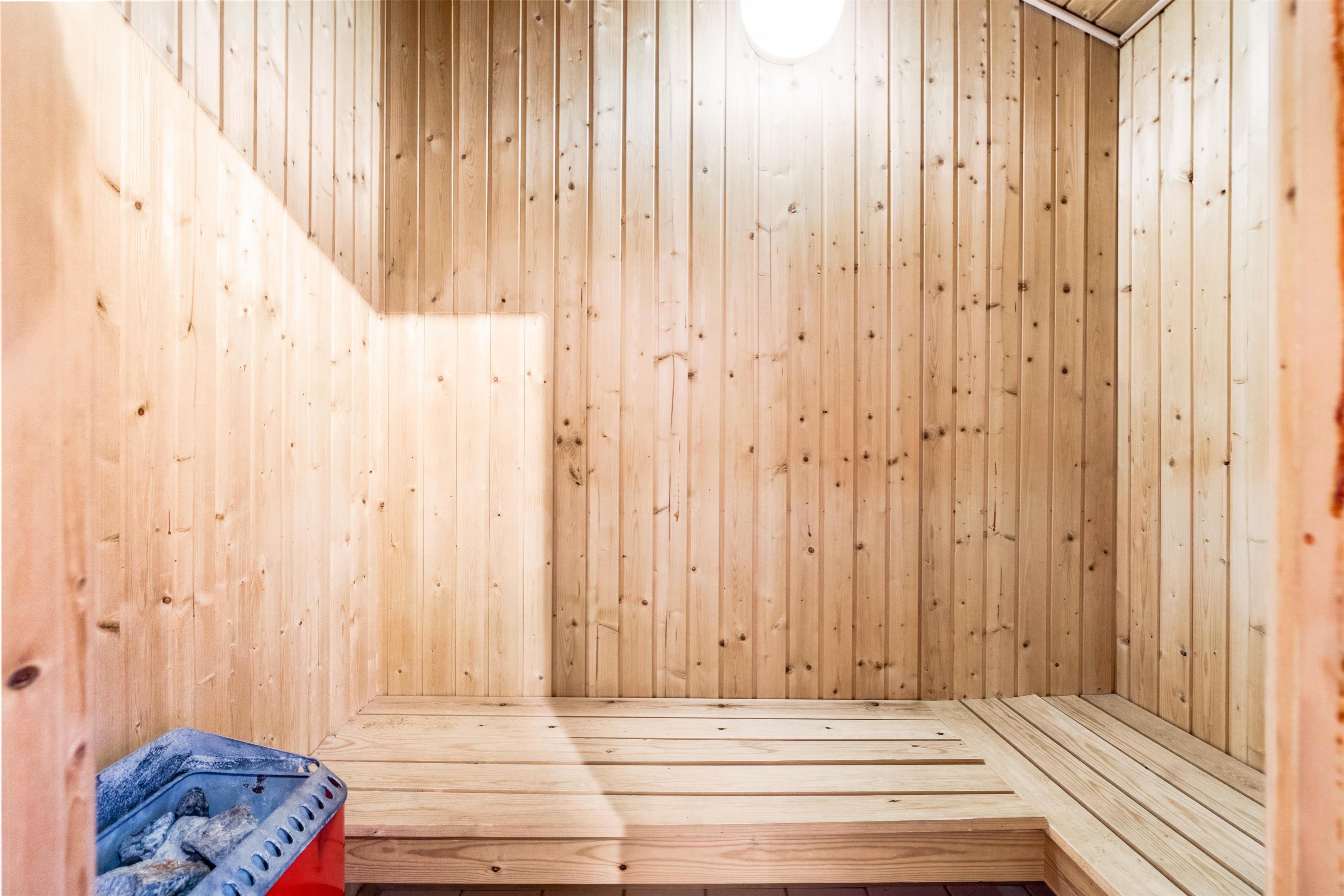 Desuden er der et stort badeværelse med spa til to personer og adgang til saunaen. Her kan du slappe af efter en lang dag ved stranden eller en vandretur til efteråret.