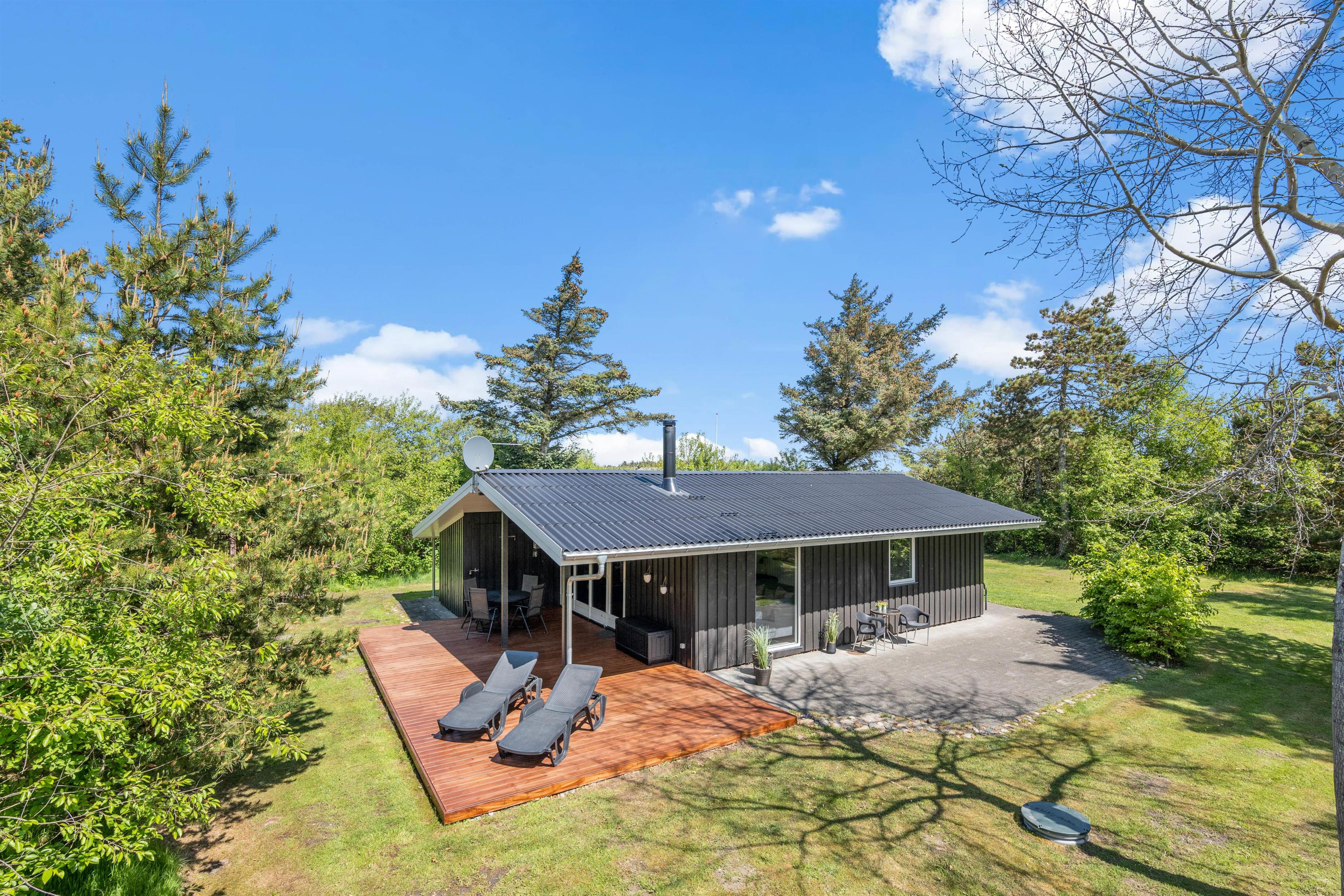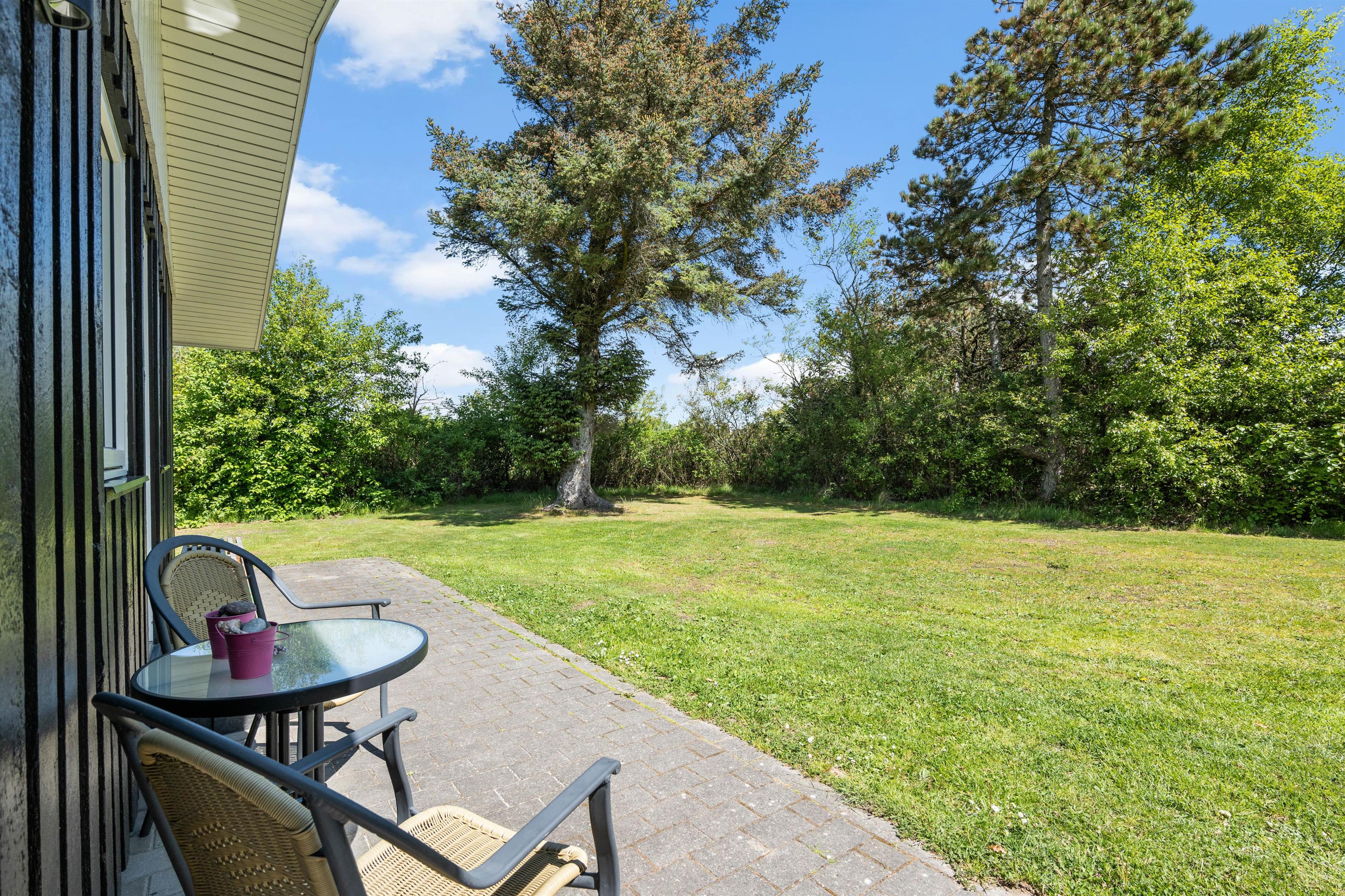 Sommerhuset er placeret for enden af en lille stikvej på en naturgrund godt beskyttet af træer, der giver jer en følelse af privatliv og ro under jeres ferie. Der er kun 1 kilometer til Vesterhavet, hvilket gør det nemt at tage en hurtig tur til stranden for at nyde havet og sandet. Området byder på en skøn natur med rig mulighed for trave- og cykelture, hvor I kan udforske de naturskønne omgivelser. Her kan I virkelig komme tæt på naturen og nyde den friske luft og de smukke landskaber, som området har at byde på.