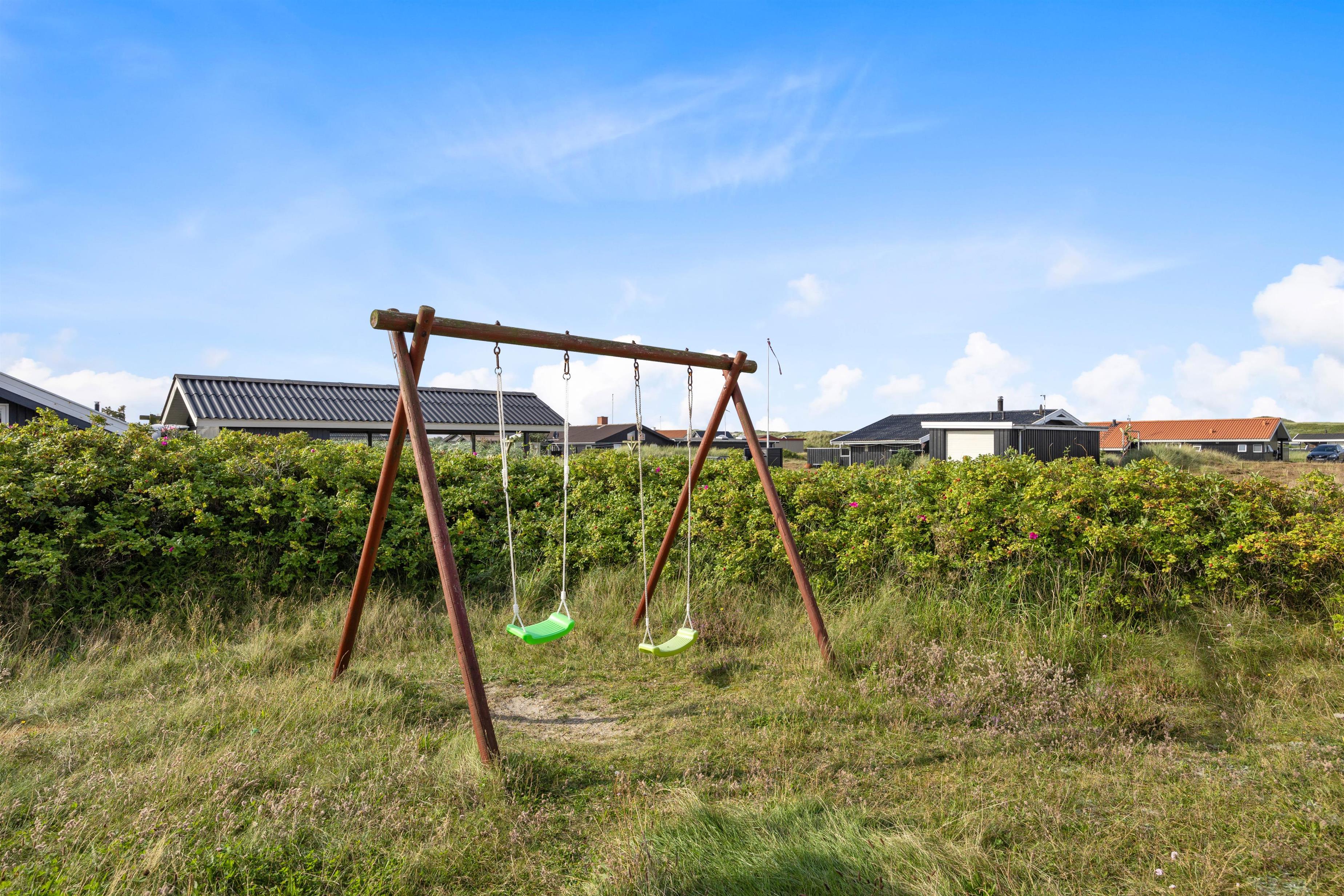 Uanset vindhjørnerne kan der altid findes læ på de delvist overdækkede og velafskærmede terrasser. Her kan man hygge sig ugeneret i de dejlige havemøbler og tilberede maden på den tilhørende grill. For børnene er der gode legemuligheder på den fine naturgrund med både sandkasse og gynge.