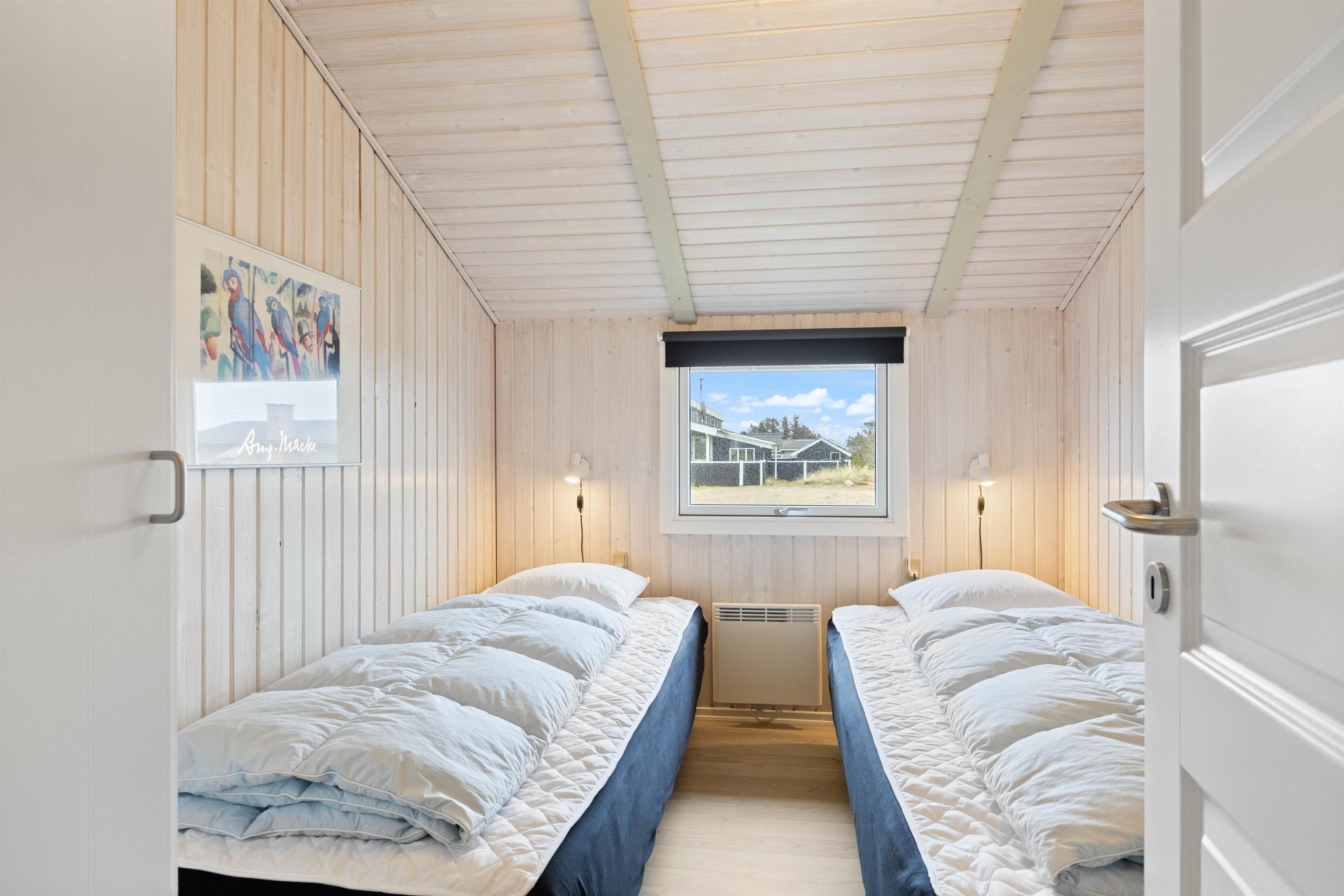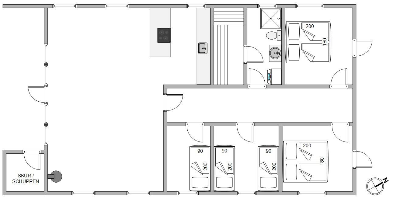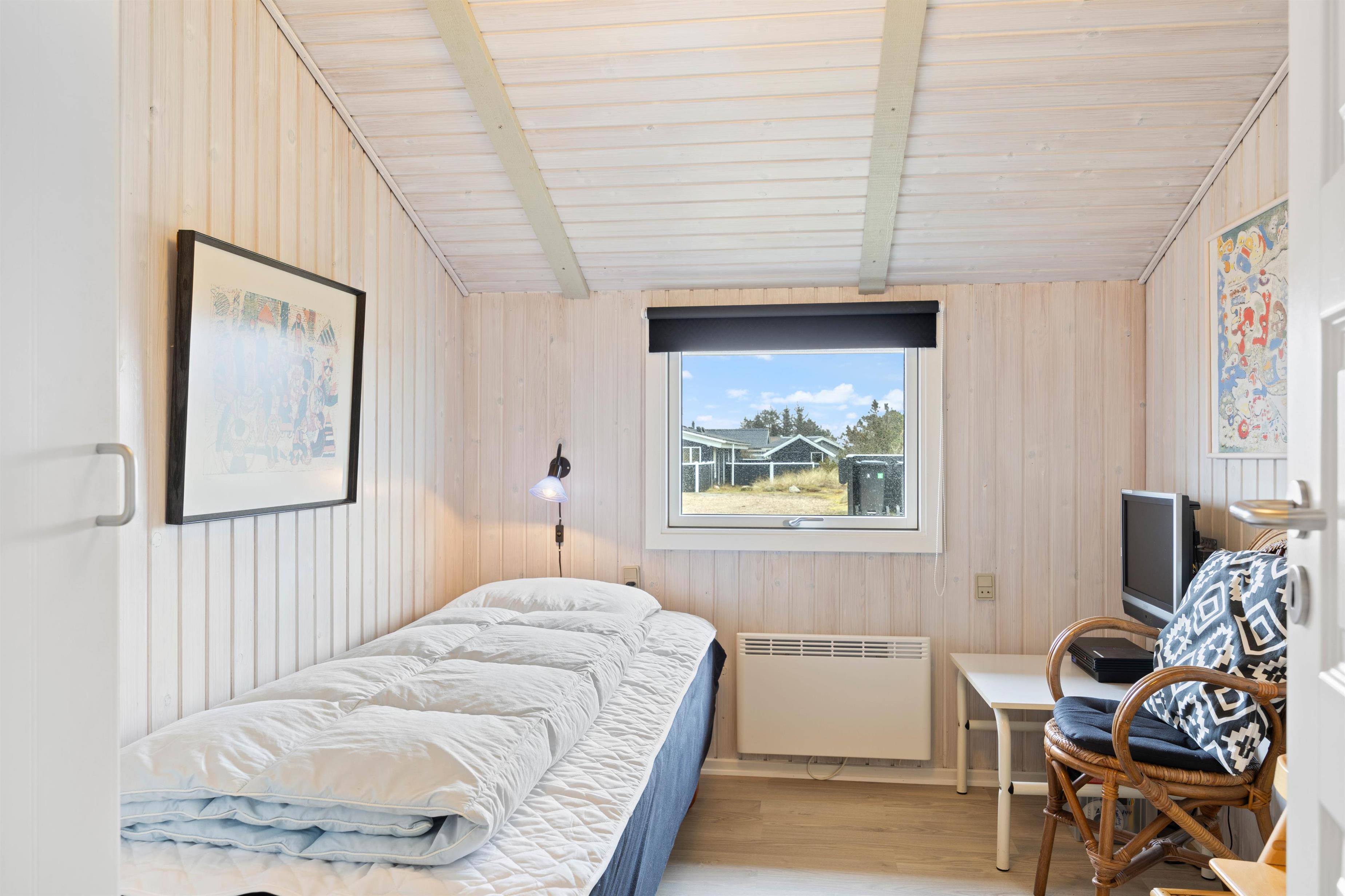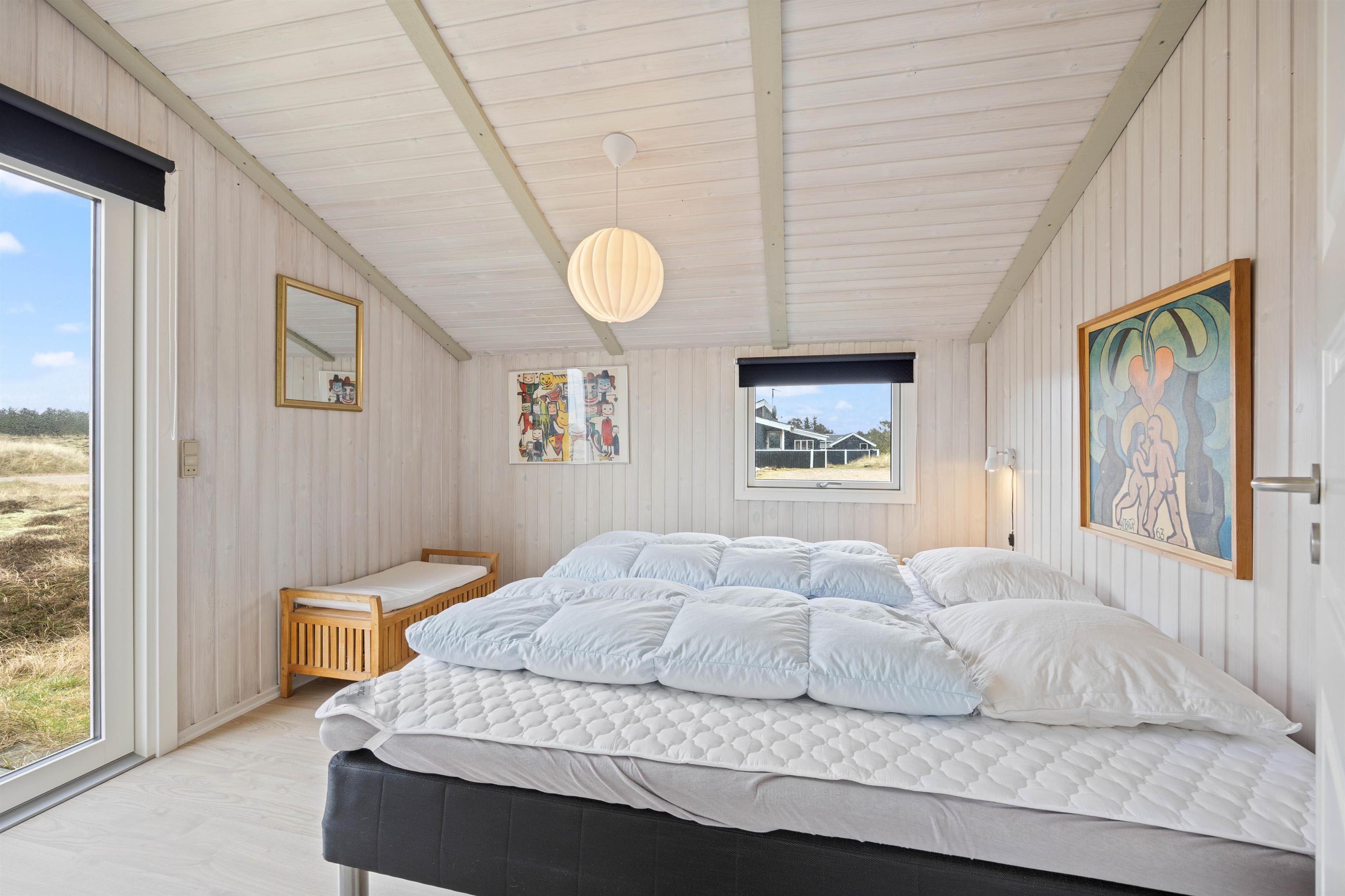 Dette hyggelige og løbende vedligeholdte feriehus, er perfekt til den store familie. Feriehuset har plads til 7 personer i 4 gode soveværelser med trælaminat, hvoraf 2 er indrettet med dobbeltsenge og terrassedøre. De sidste værelser er indrettet med enkeltsenge.