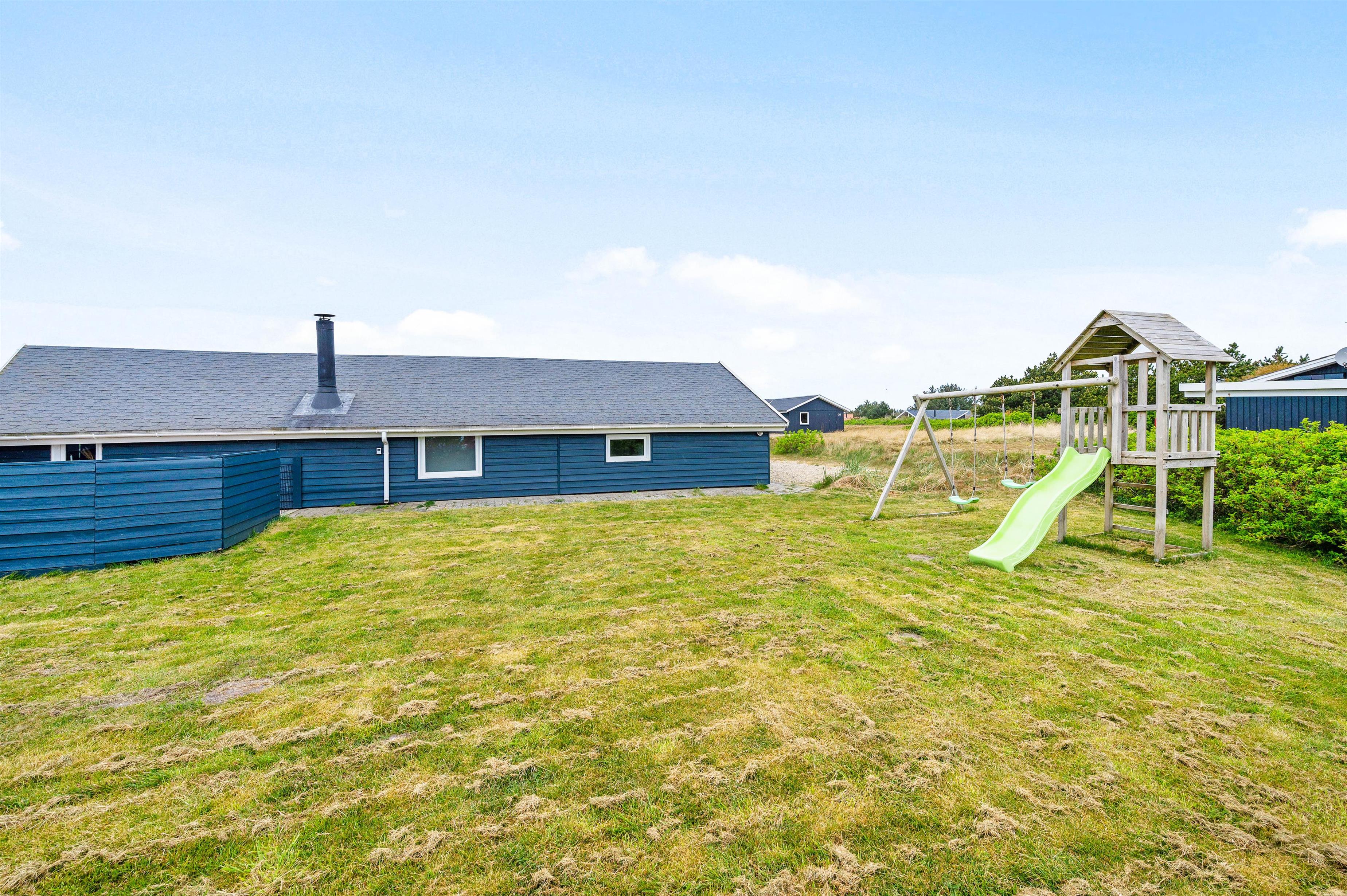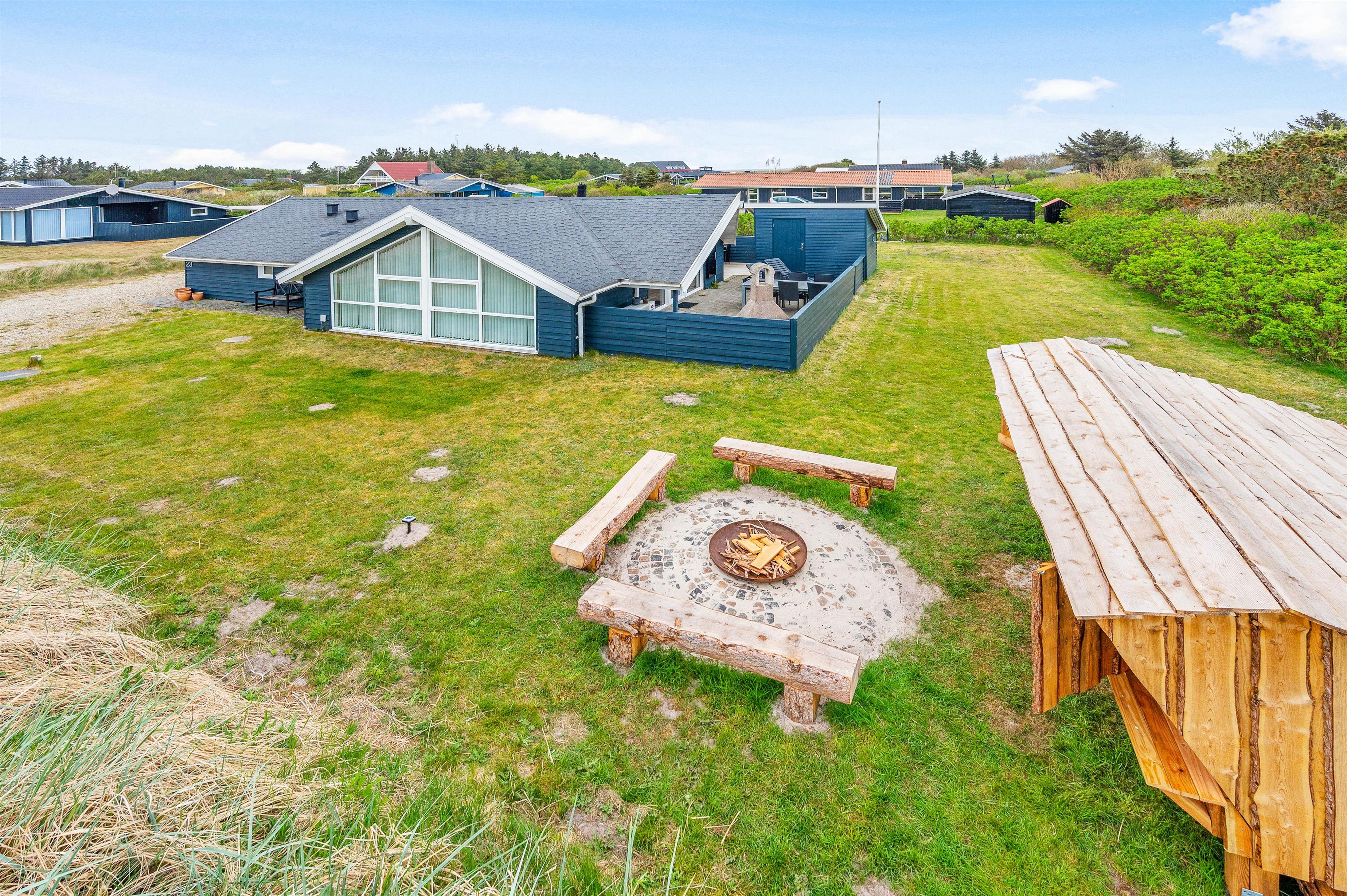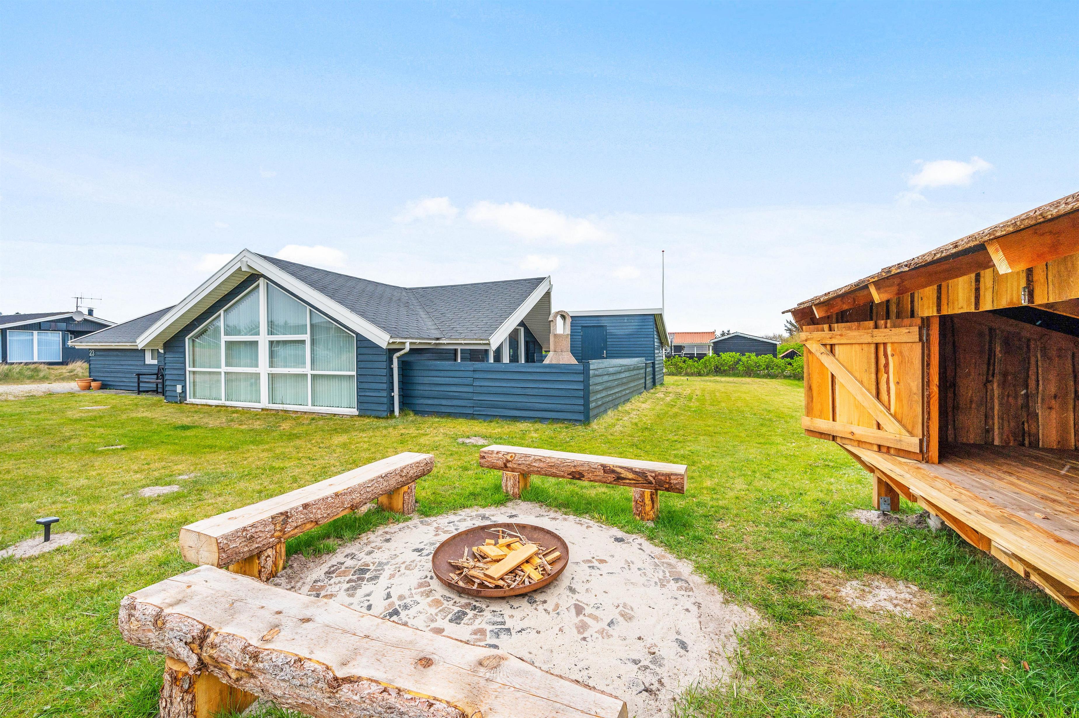 Mens du solbader på terrassen og nyder den friske luft, kan børnene lege på den store græsplæne. Der er gynge og en sandkasse til de mindre børn. Til aften kan I holde en hyggelig grillaften efterfulgt af bålhygge rundt bålet. Sommerhuset har nemlig en fin bålplads, hvor I kan lave snobrød og riste skumfiduser.